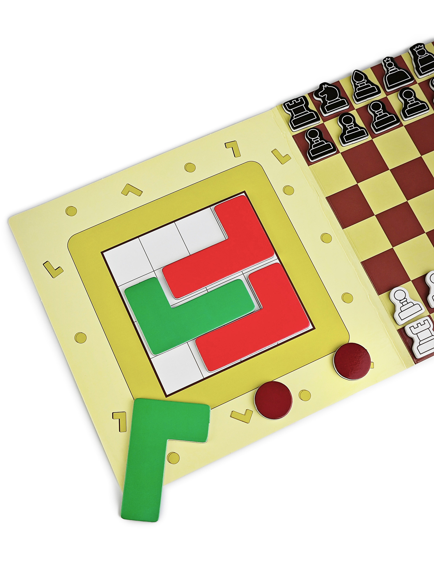 Компактных планшет удобно хранить и брать с собой в путешествие. Фигуры из безопасного мягкого полимерного пластика толщиной 2 мм приятно держать в руках, а магнитная основа удерживает их на поле во время игры, не давая разлетаться.