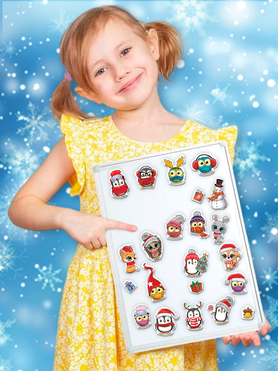 - Расширить кругозор. Магниты познакомят детей с животными, зимней одеждой, новогодними украшениями, угощениями, праздниками и развлечениями.