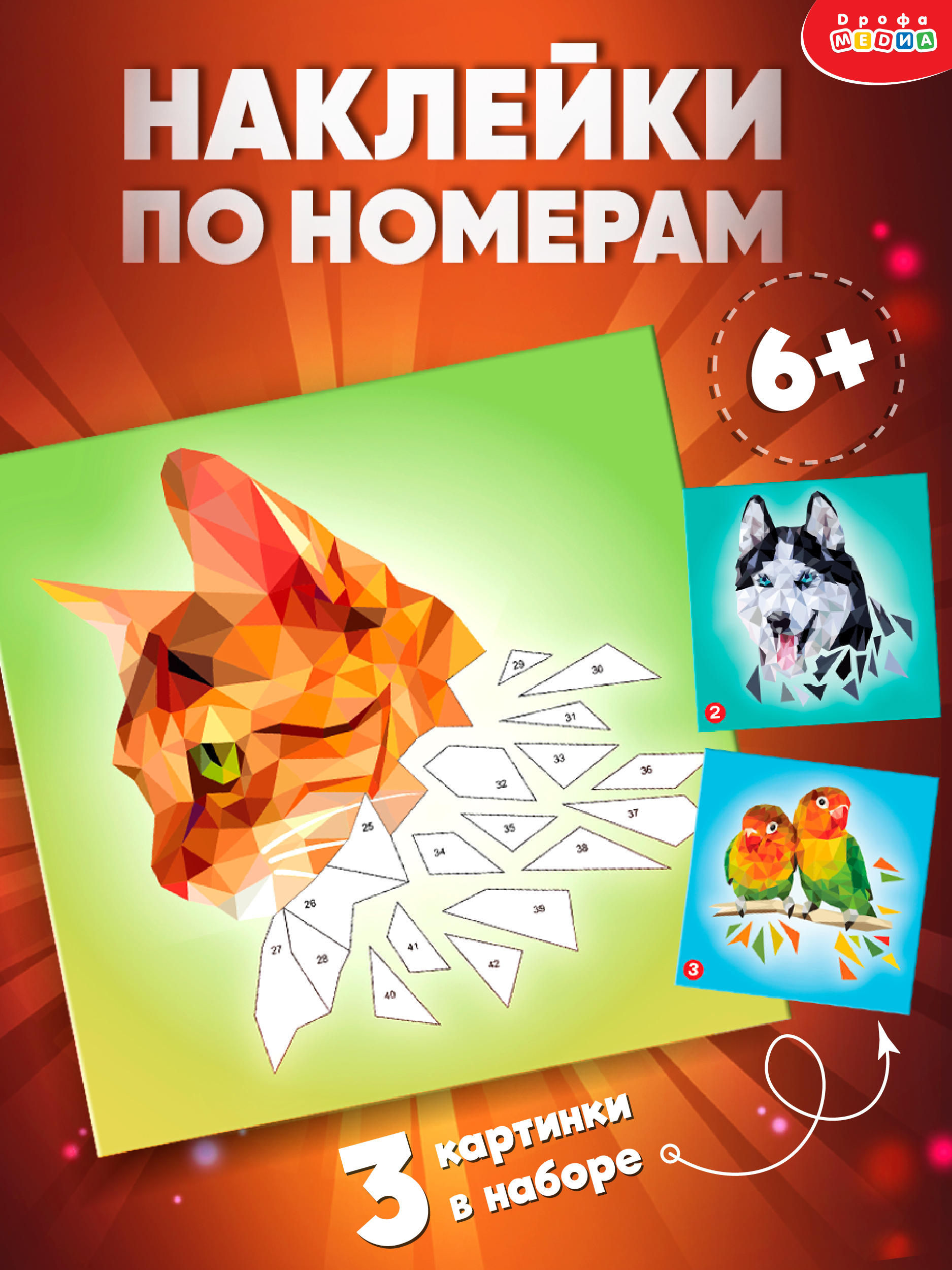 Аппликация наклейками по номерам — это увлекательный набор для детского творчества. В наборе есть всё необходимое — 3 картинки-основы со стильными изображениями животных и 3 набора наклеек.