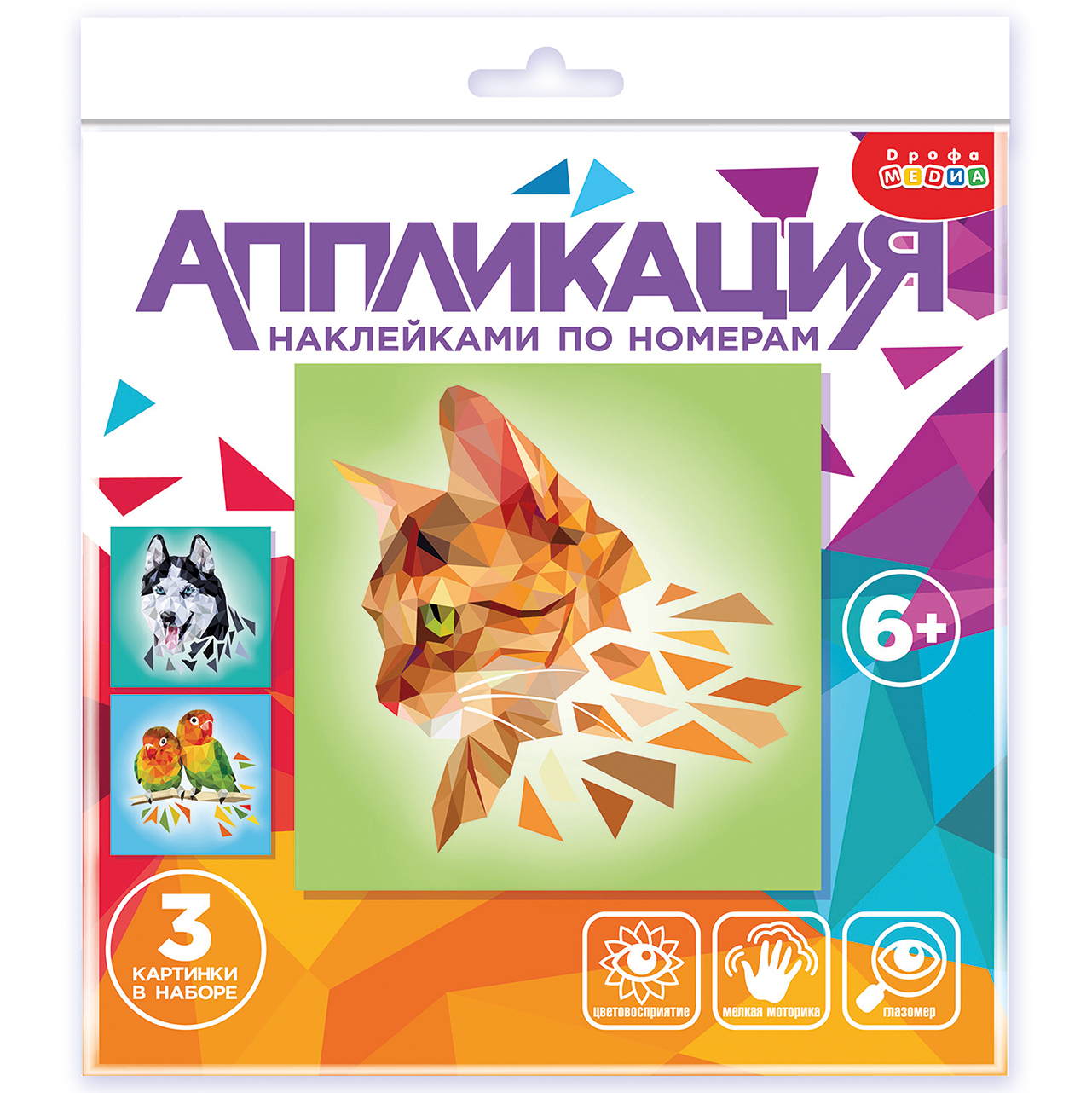 Достоинство этого творческого набора заключается в том, что детям не понадобится ни клей, ни ножницы, поэтому его удобно брать с собой в дорогу. Картинки объединены одной темой и отлично дополняют друг друга. Готовыми аппликациями можно украсить детскую комнату, а также они станут прекрасным подарком ребёнку и отличным материалом для детского сада, развивающих центров и творческих кружков. Набор развивает мелкую моторику, цветовосприятие и глазомер.