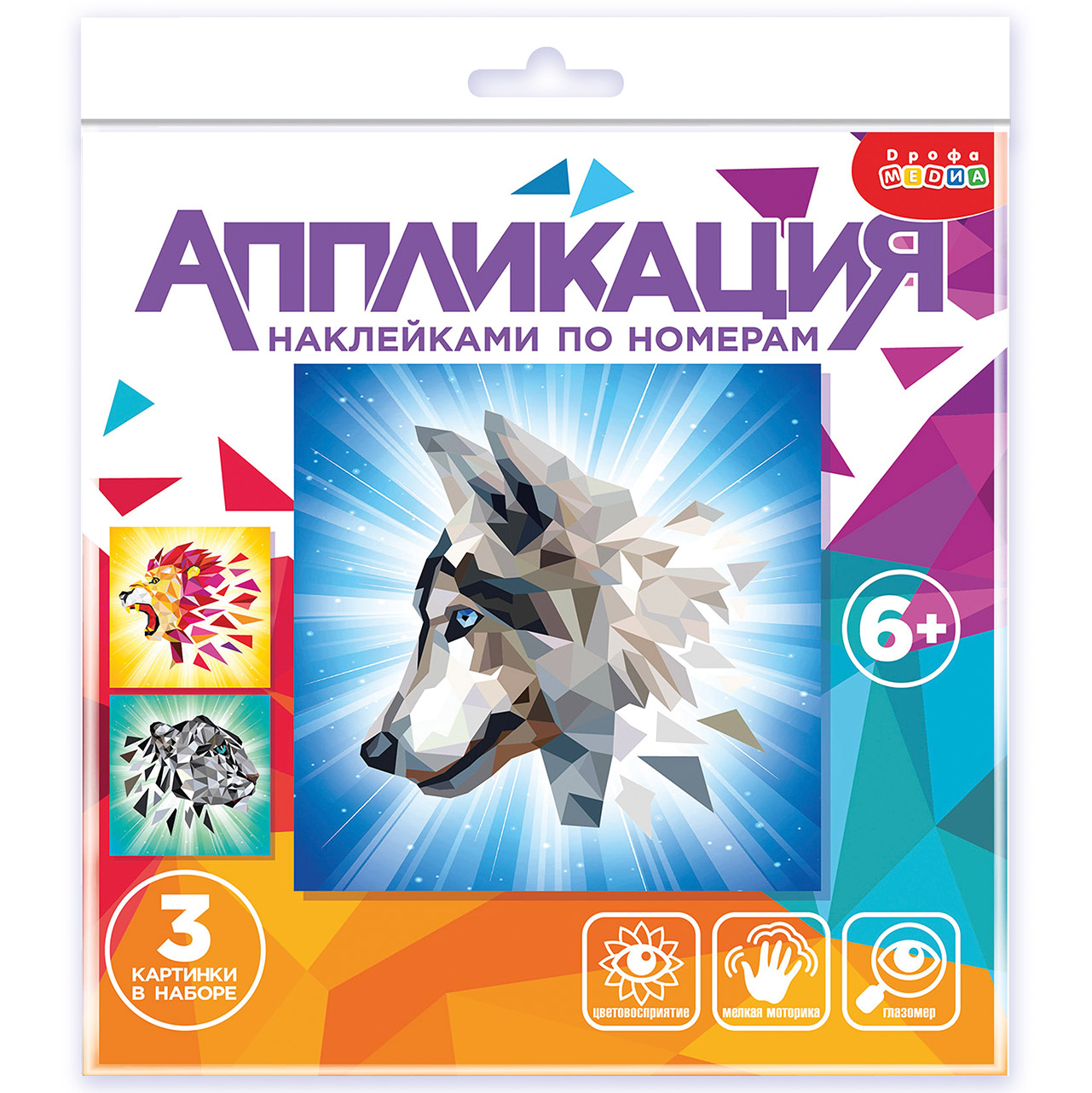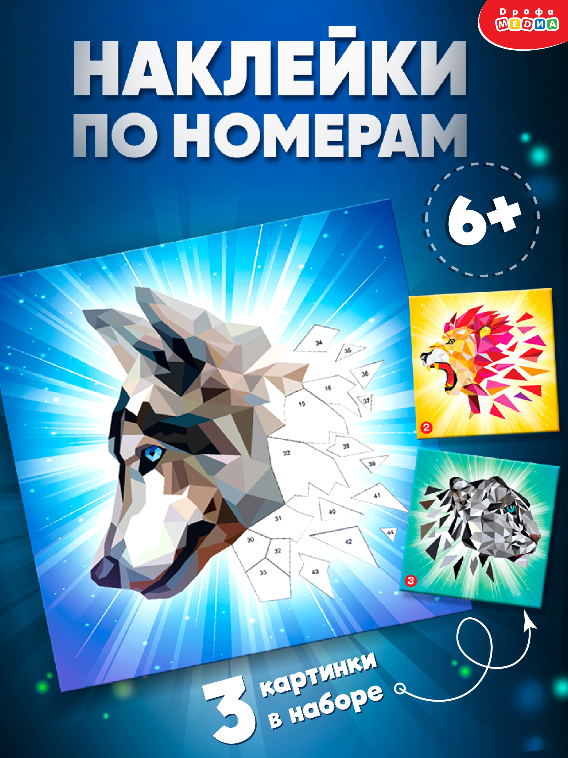 Аппликация наклейками по номерам — это увлекательный набор для детского творчества. В наборе есть всё необходимое — 3 картинки-основы со стильными изображениями животных и 3 набора наклеек.