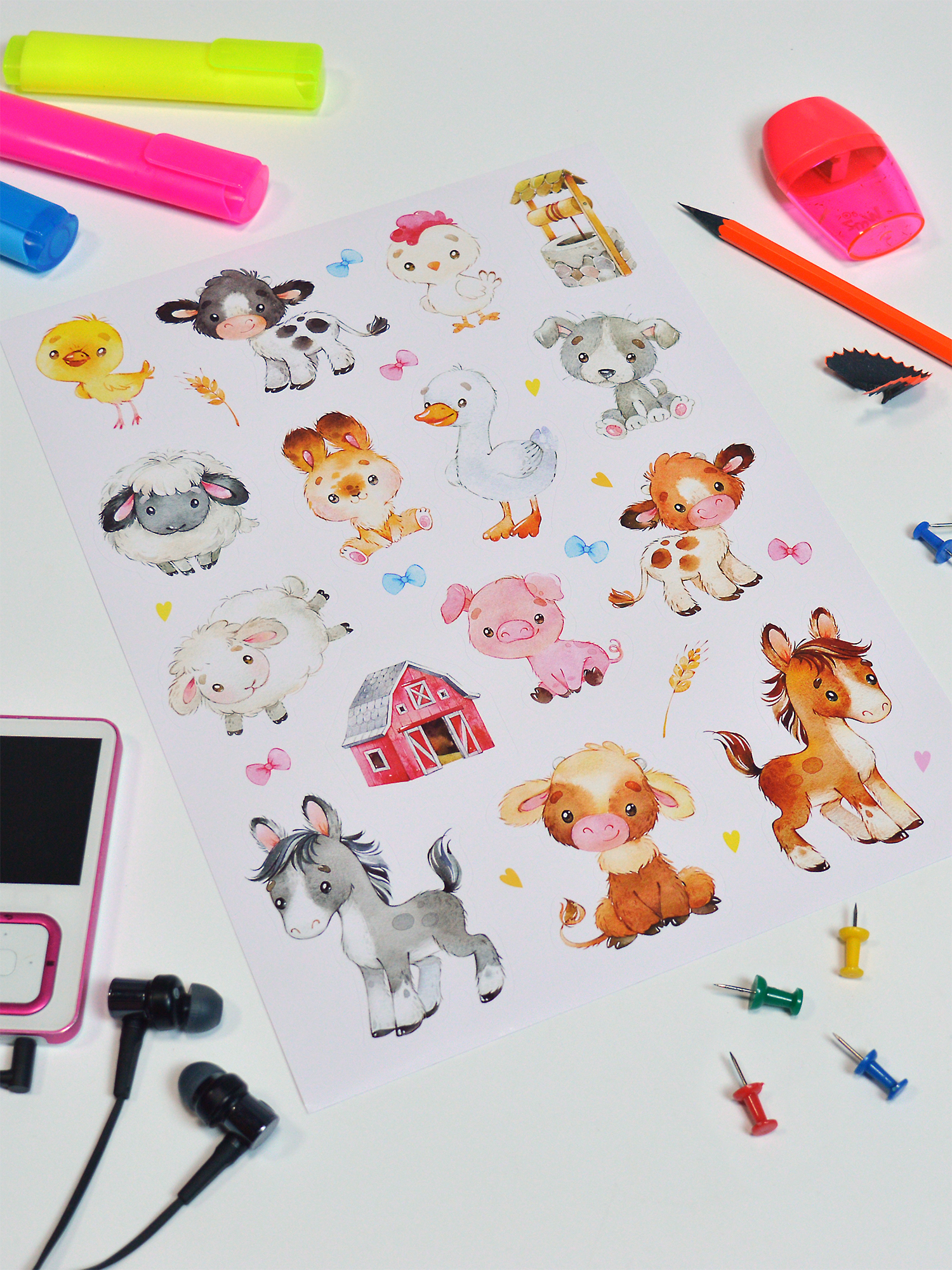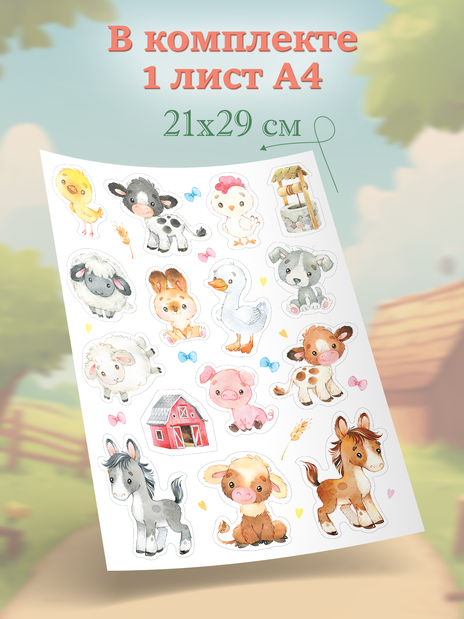 В комплект входит 1 лист с наклейками, размер листа – 21х29 см.