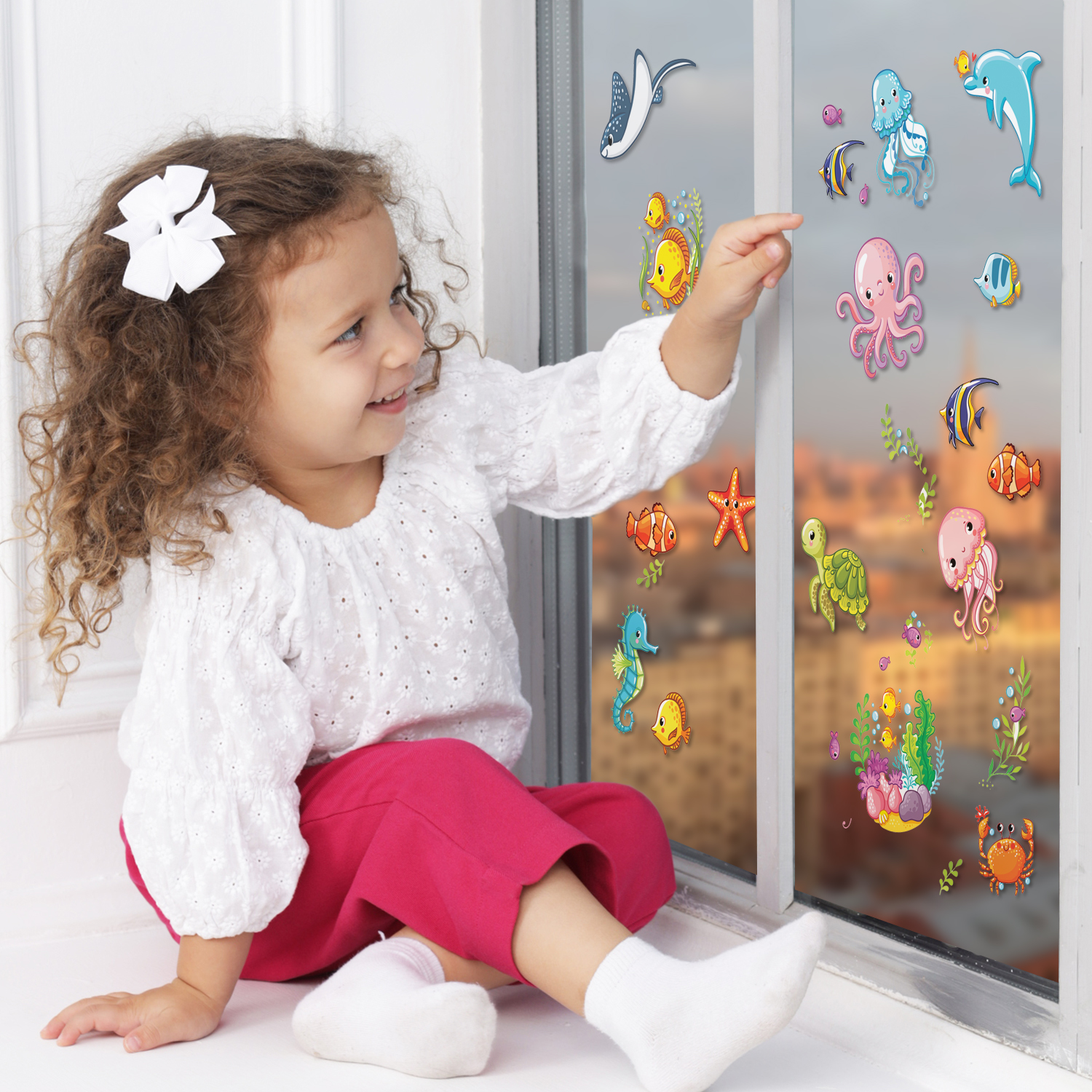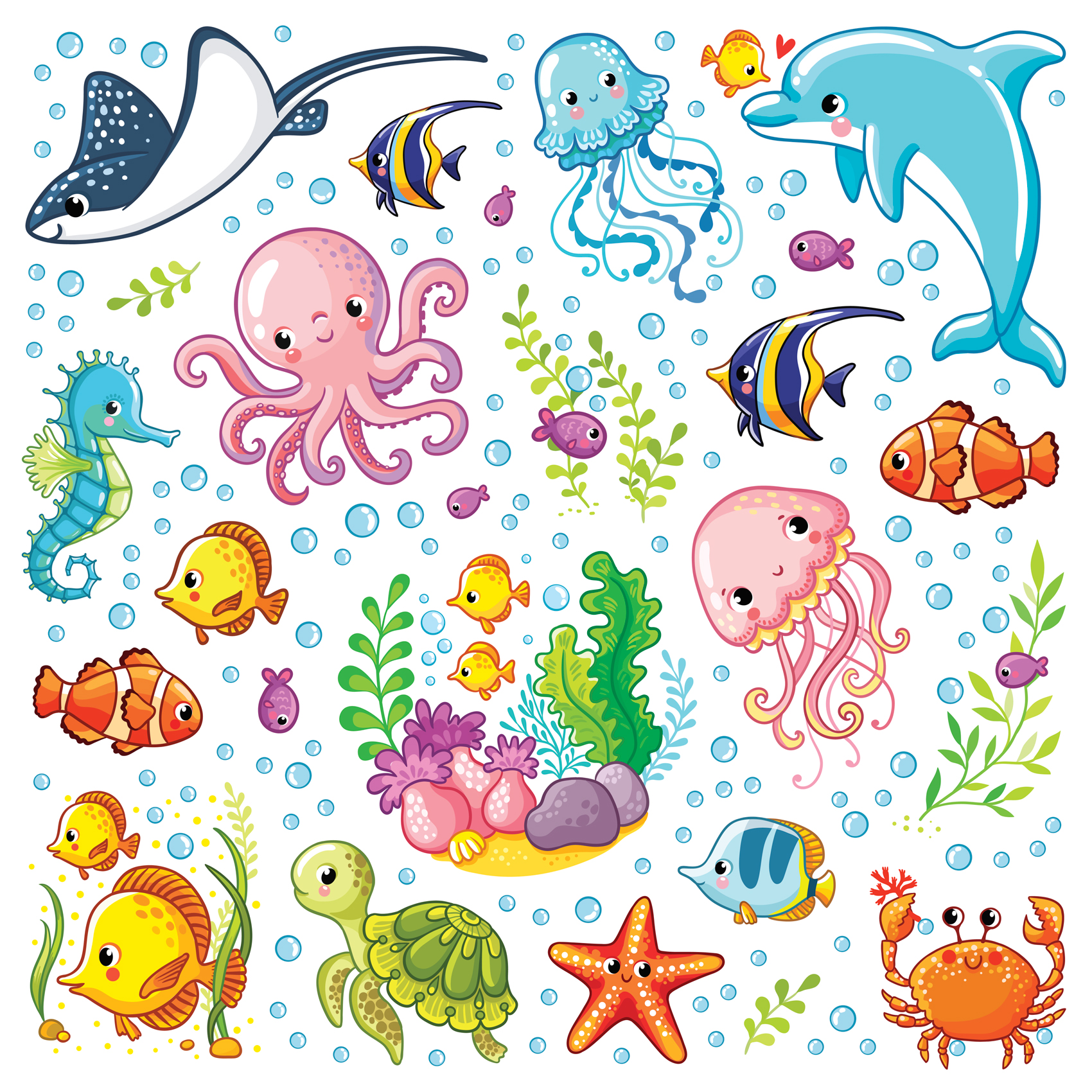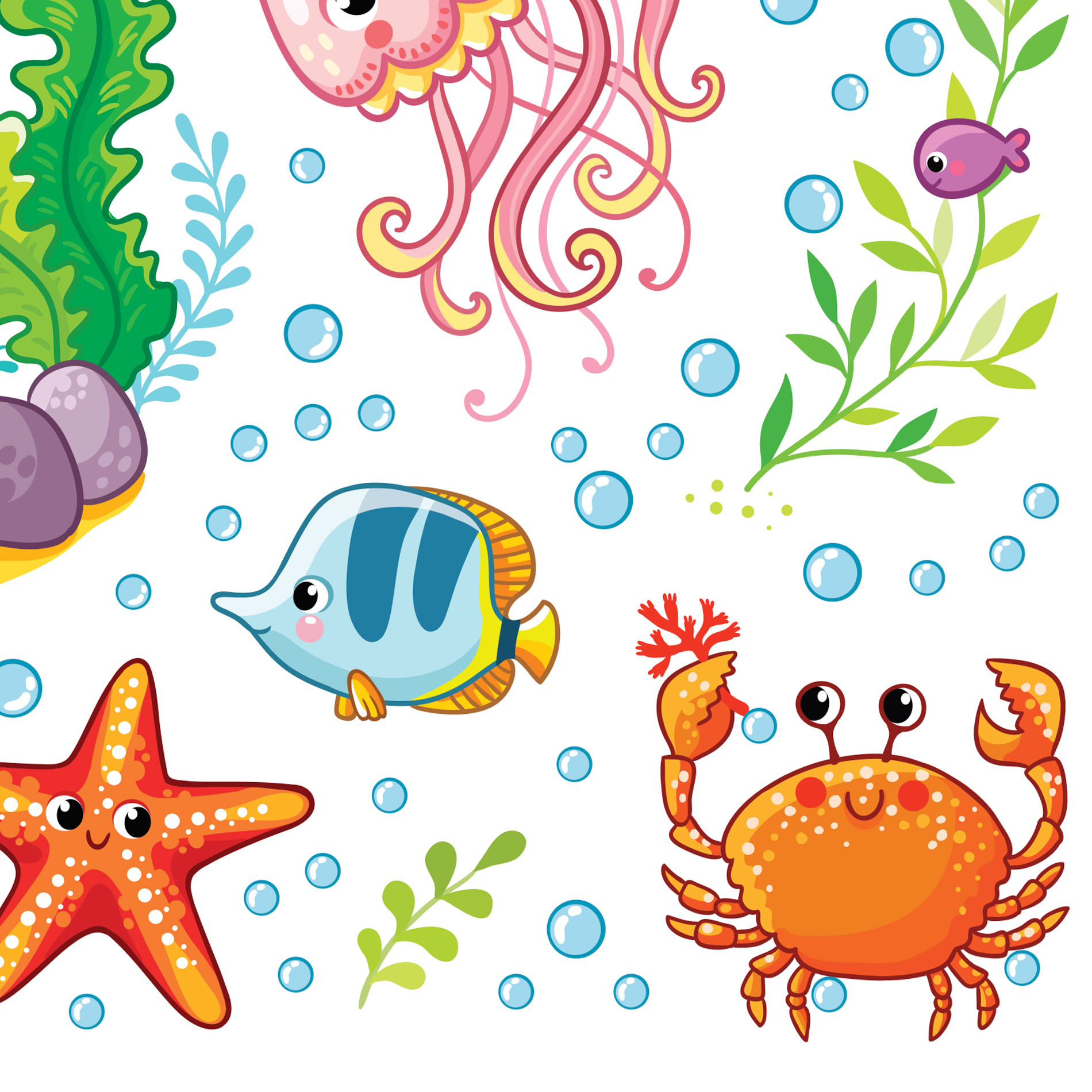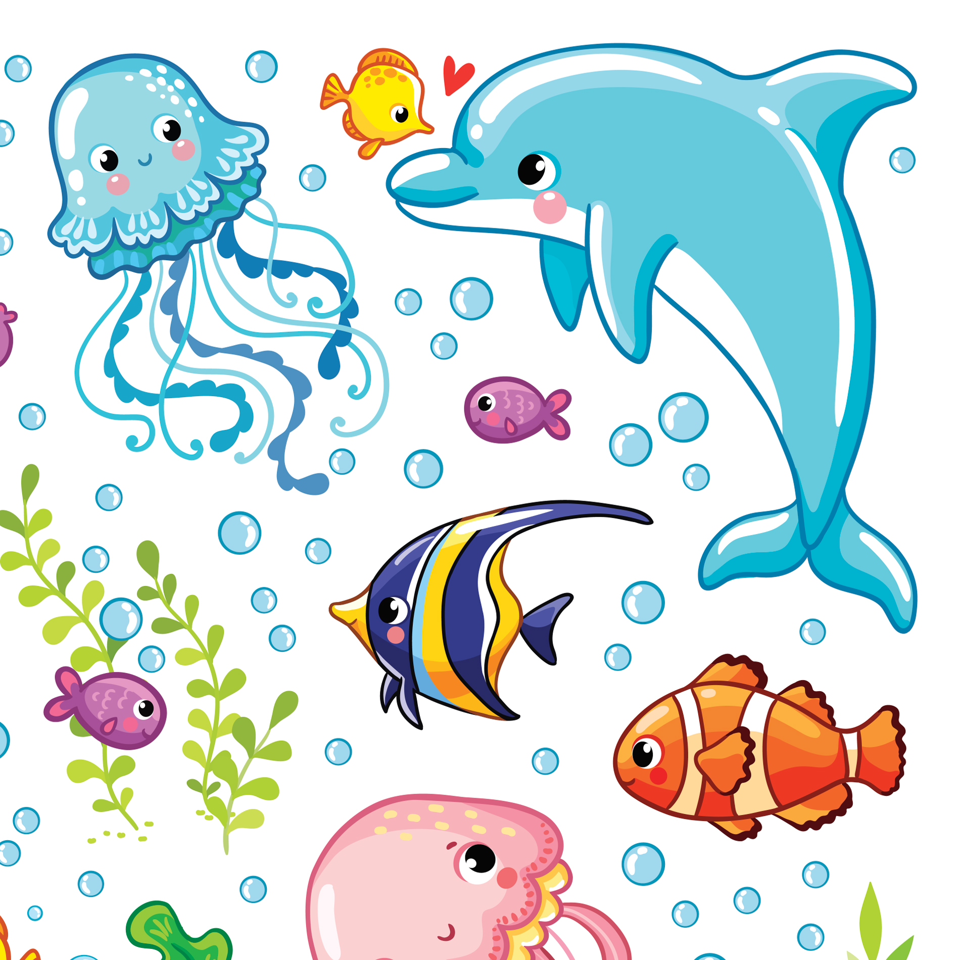 Каждое изображение вырезано отдельно. Наклейки не оставляют следов, их можно переклеивать несколько раз. Яркий декоративный набор для ванны.