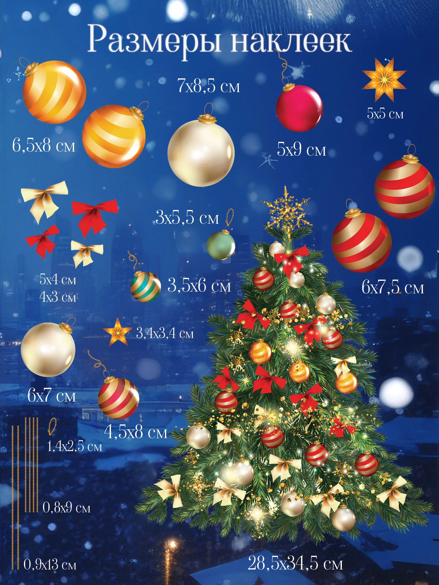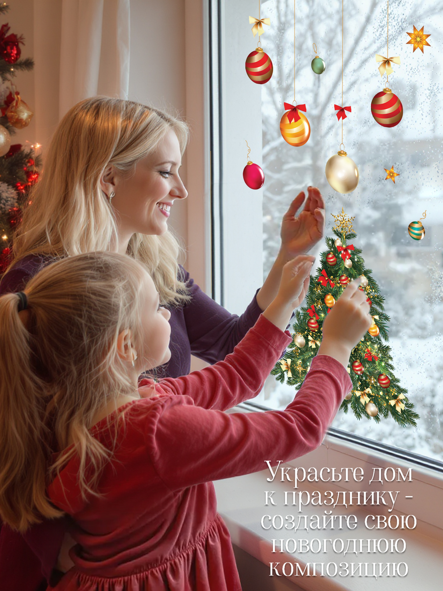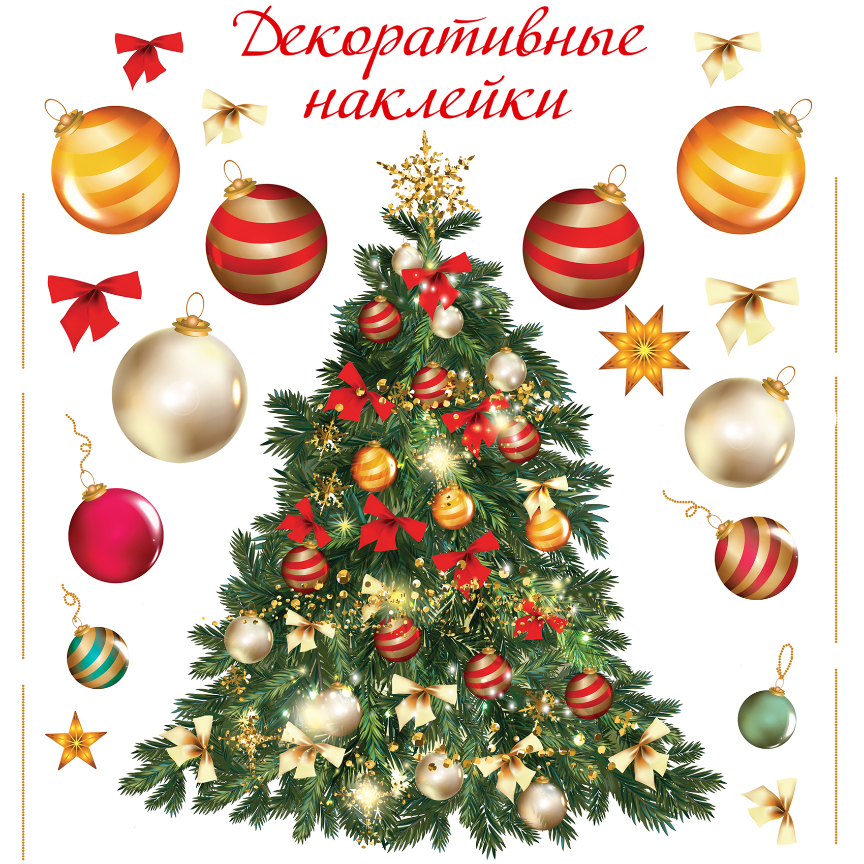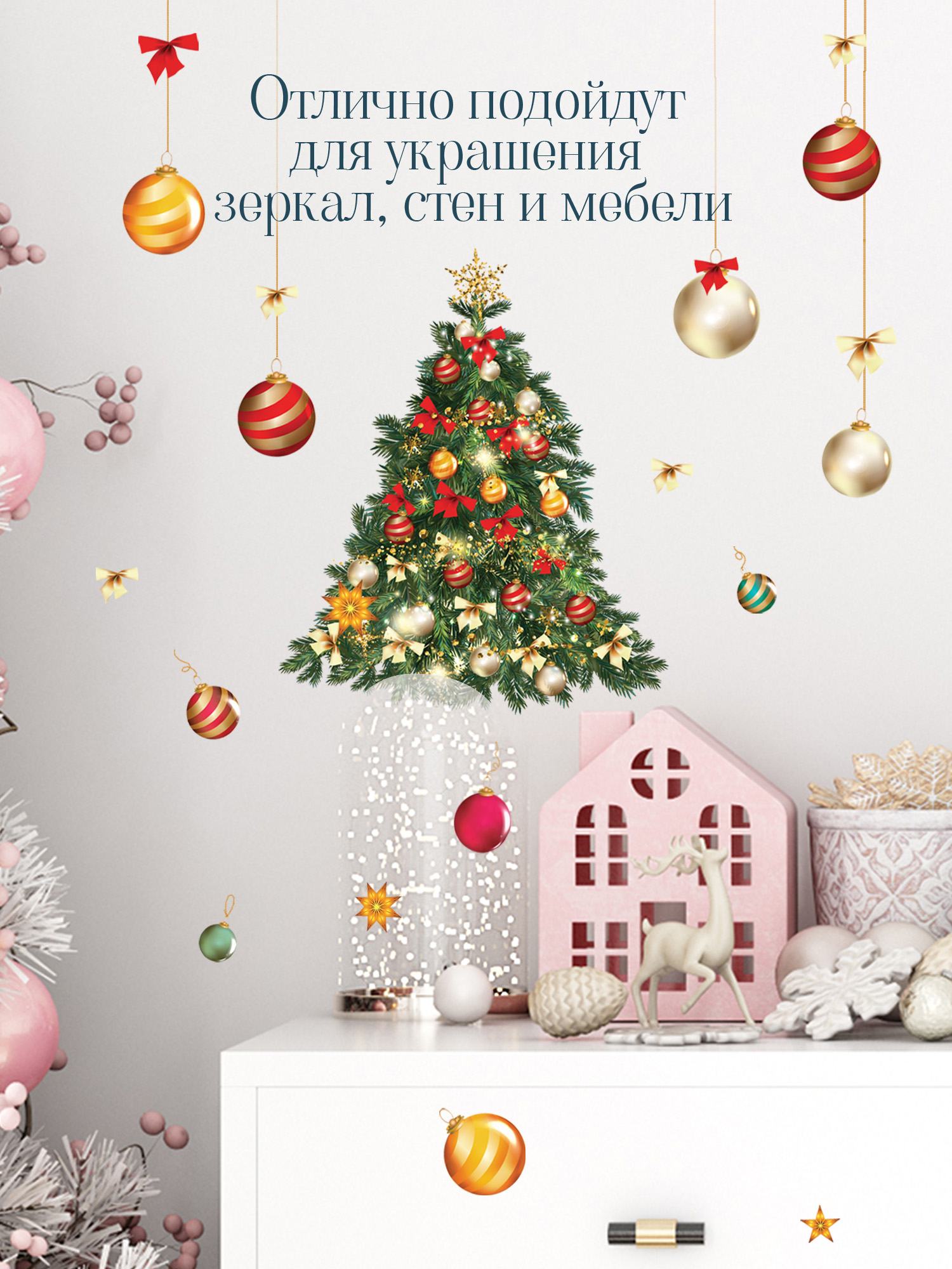 Новогодняя елка - классическое украшение для Нового Года. Набор наклеек с новогодней елкой и шариками преобразит интерьер и создаст новогоднее настроение.