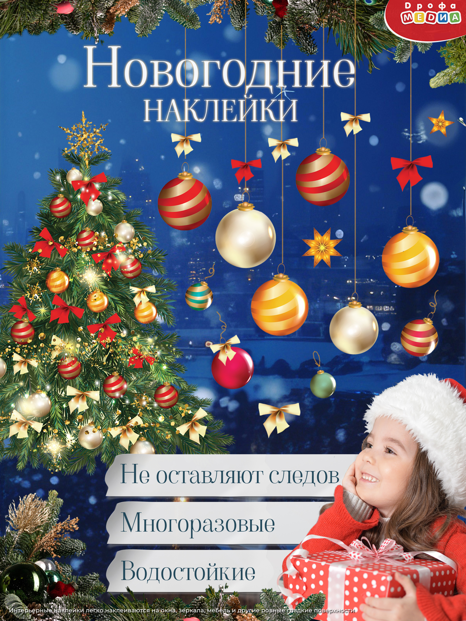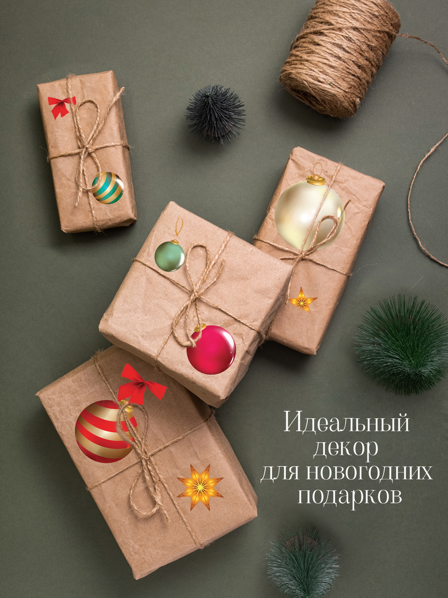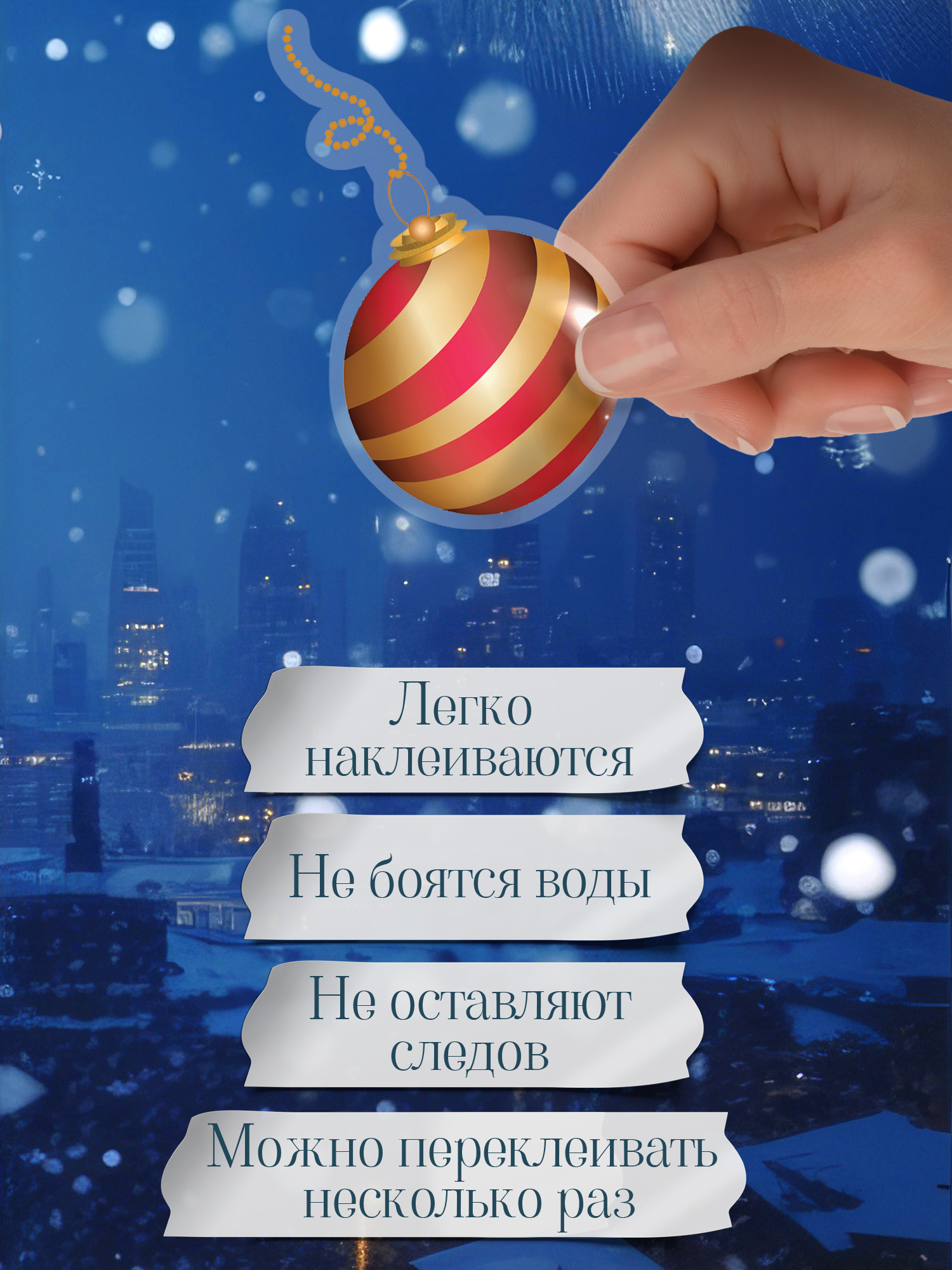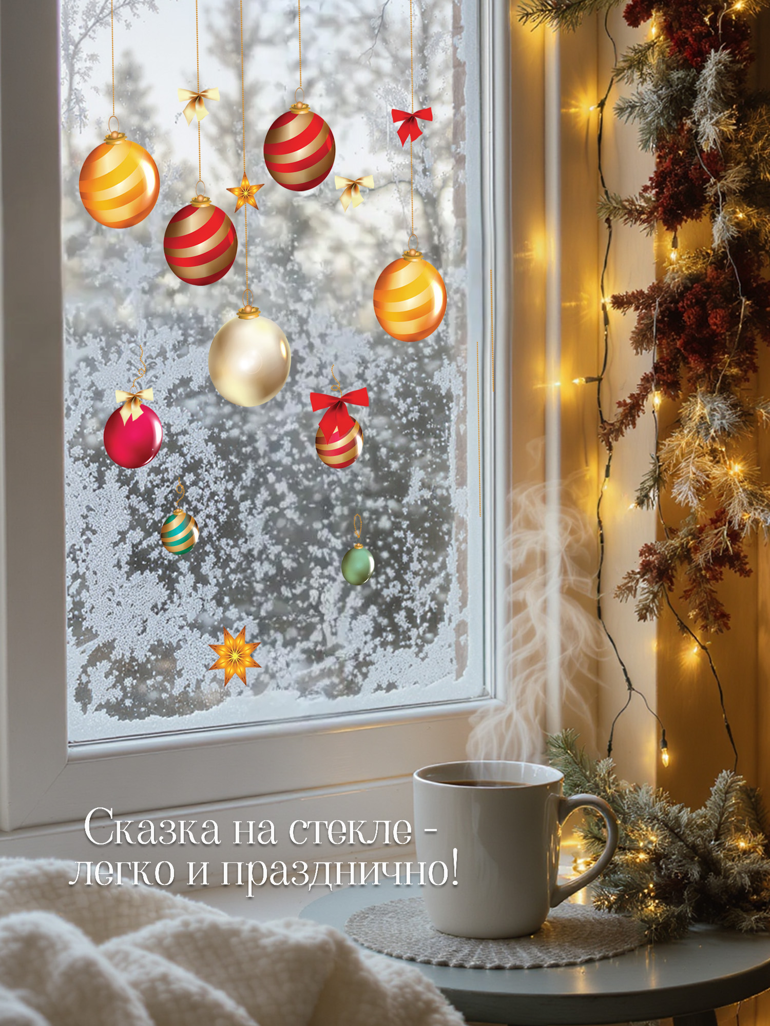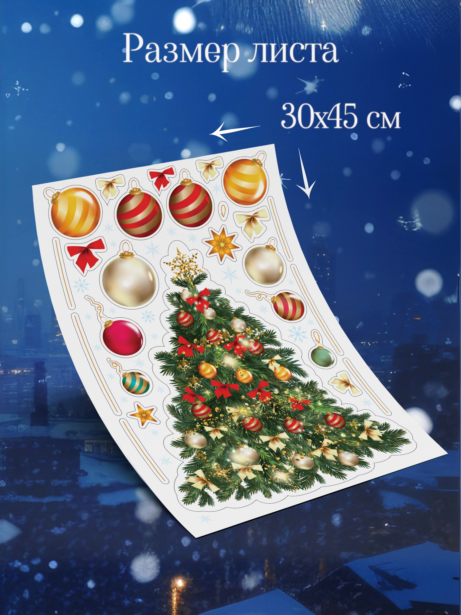 Новогодняя елка - классическое украшение для Нового Года. Набор наклеек с новогодней елкой и шариками преобразит интерьер и создаст новогоднее настроение.