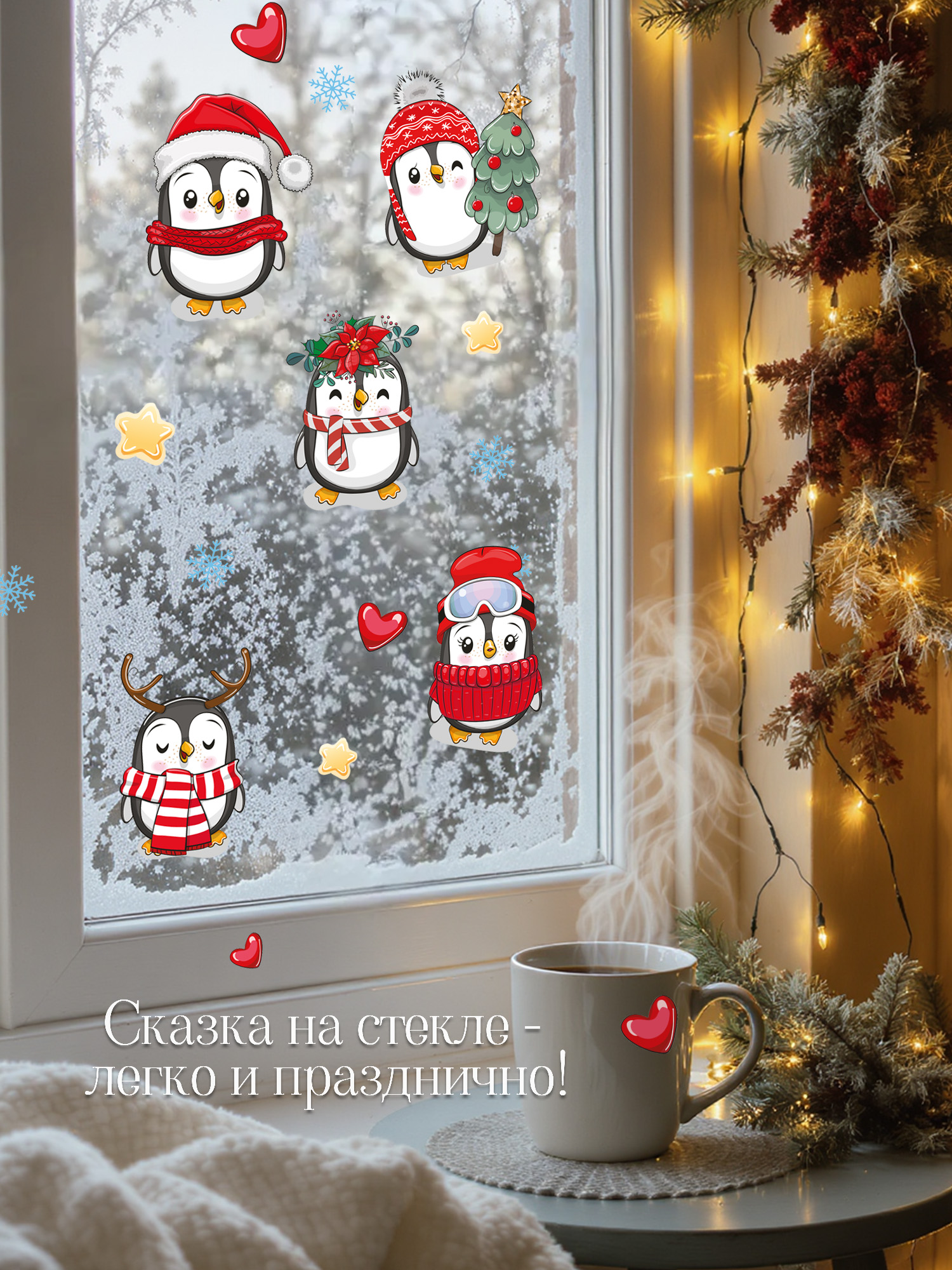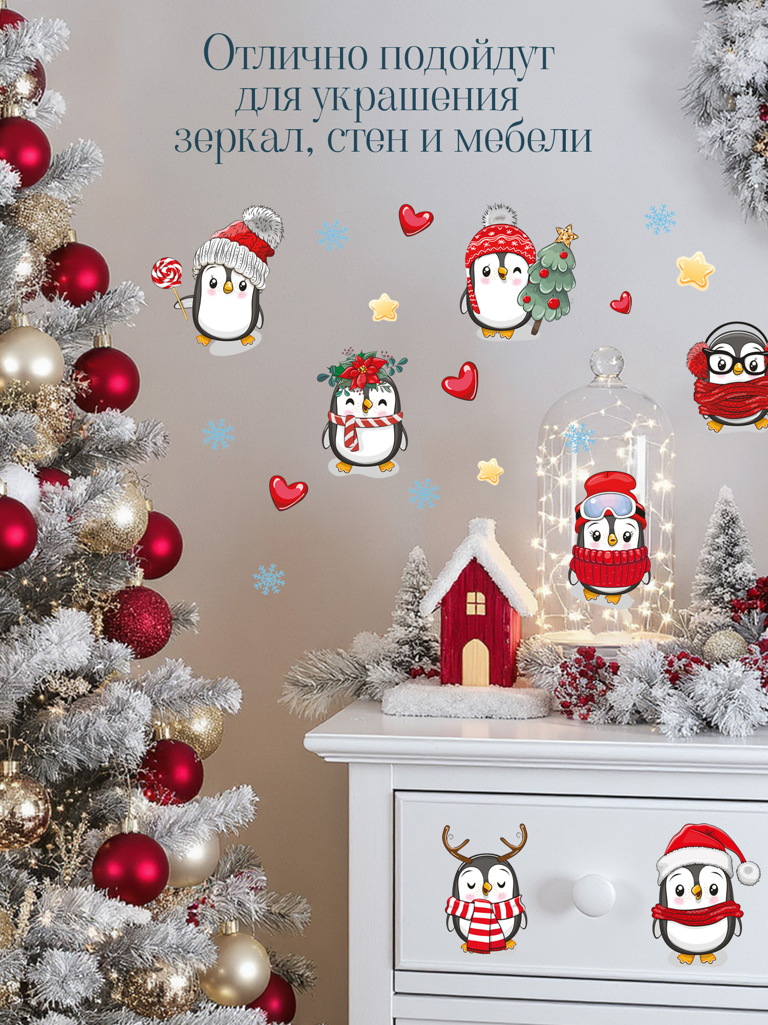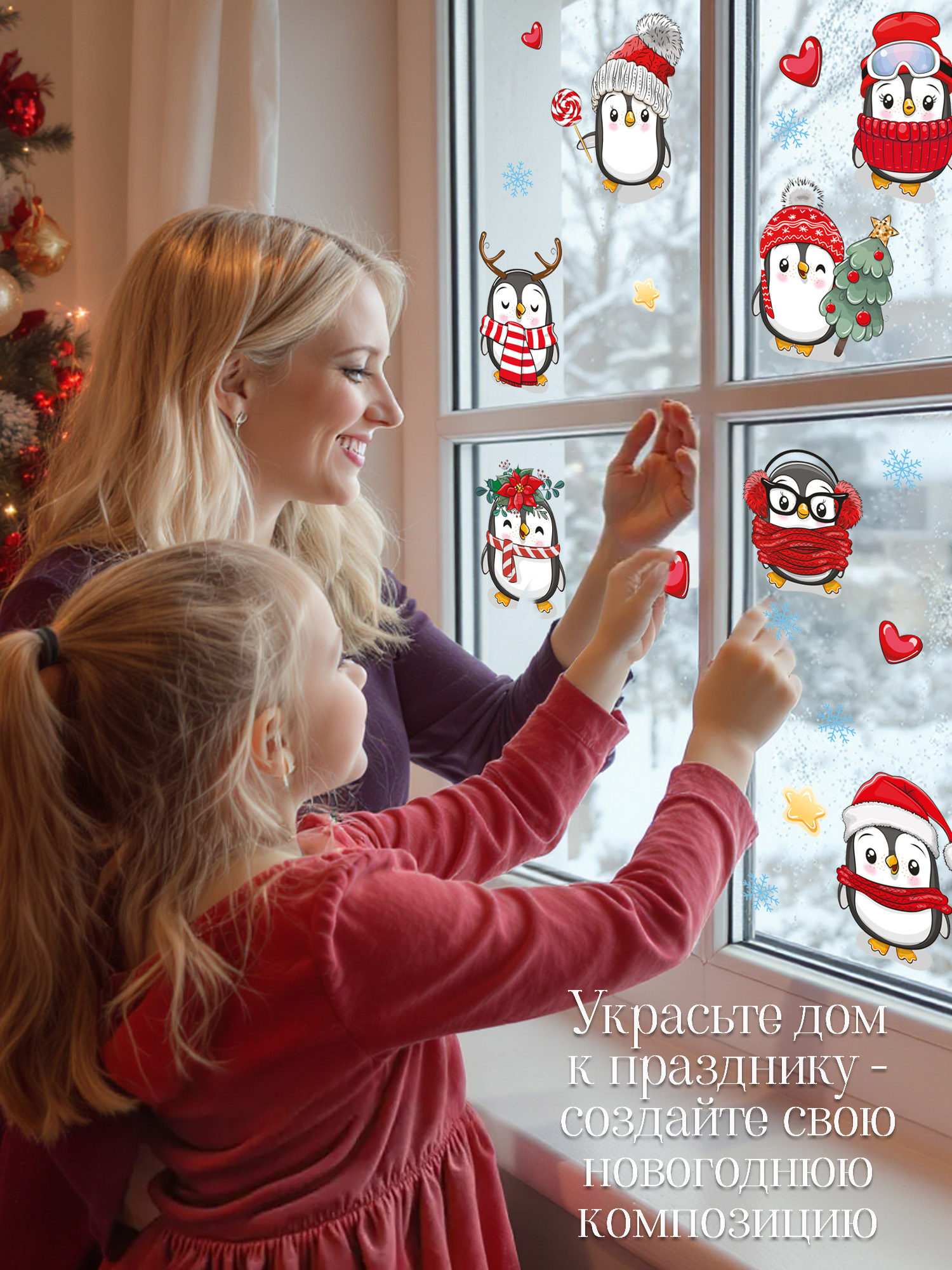 Новогодние наклейки - украшения для дома. С ними вы можете украсить дом, школу или детский сад к Новому году! Создавайте теплую, неповторимую атмосферу приближающегося праздника своими руками, проведите время с детьми, украшая комнату. Эти декоративные наклейки станут отличным новогодним подарком. 19 наклеек в наборе (1 лист с наклейками, размер листа - 30х30 см, листовка с инструкцией). Все элементы наклеиваются отдельно, что позволяет составить композицию на свой вкус. Наклейки предназначены для стен, окон, плитки, мебели и других гладких поверхностей, не боятся воды, подходят для использования на кухне в ванной. Не рекомендуется клеить на штукатурку, шпаклёвку, пеноблоки, кирпич, а также на бумажные обои. Наклейки не оставляют следов, их можно переклеивать несколько раз. Обязательно ознакомьтесь с инструкцией перед использованием.