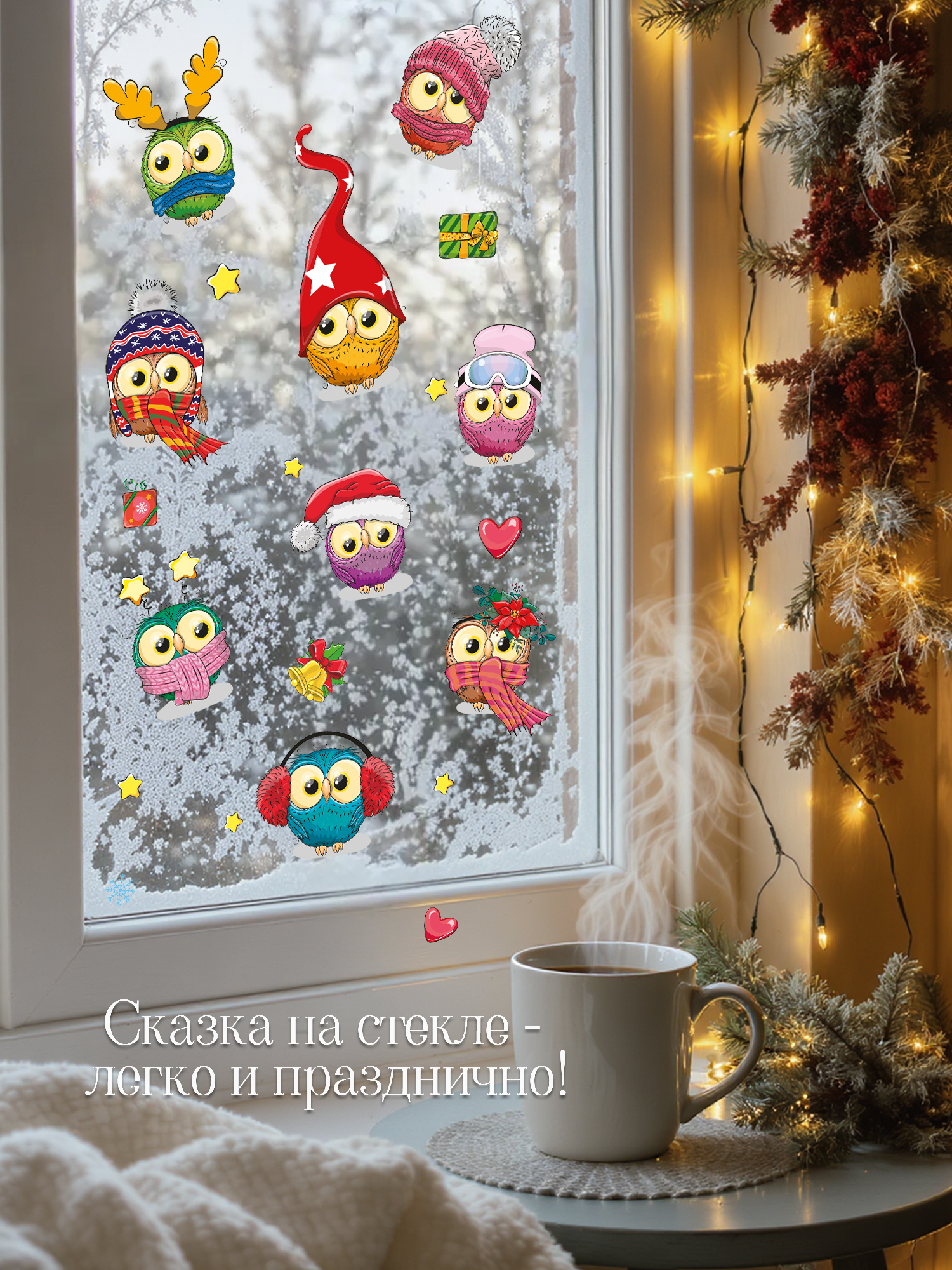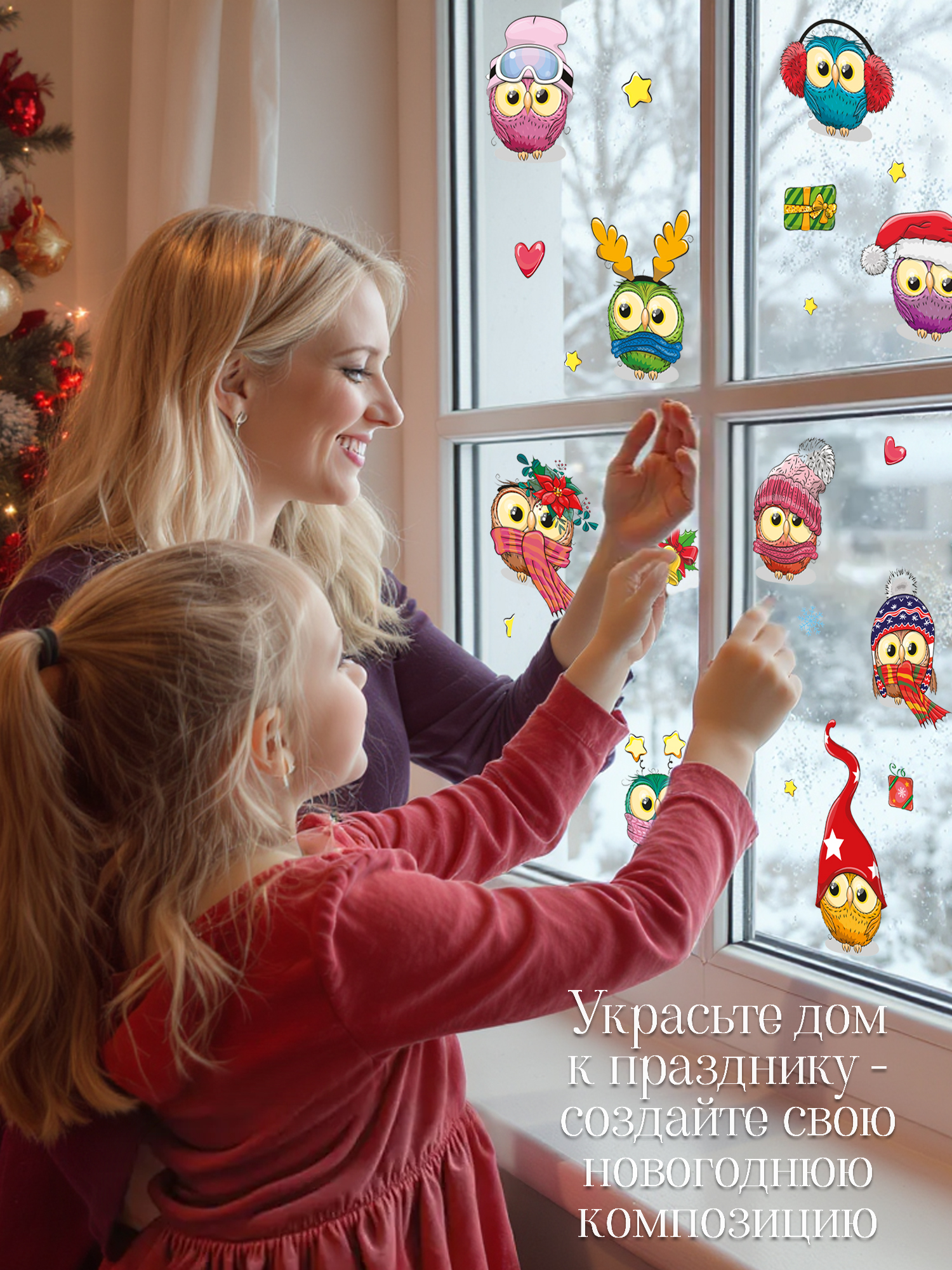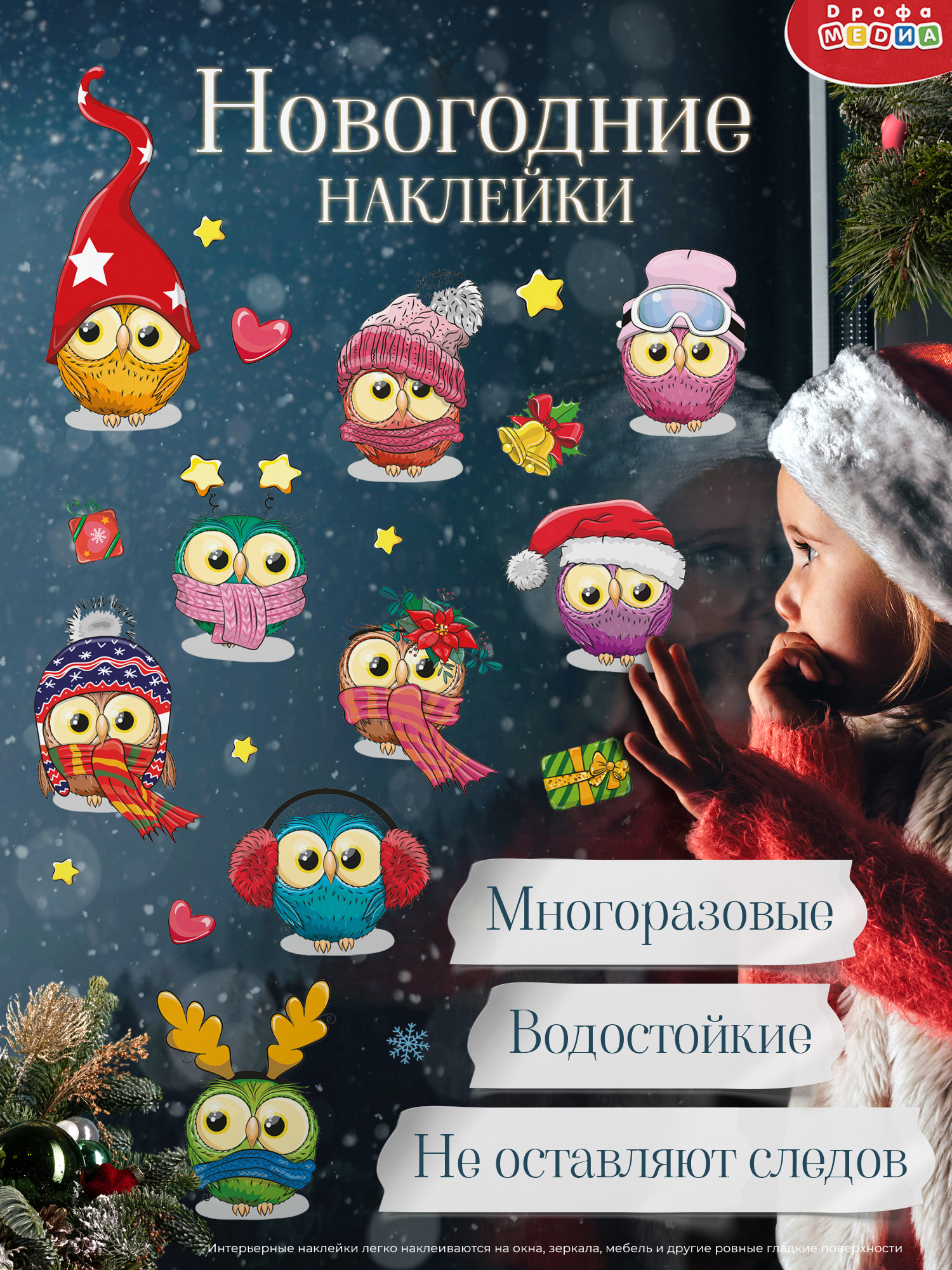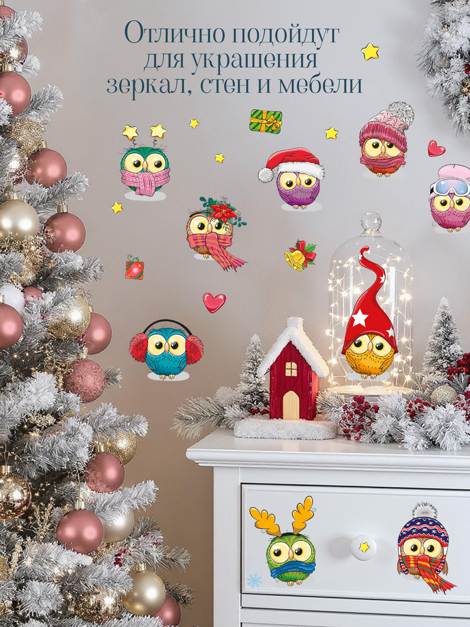 Новогодние наклейки - украшения для дома. С ними вы можете украсить дом, школу или детский сад к Новому году! Создавайте теплую, неповторимую атмосферу приближающегося праздника своими руками, проведите время с детьми, украшая комнату. Эти декоративные наклейки станут отличным новогодним подарком.