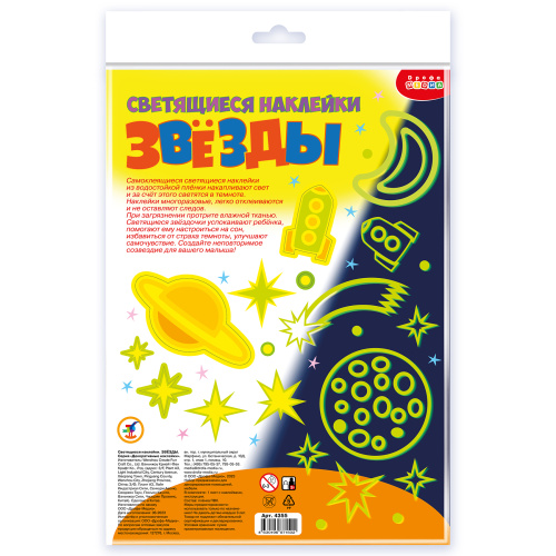 22 наклейки в наборе (1 лист с наклейками, размер листа - 30х30 см, листовка с инструкцией). Все элементы наклеиваются отдельно, что позволяет составить композицию на свой вкус.