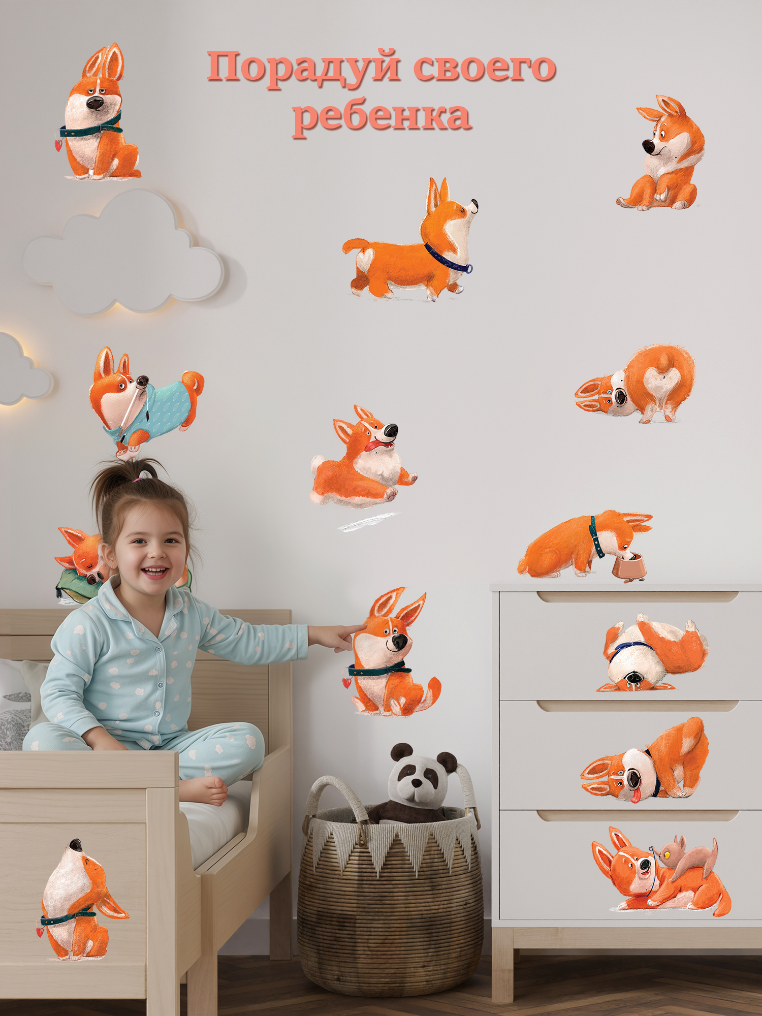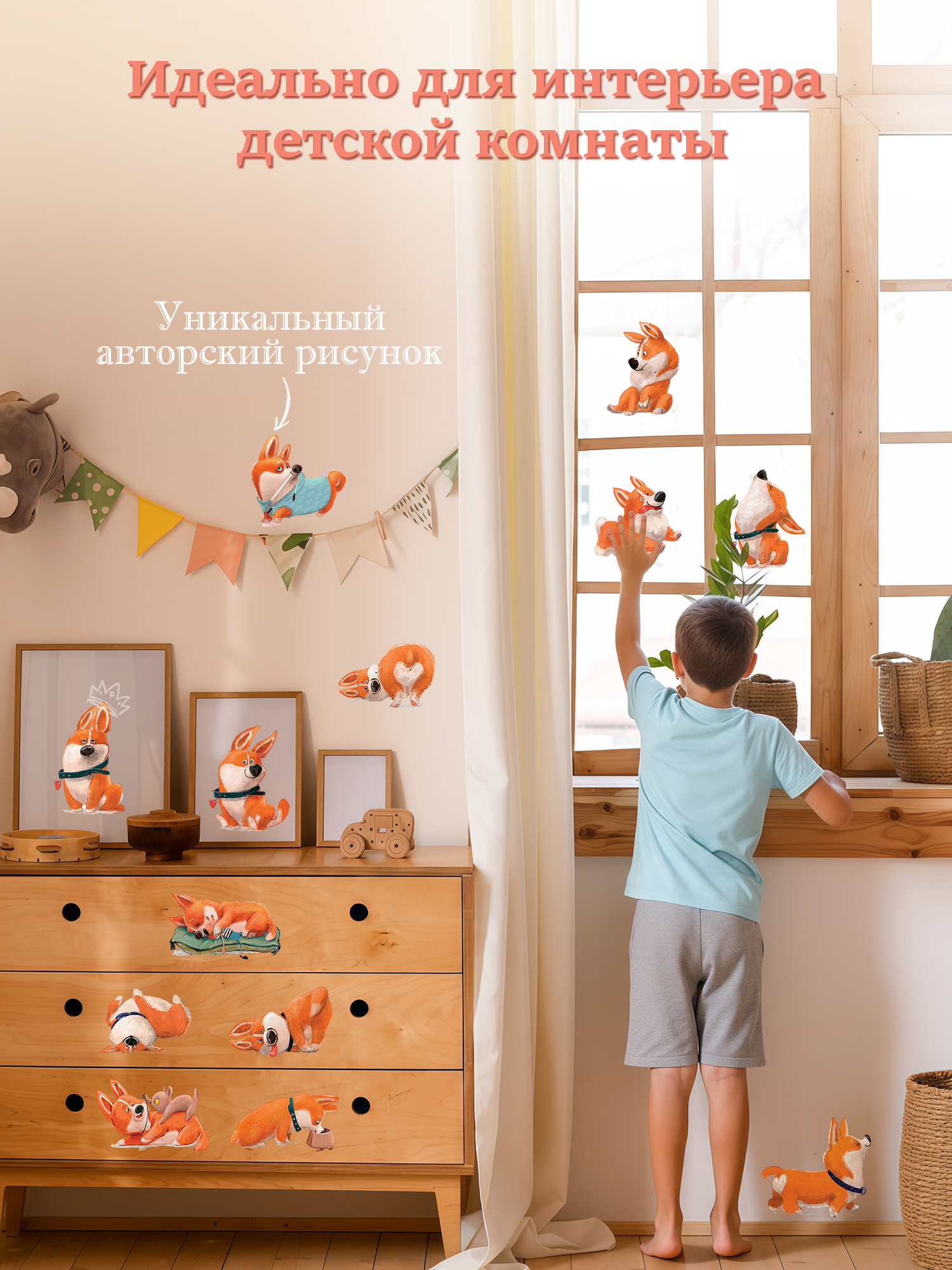 С помощью декоративных наклеек можно украсить комнату, обновить интерьер или сделать его более индивидуальным, учитывая интересы ребёнка. Все элементы наклеиваются отдельно.