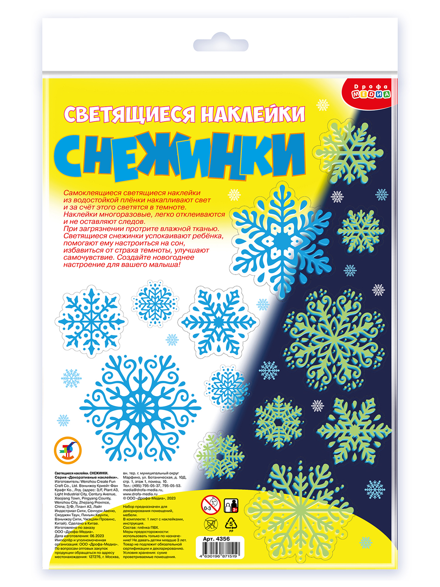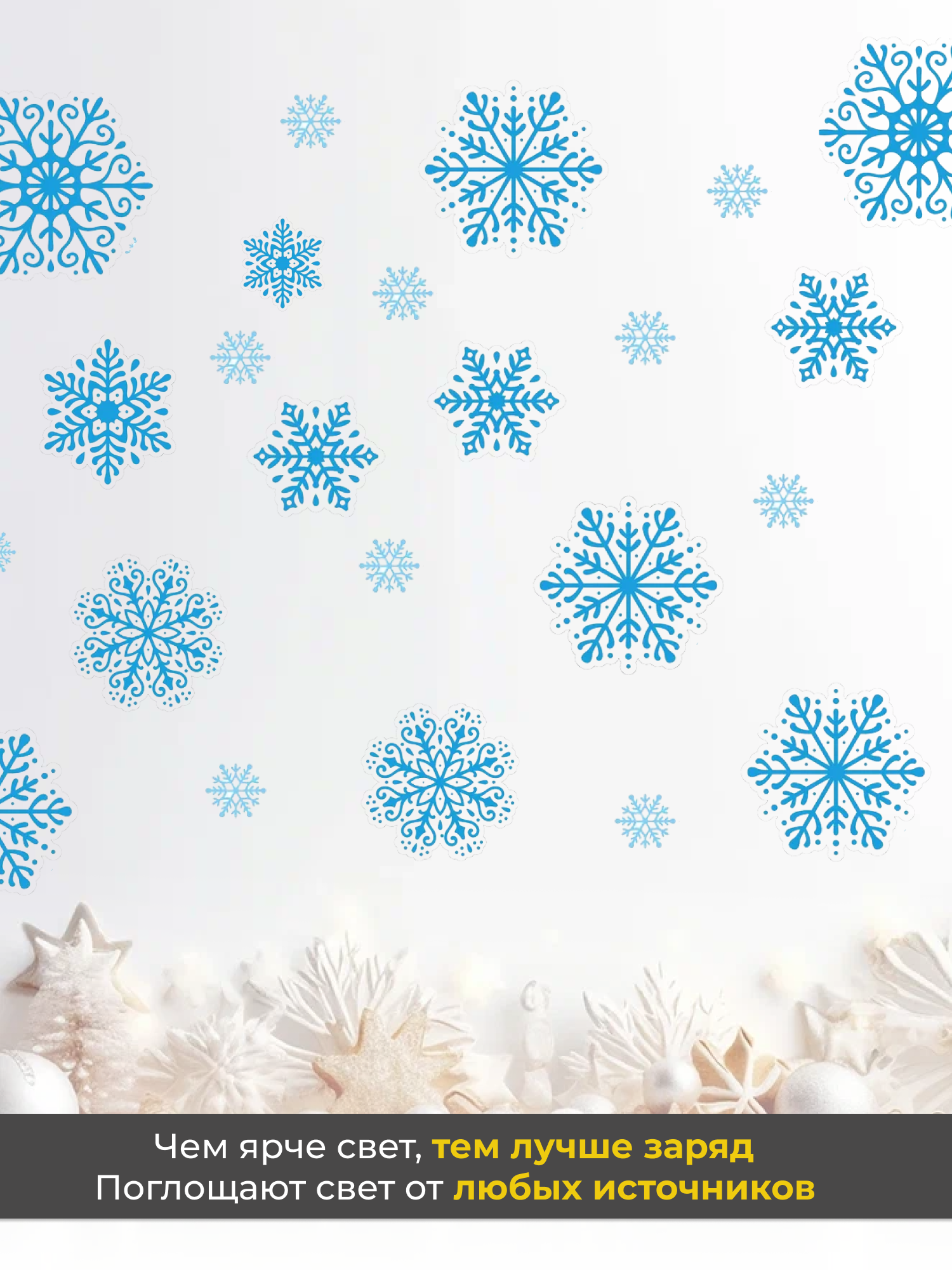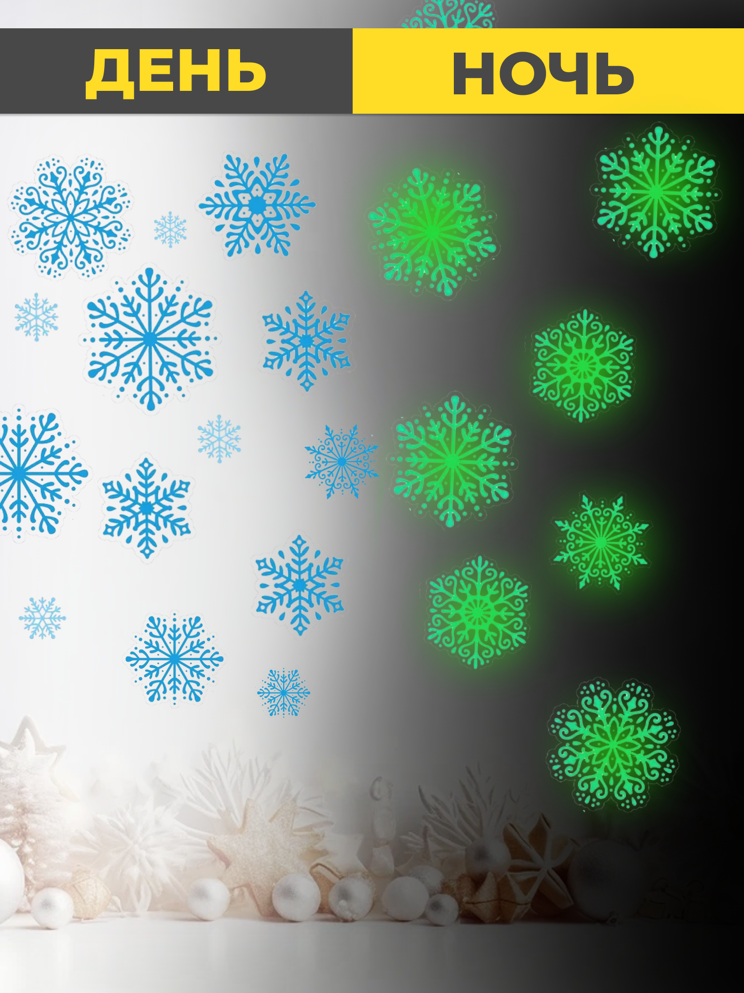 Самоклеящиеся новогодние наклейки из водостойкой плёнки накапливают тепло и за счёт этого светятся в темноте. Наклейки многоразовые, легко отклеиваются и не оставляют следов. Подходят для украшения детской комнаты, кухни, школьного класса или группы детского сада к Новому году.