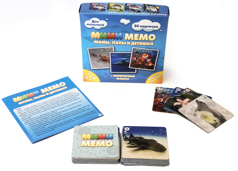 "МиМи Мемо" - познавательная игра для тренировки визуальной памяти, расширения кругозора и словарного запаса. Она поможет развить внимательность и умение сопоставлять и сравнивать. Игра научит детей не только отличать одних животных от других, но и запомнить, как называются звериные семьи. Как "зовут" маму папу и детеныша. В наборе 30 карточек из плотного картона с парными изображениями. Также в комплекте буклет-инструкция с описанием семей, забавных фактов и привычек животных, изображенных на карточках.