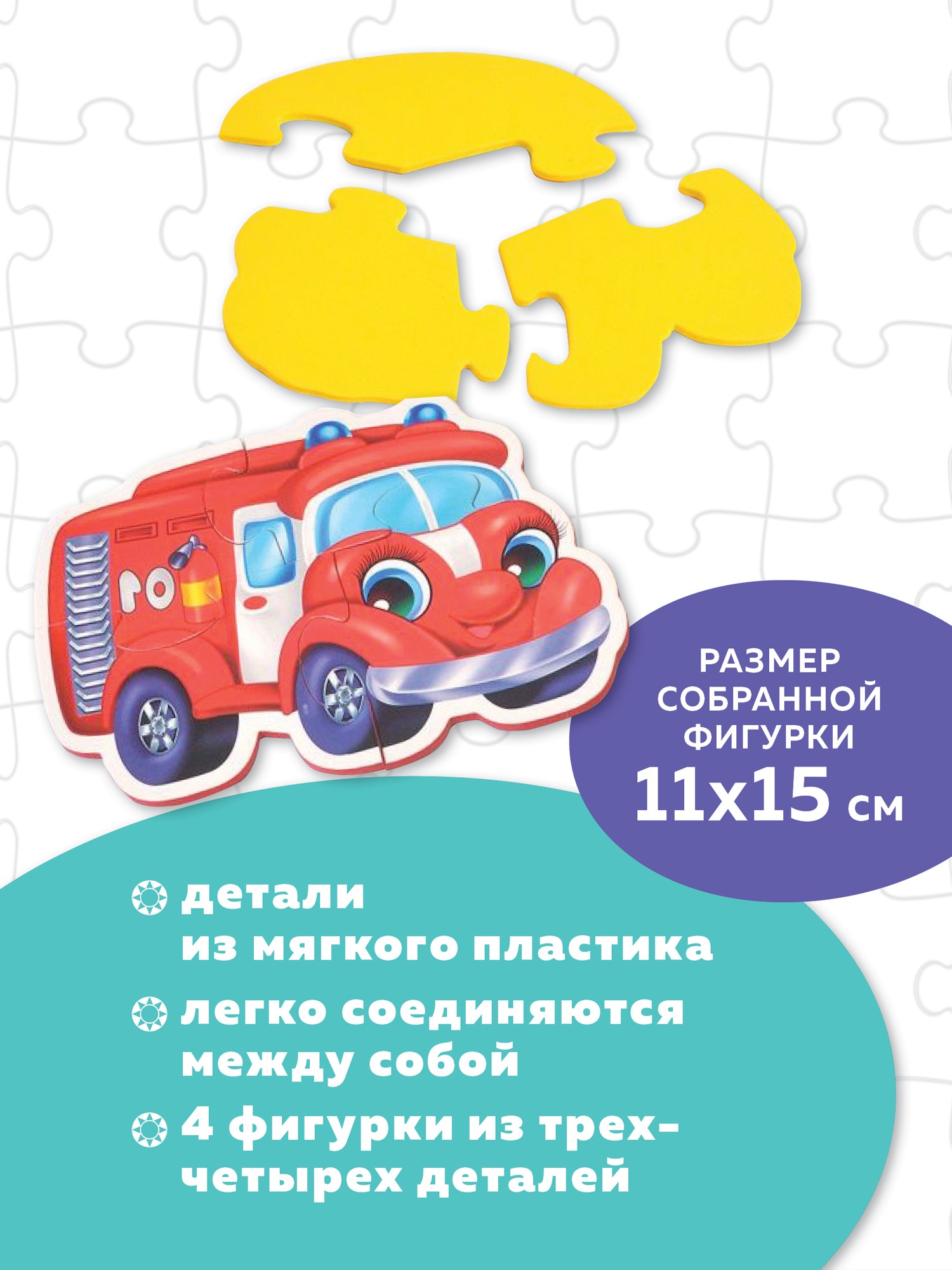 В наборе — 4 фигурки, состоящие из трёх-четырёх деталей, которые легко соединяются между собой. Детали выполнены из мягкого пластика. Собирать такие пазлы намного проще, чем пазлы из картона — они не только удобны, но и безопасны для ребёнка. Малыш с удовольствием проведёт время, собирая яркие и красивые фигурки-пазлы. В процессе работы развивается мелкая моторика, память и внимательность.