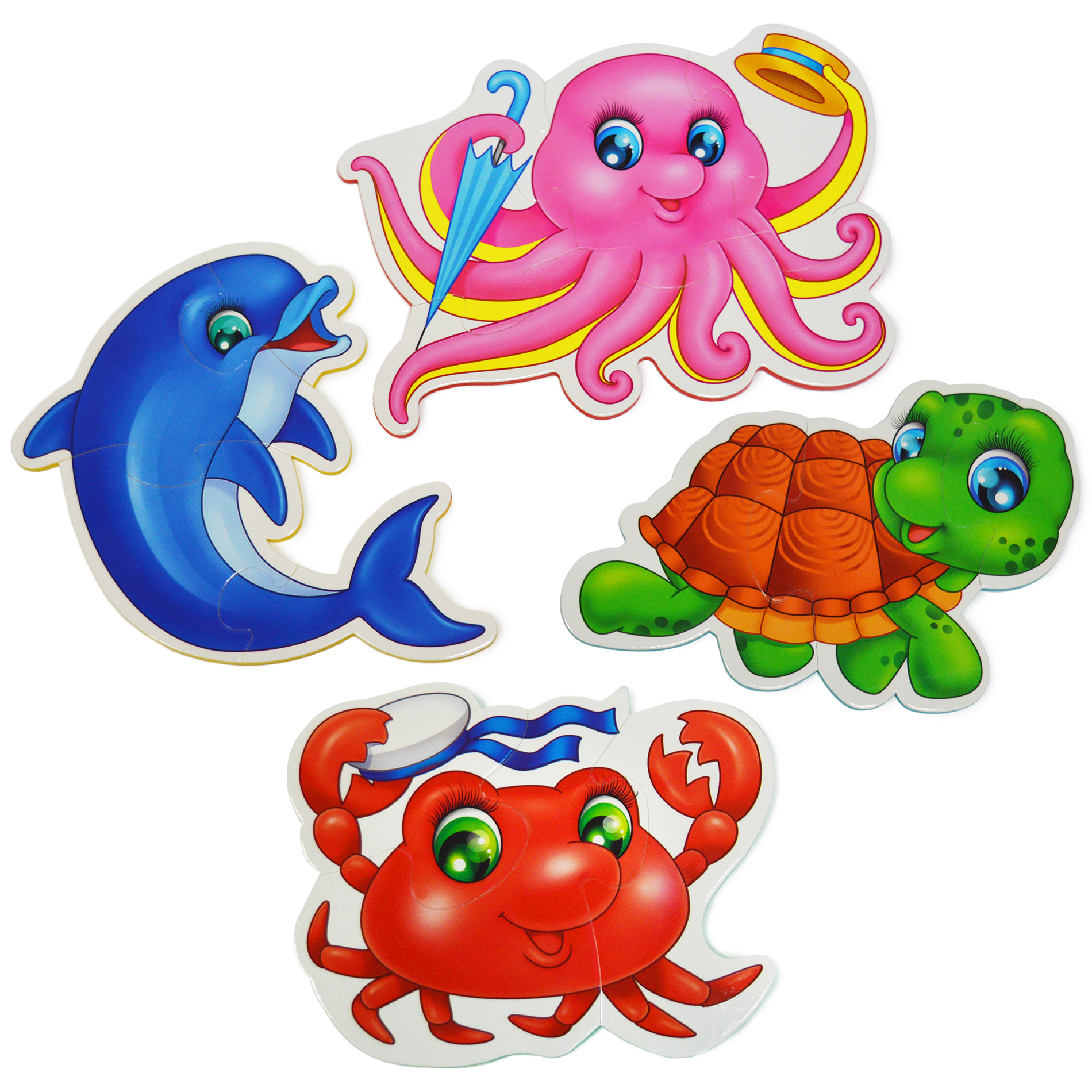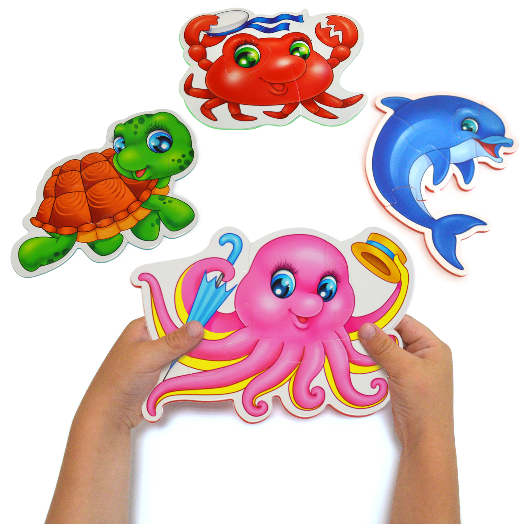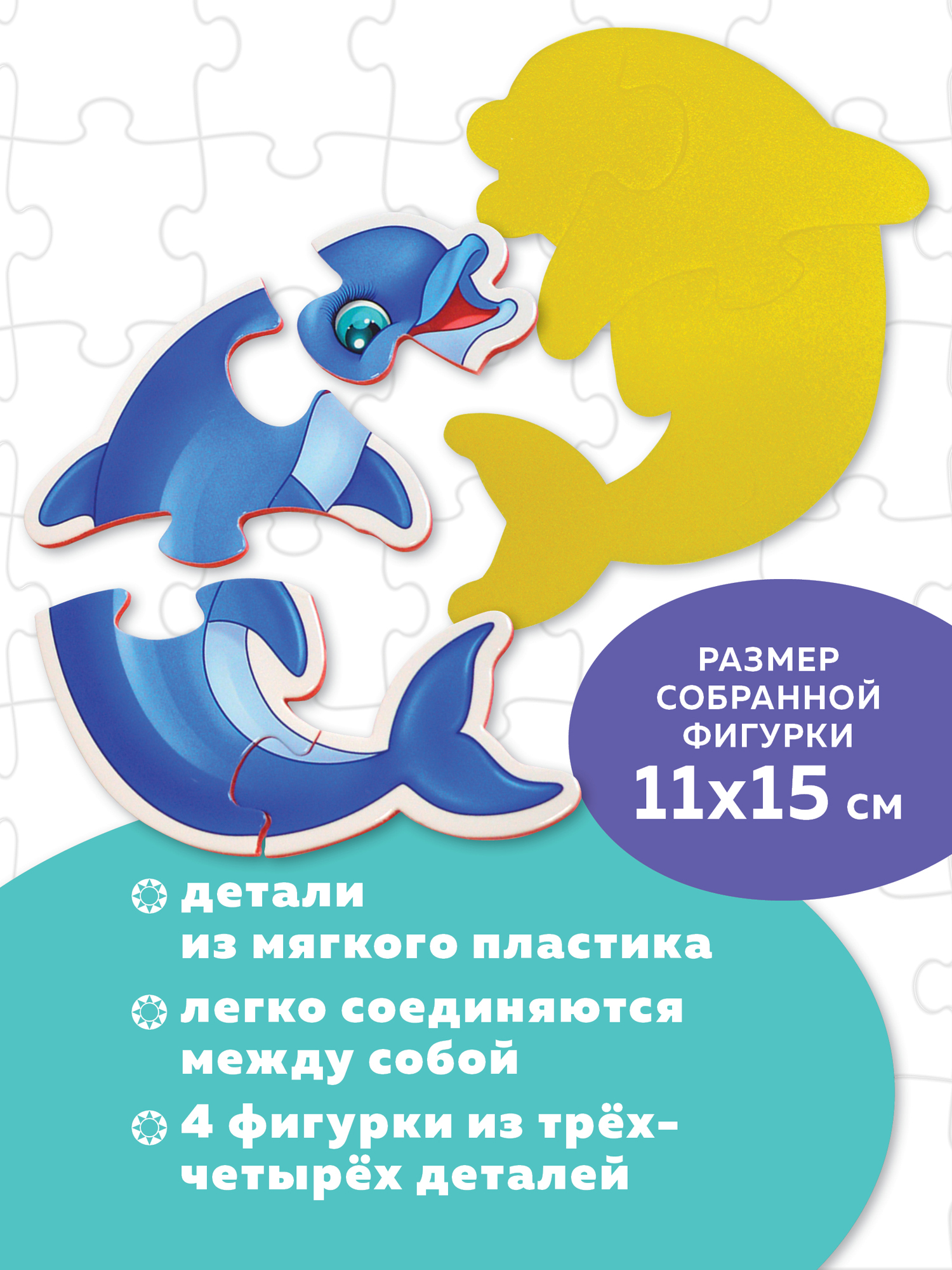 В наборе — 4 фигурки, состоящие из трёх-четырёх деталей, которые легко соединяются между собой. Детали выполнены из мягкого пластика. Собирать такие пазлы намного проще, чем пазлы из картона — они не только удобны, но и безопасны для ребёнка. Малыш с удовольствием проведёт время, собирая яркие и красивые фигурки-пазлы. В процессе работы развивается мелкая моторика, память и внимательность.
