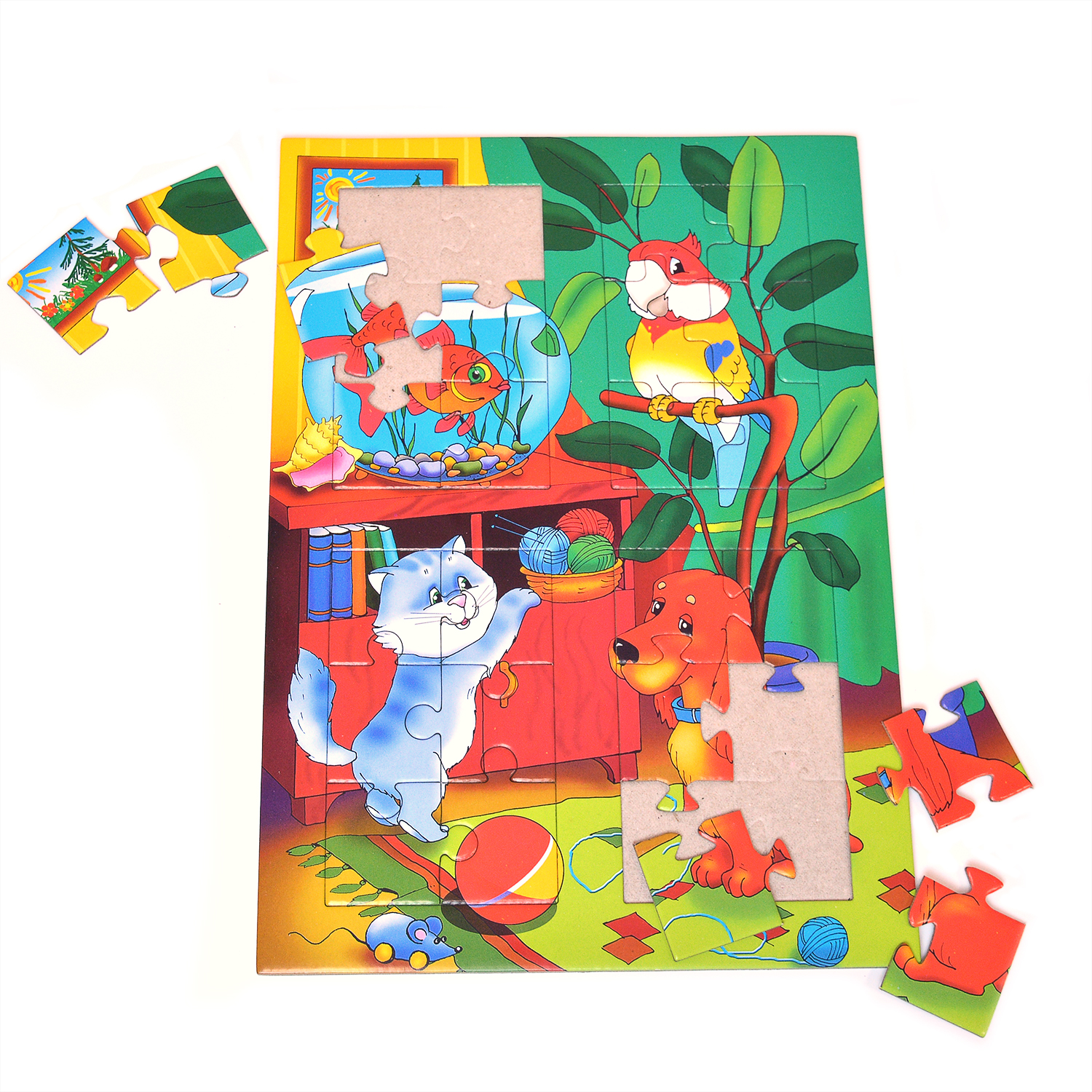 С разрезными картинками малыш научится подбирать подходящие по форме фрагменты рисунка и складывать их в целое изображение. Чтобы сложить картинку из нескольких частей, малышу нужно проявить сообразительность, терпение и настойчивость. Игры научат ребёнка усидчивости, умению доводить начатое дело до конца, помогут развить внимание, память, образное и логическое мышление, сенсорно-моторную координацию движения рук. Разная величина и форма собираемых элементов картинки способствуют развитию мелкой моторики, которая напрямую влияет на развитие речи и интеллектуальных способностей. В дальнейшем хорошая координация движений рук поможет ребёнку легко овладеть письмом. Элементы мозаики выкладываются на рамку, которая поможет малышу видеть, что он делает правильно, а над чем ещё нужно подумать. Контуры деталей собираемой картинки, повторяющиеся на рамке, позволят не ошибиться в подборе правильного элемента, а картинка-подсказка поможет справиться с заданием самостоятельно.