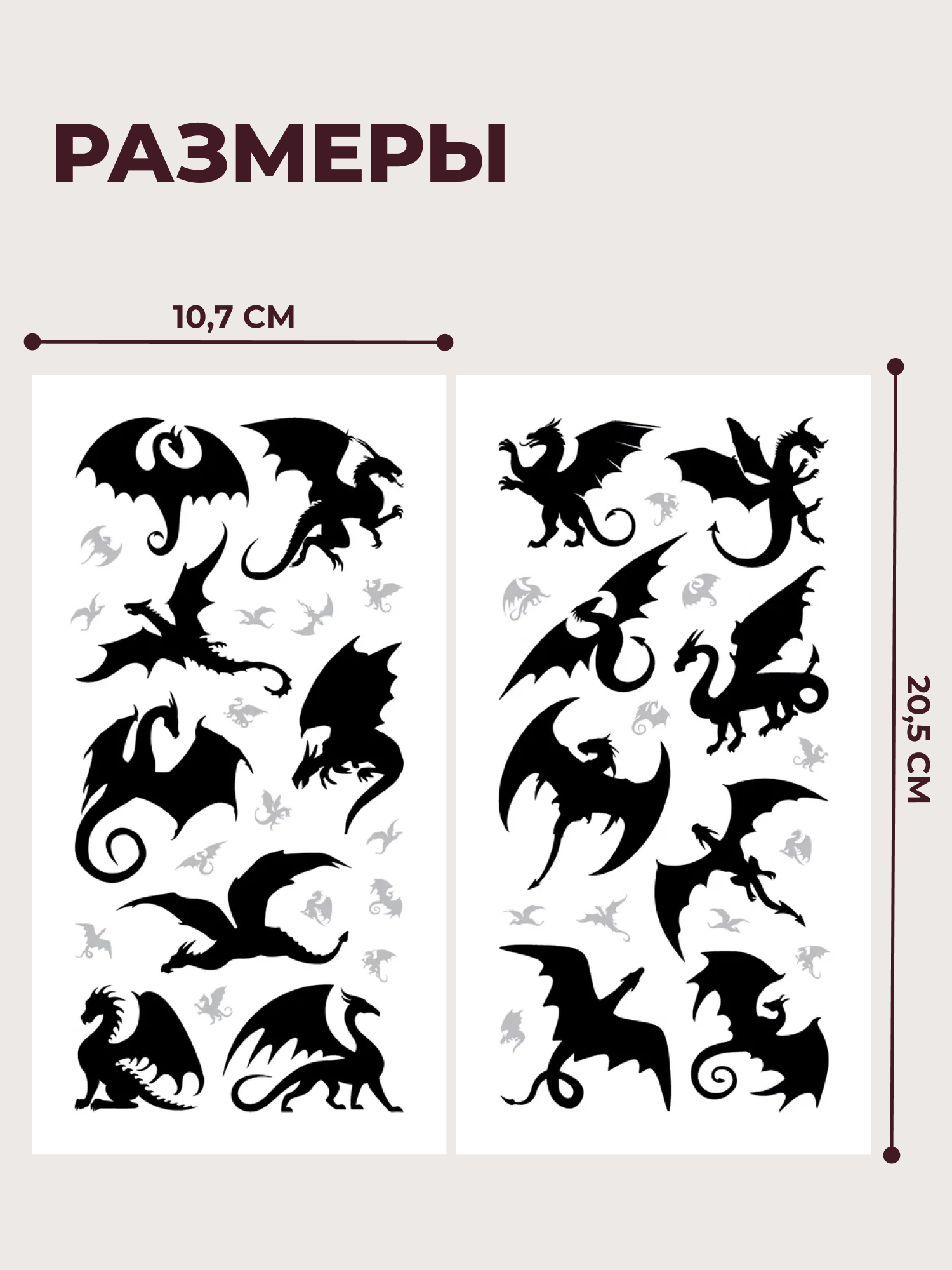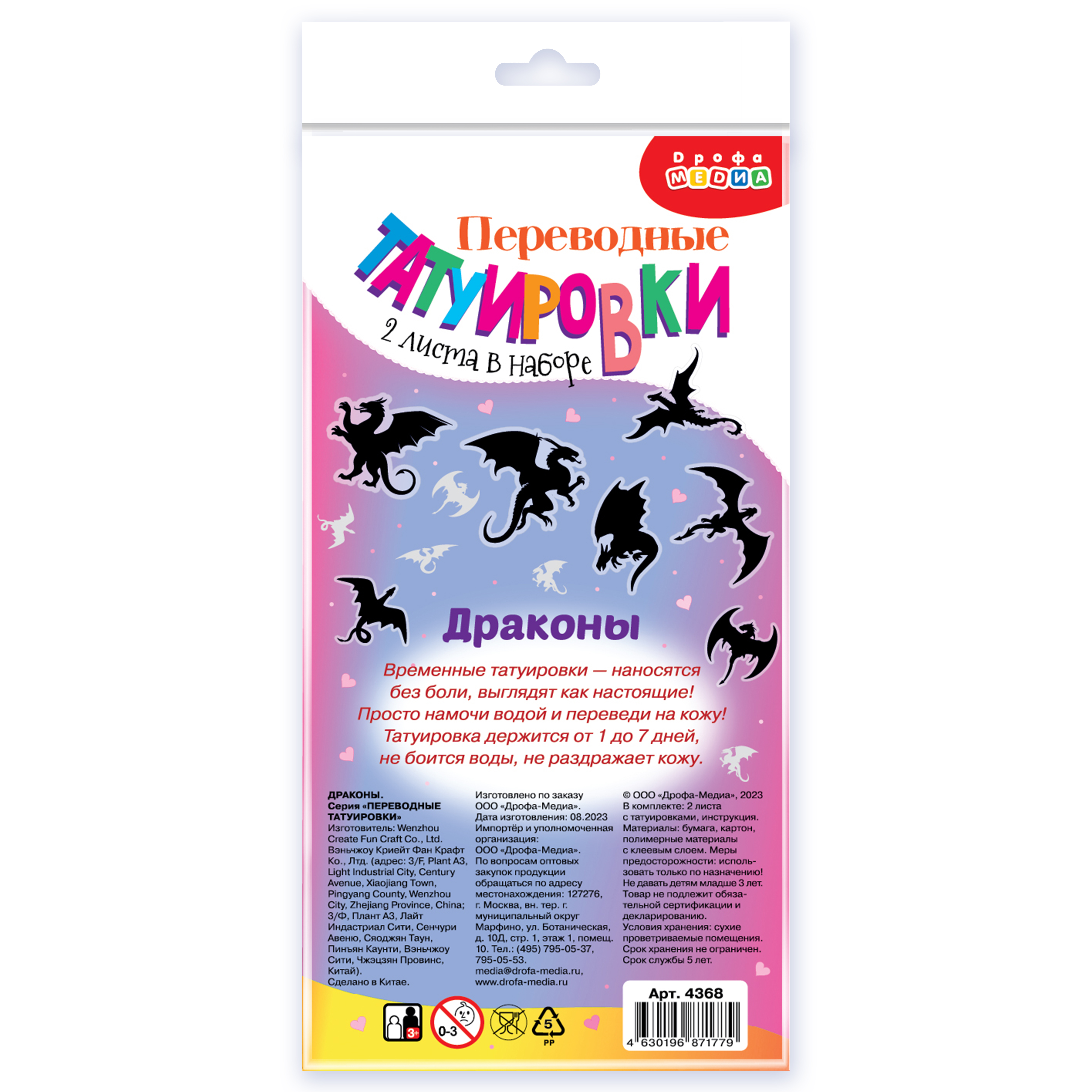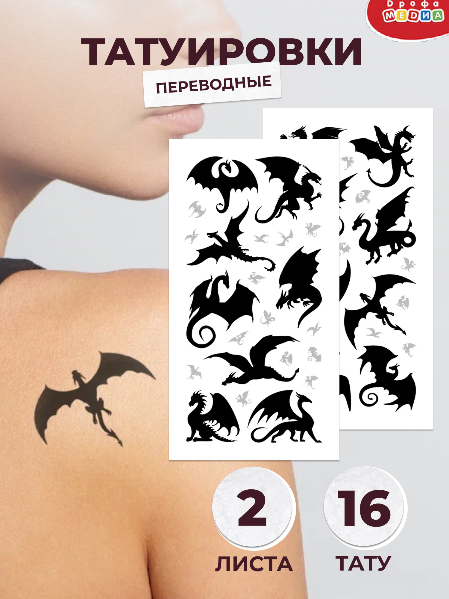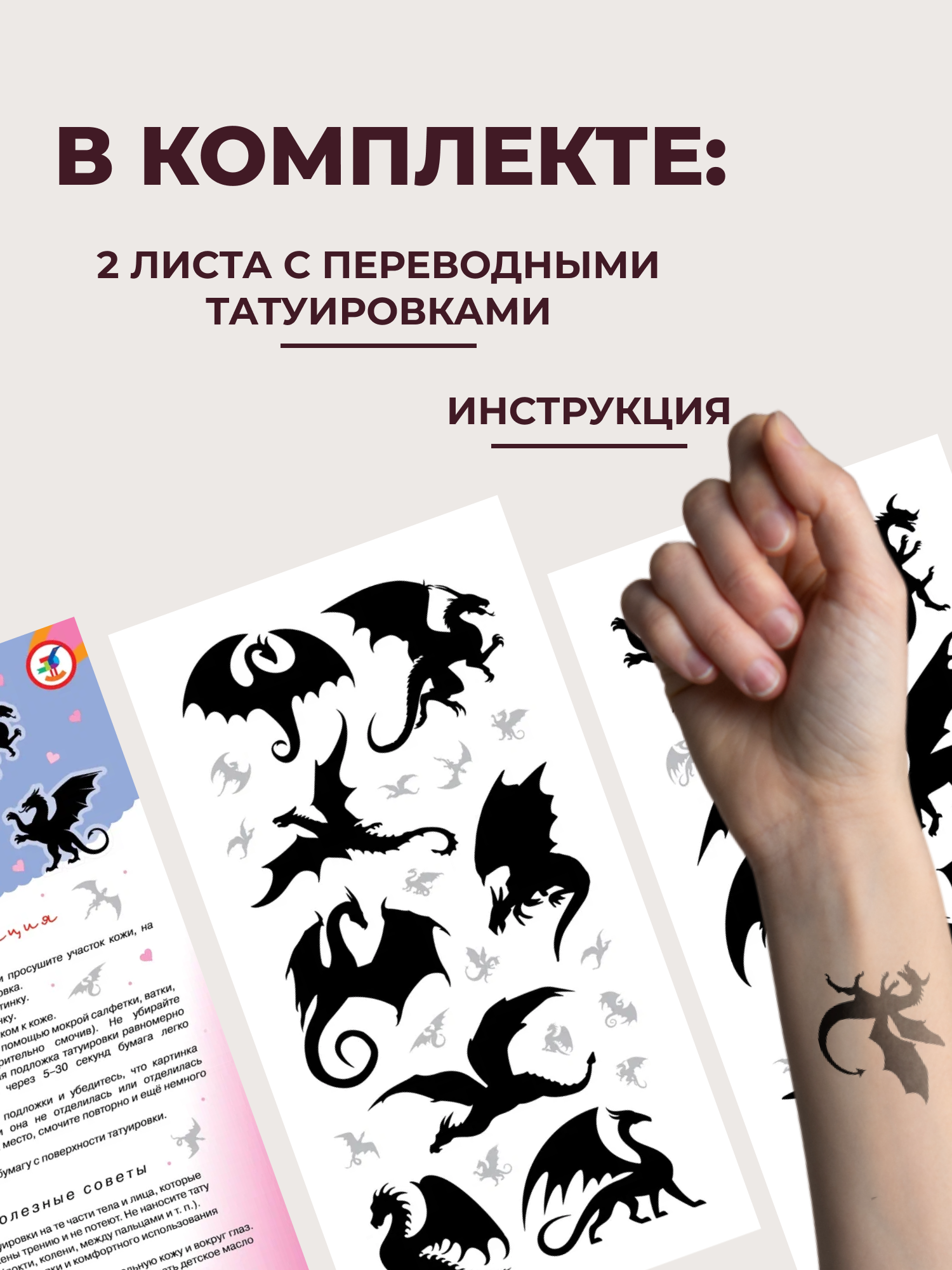 В комплекте: 2 листа с переводными татуировками, инструкция.