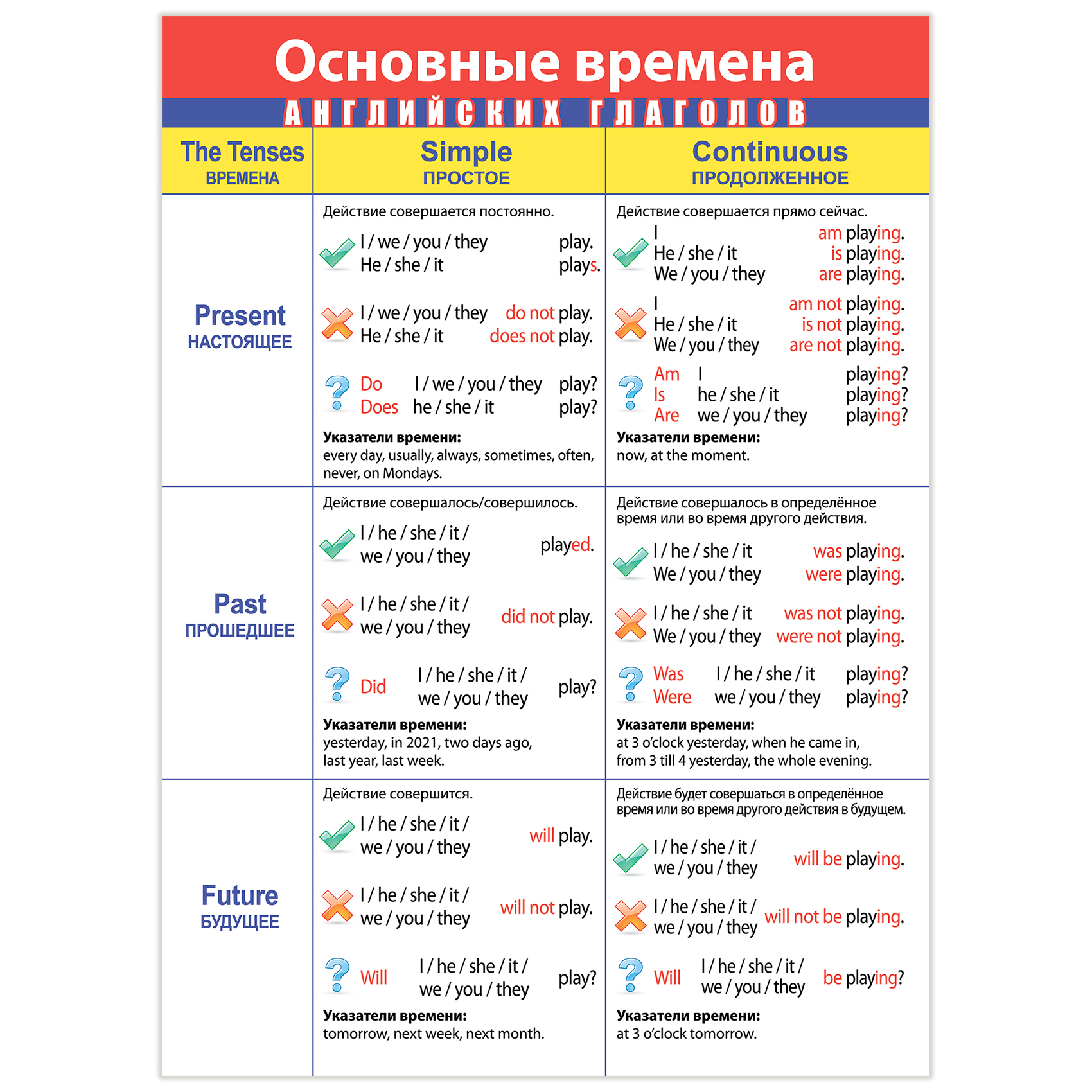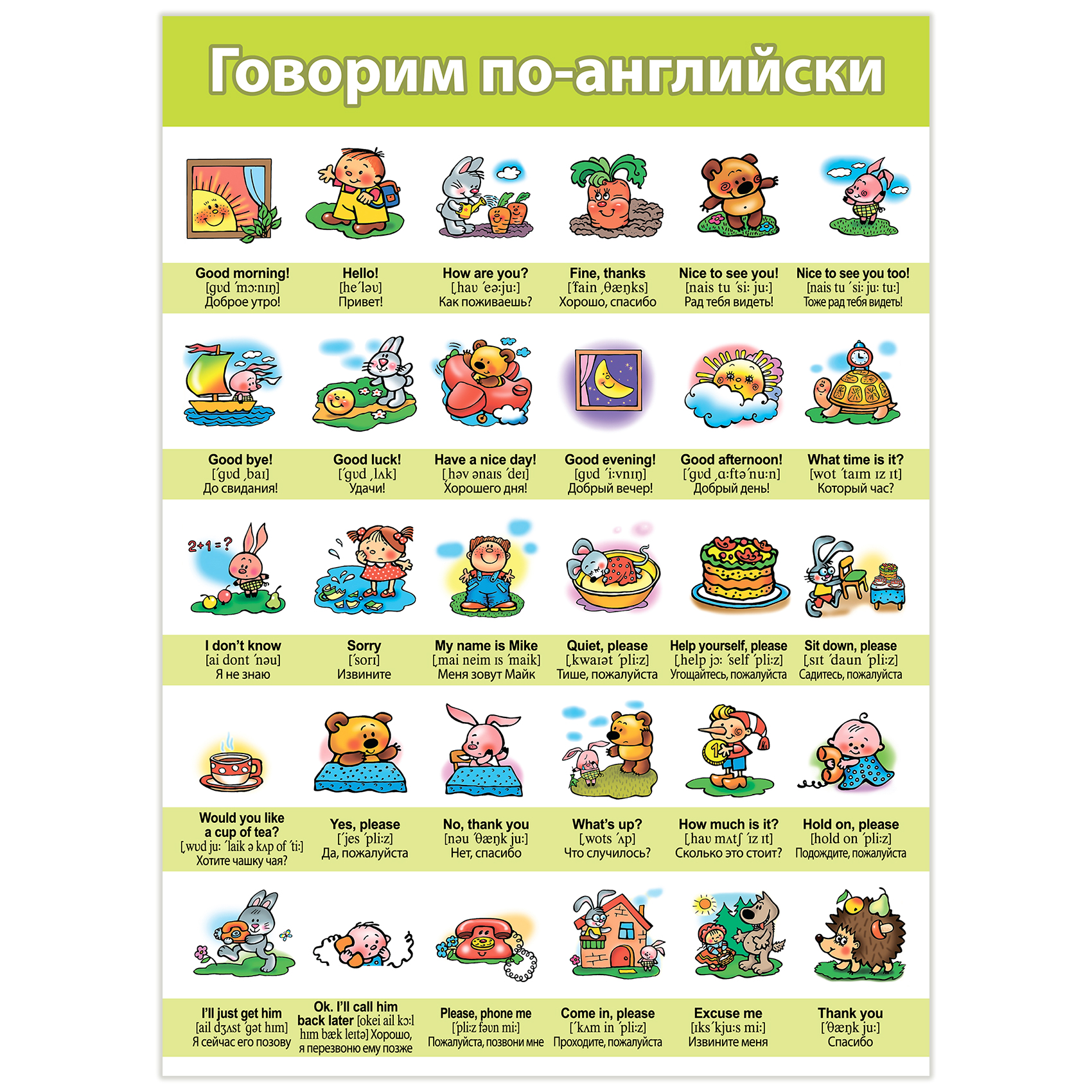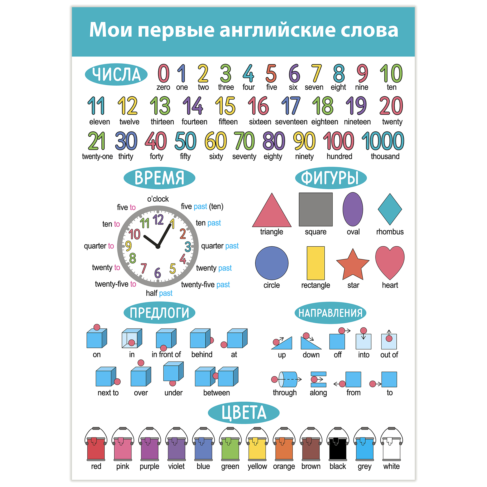 Комплект охватывает темы, актуальные на уроках английского языка в начальной школе. Наглядный материал поможет выучить алфавит, названия цветов, чисел и геометрических фигур, предлоги и неправильные глаголы. Также с помощью плакатов ребёнок познакомится с простыми словами и распространёнными фразами, научится определять основные времена английских глаголов. Повесьте плакаты в зоне видимости или положите на стол, где занимается ребёнок, и важная информация всегда будет под рукой.