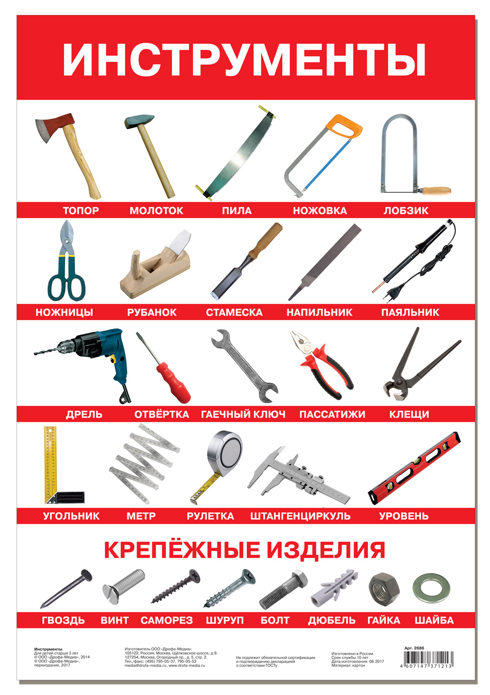 В семье не хватает мужчин, а знакомить ребенка с мужскими темами необходимо. Вот пригодился этот плакат. Теперь сын хотя бы по картинкам знает некоторые инструменты.