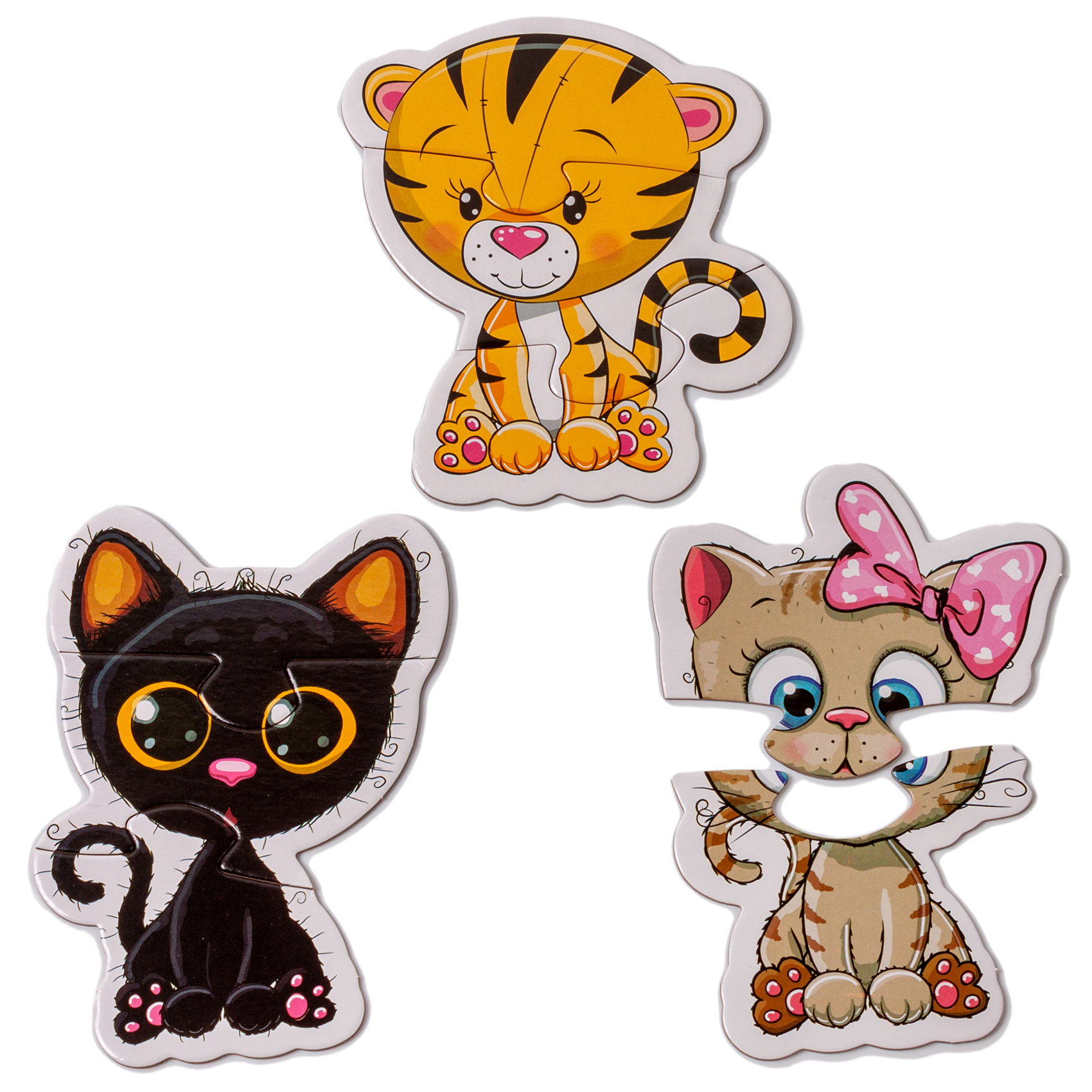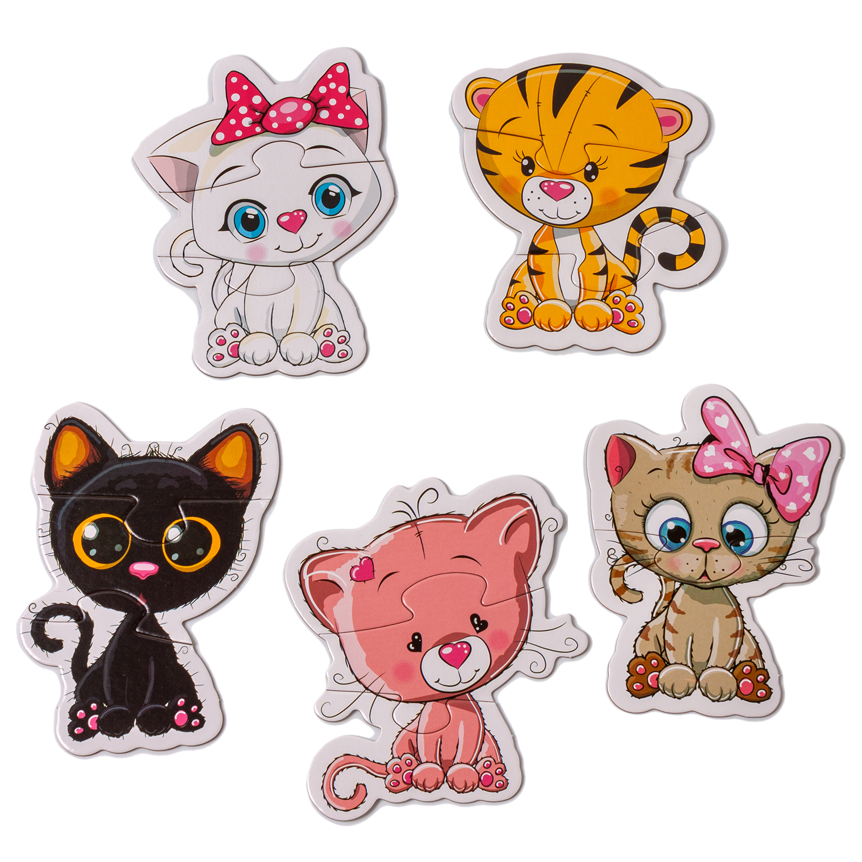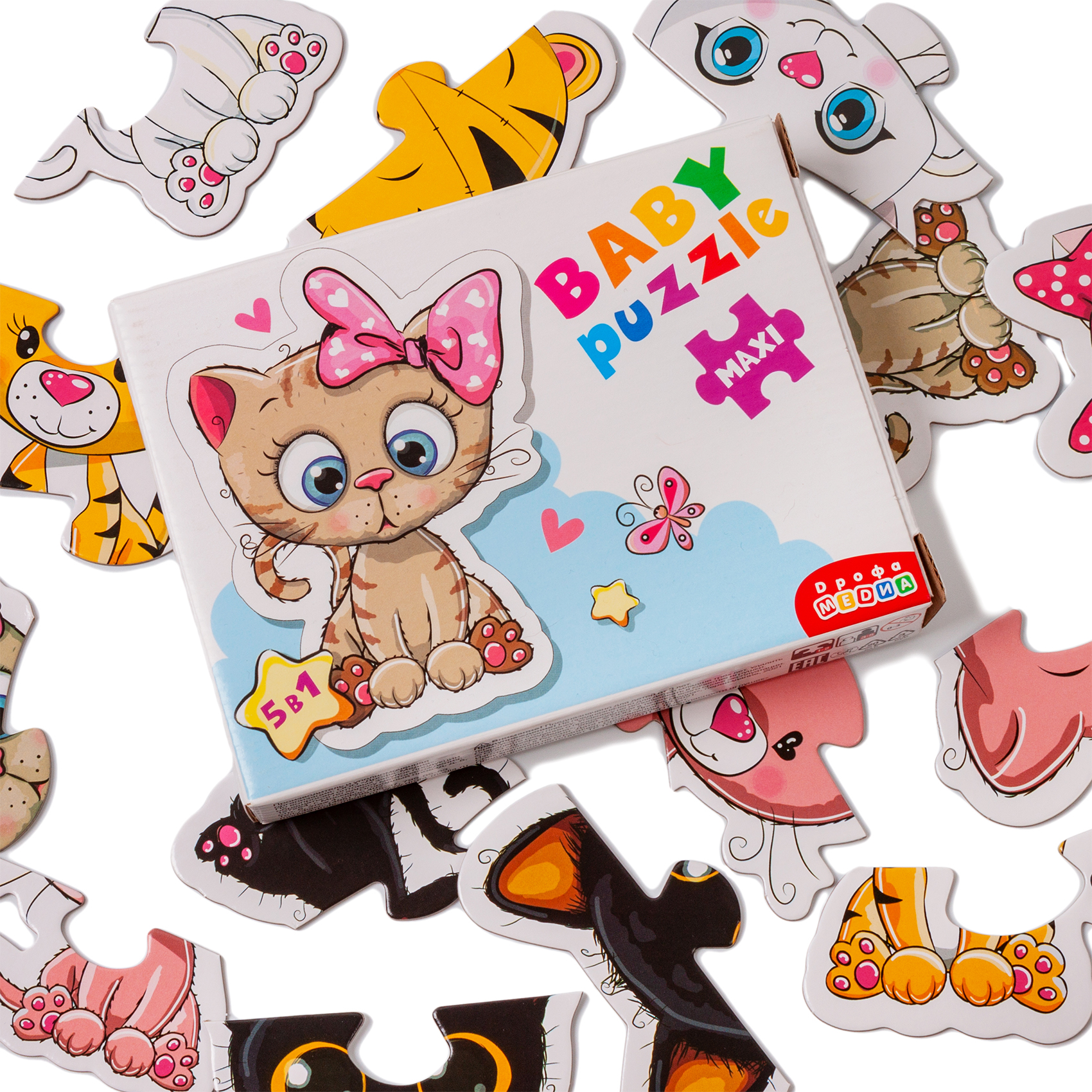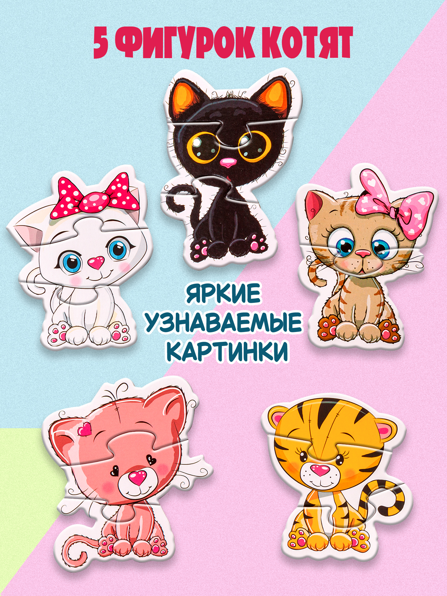 Крупные пазлы подходят для самых маленьких и помогут разнообразить занятия с ребёнком, сделать их интересными и полезными. В наборе 5 фигурок животных, разделённых на 2-3 элемента. Яркие узнаваемые картинки привлекут внимание малыша, а крупные детали из плотного картона помогут в развитии мелкой моторики.