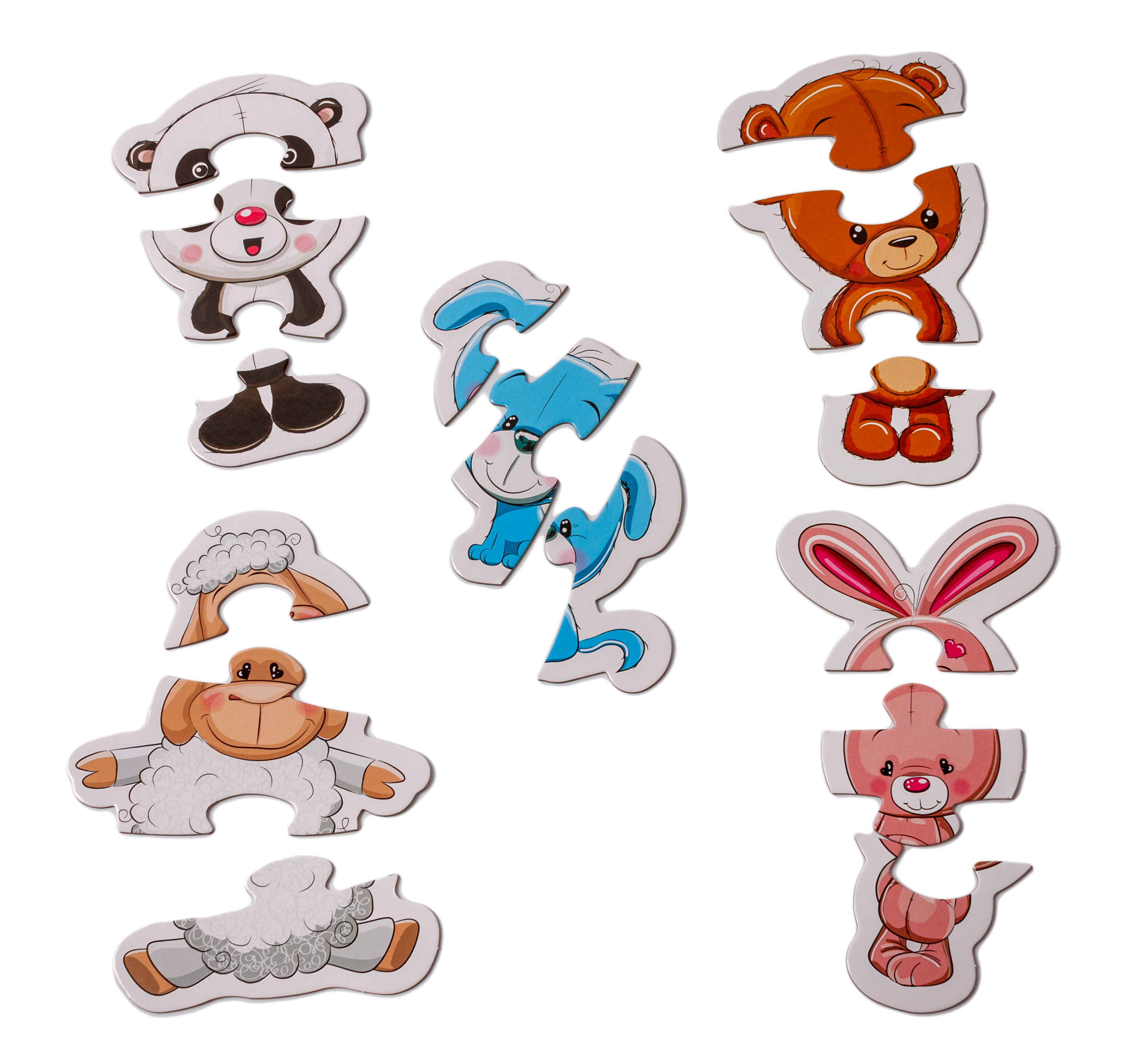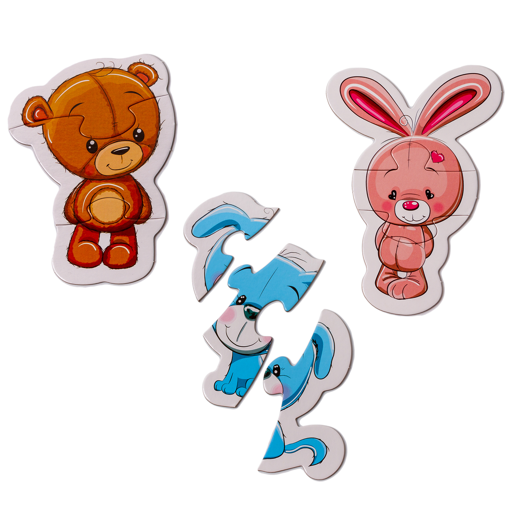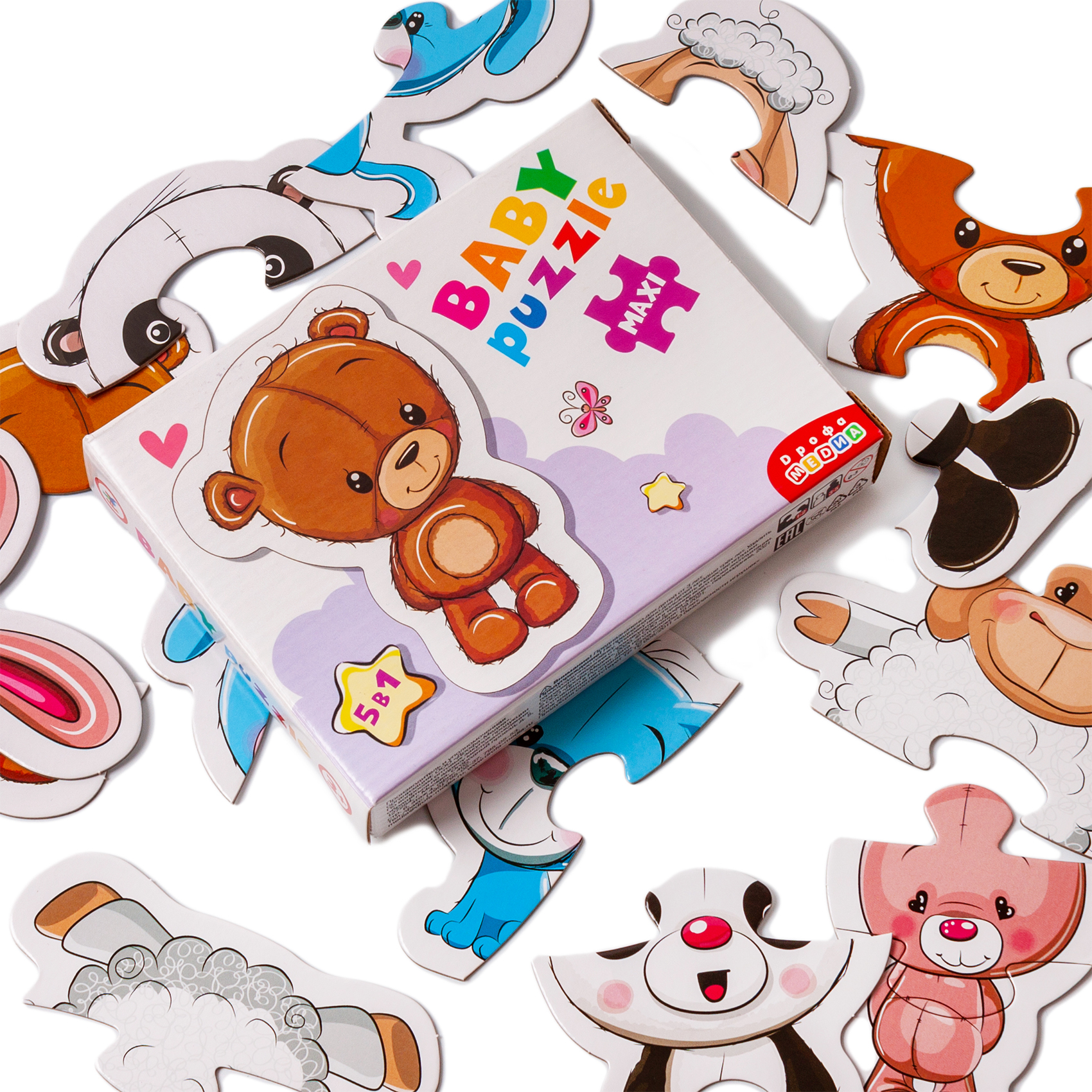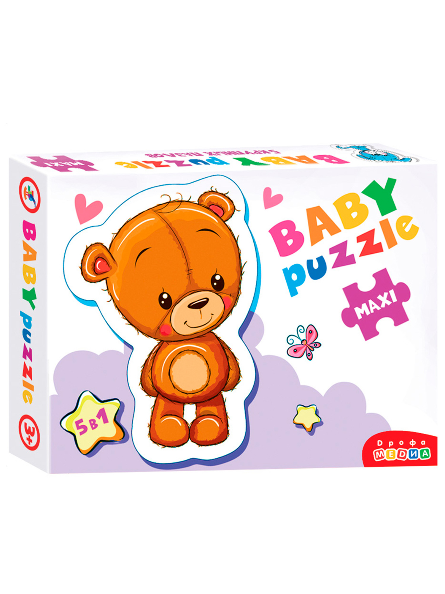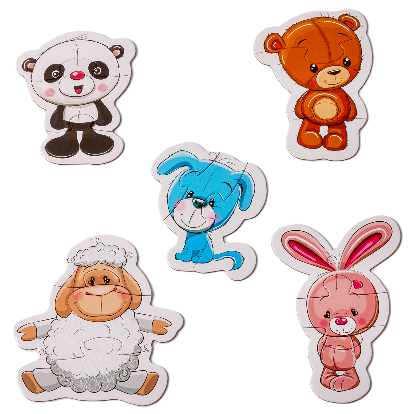 Крупные пазлы подходят для самых маленьких и помогут разнообразить занятия с ребёнком, сделать их интересными и полезными. В наборе 5 фигурок животных, разделённых на 2-3 элемента. Яркие узнаваемые картинки привлекут внимание малыша, а крупные детали из плотного картона помогут в развитии мелкой моторики.