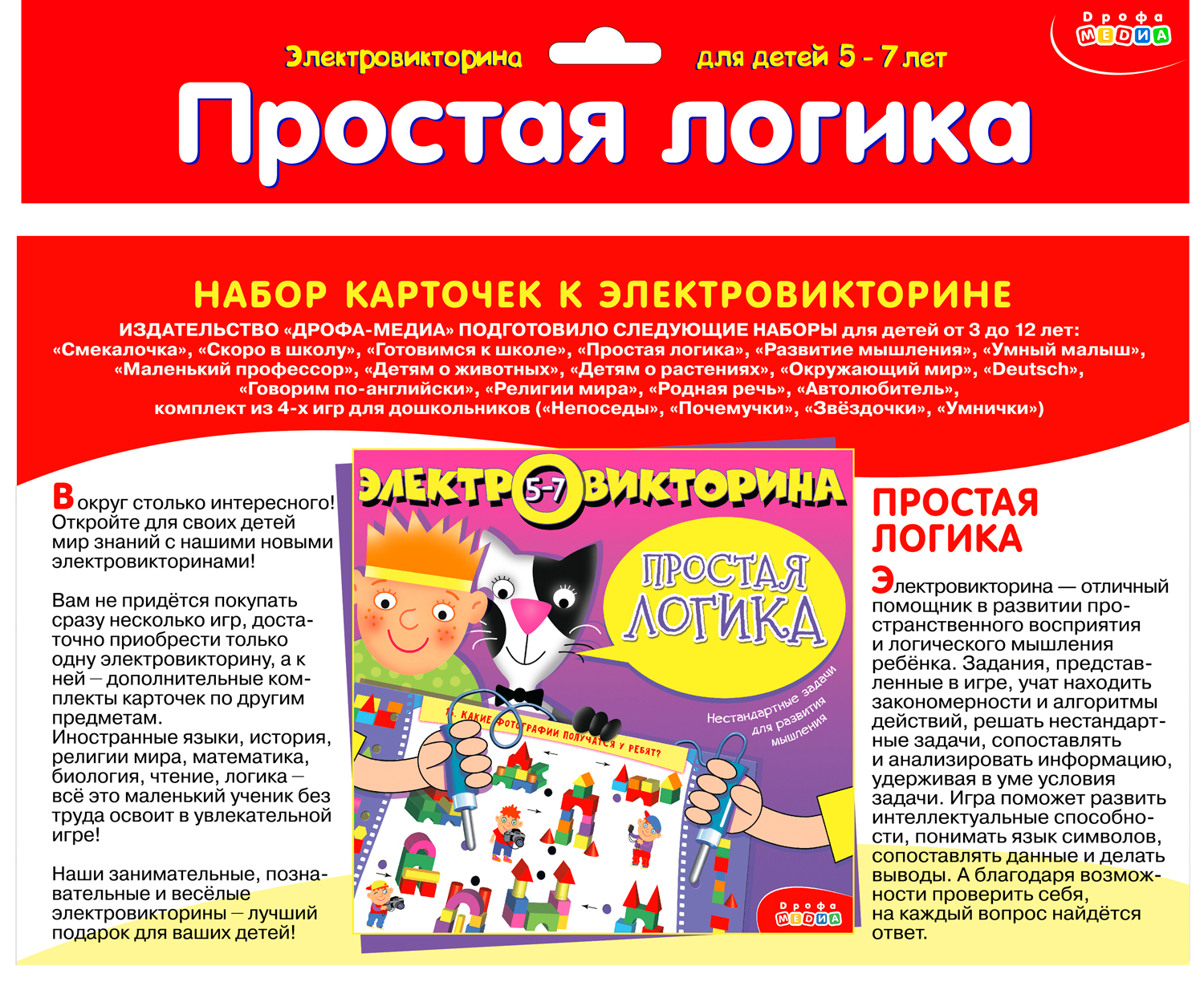 Внимание! Набор карточек не является самостоятельной игрой, а служит дополнением к электровикторине в коробке.