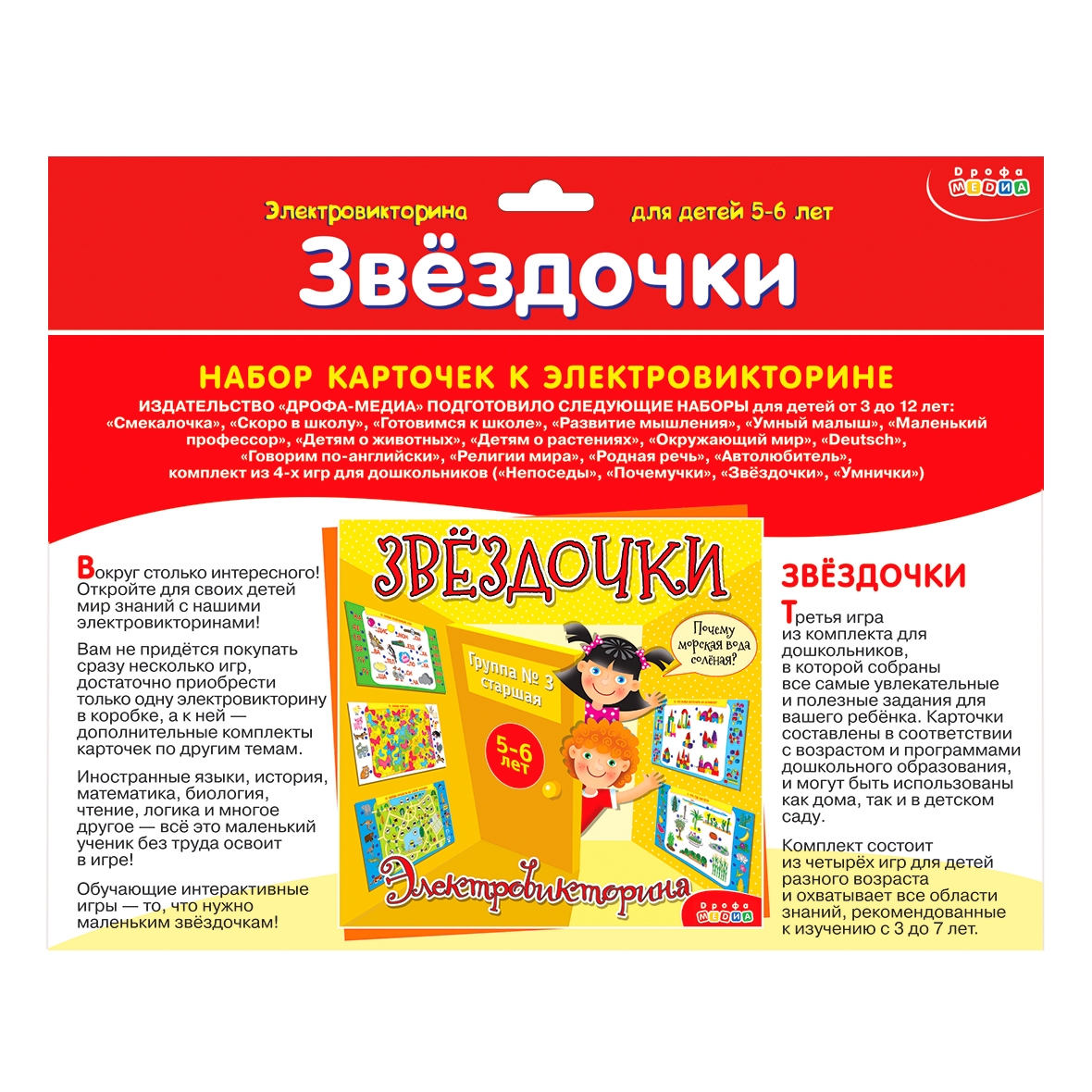 Дополнительный набор карточек к любой электровикторине в коробке. К любой нашей электровикторине подходят наборы карточек от других игр этой серии. Поэтому, если у вас уже есть одна электровикторина, то покупать другие игры этой серии в коробках не нужно, достаточно приобрести дополнительные наборы карточек к уже имеющейся игре.