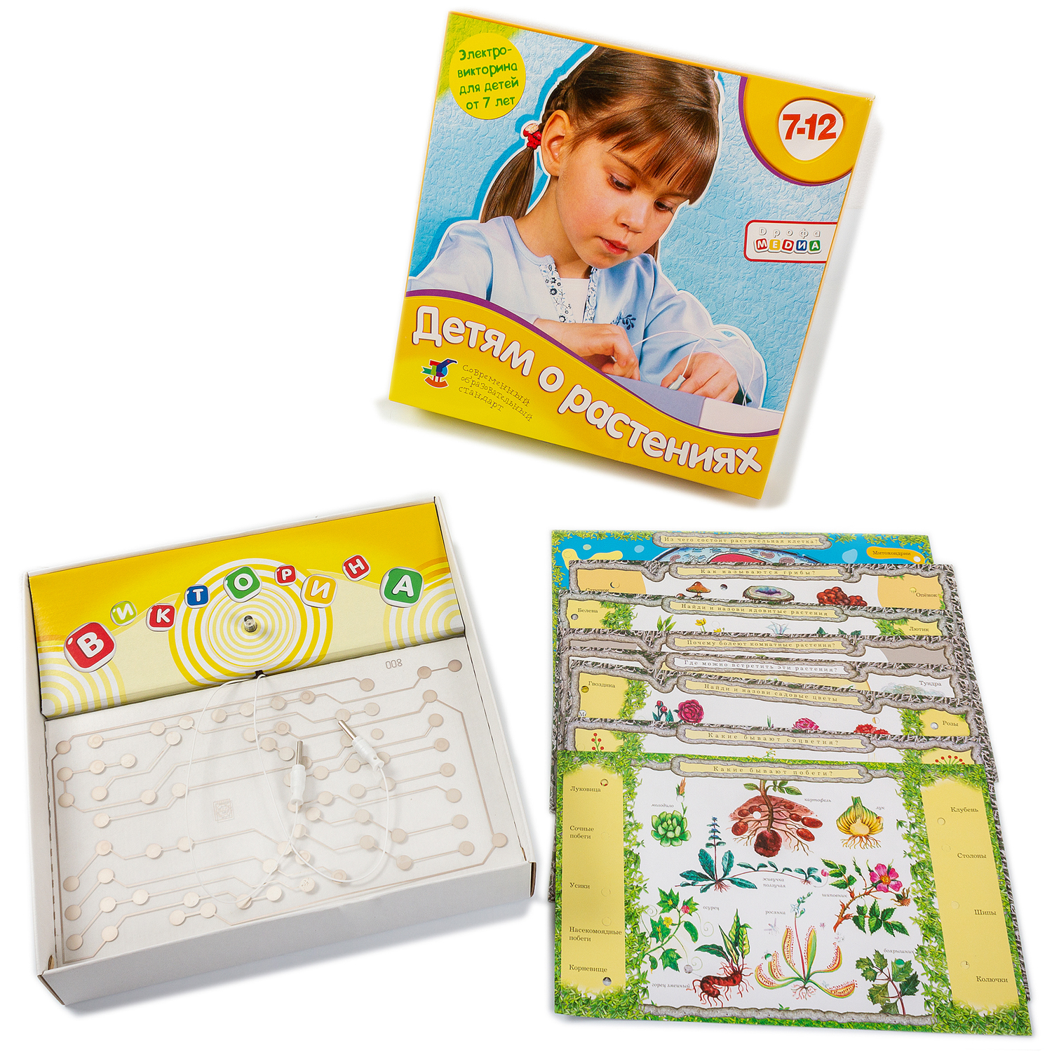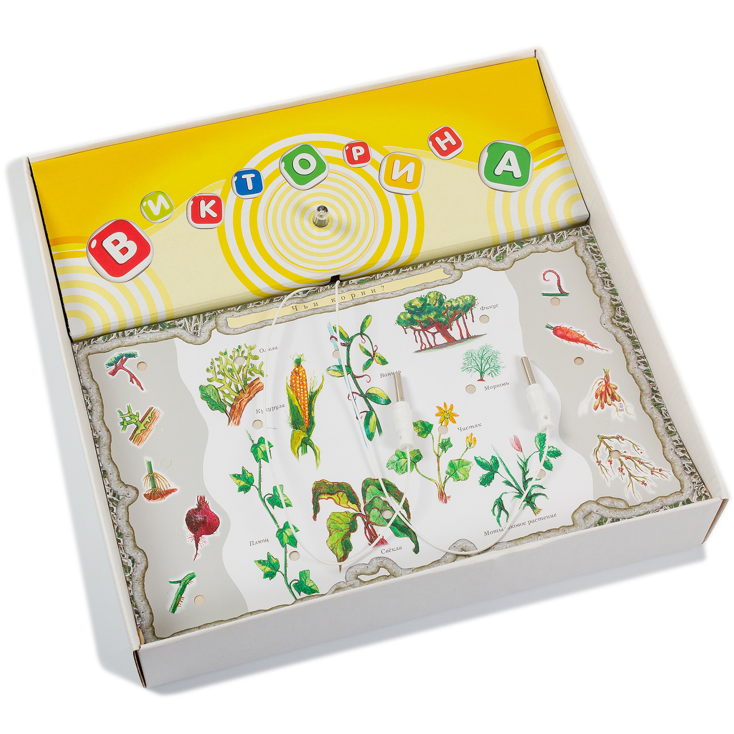 В комплекте: 10 двусторонних карточек, плата, светозвуковой модуль, батарейки, брошюра с ответами, правила.