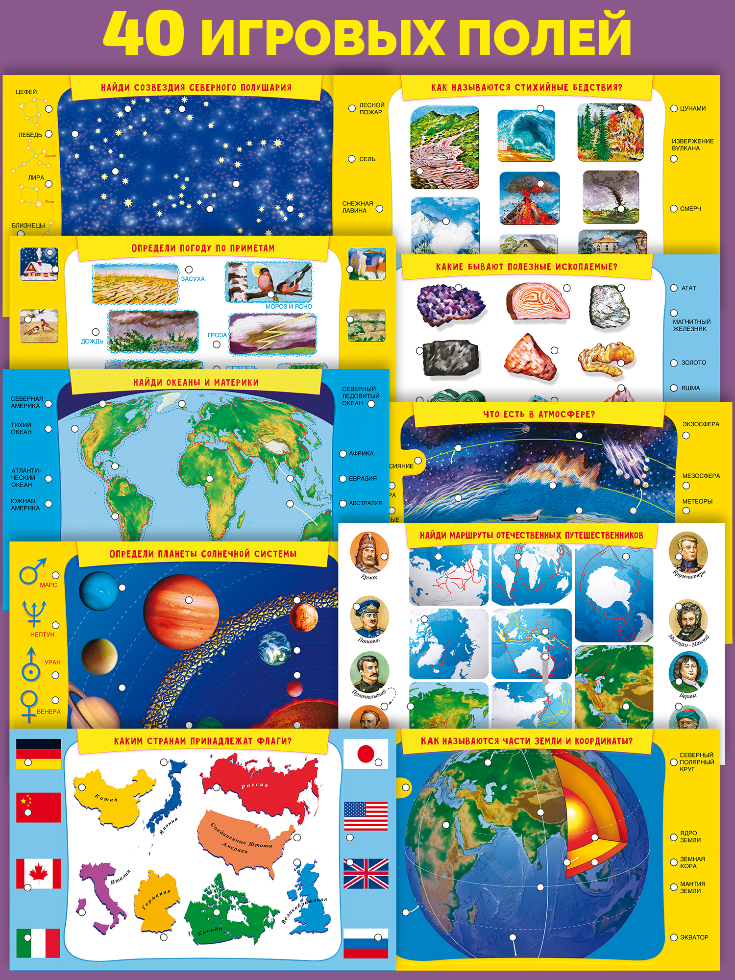 Игра познакомит с удивительными природными явлениями, происходящими на Земле и в космосе, поможет в освоении курсов природоведения и географии. Дети познакомятся с многообразием животного мира нашей планеты: наиболее интересными и удивительными существами, населяющими Землю, местами их обитания, образом жизни, способами добычи пищи и спасения от врагов, особенностями общения и поведения. Игру дополняет брошюра. Это — маленькая энциклопедия, в которой приведены интересные и познавательные сведения о нашей планете. С её помощью ребята не только найдут правильные ответы на задания викторины, но и узнают много нового и интересного.