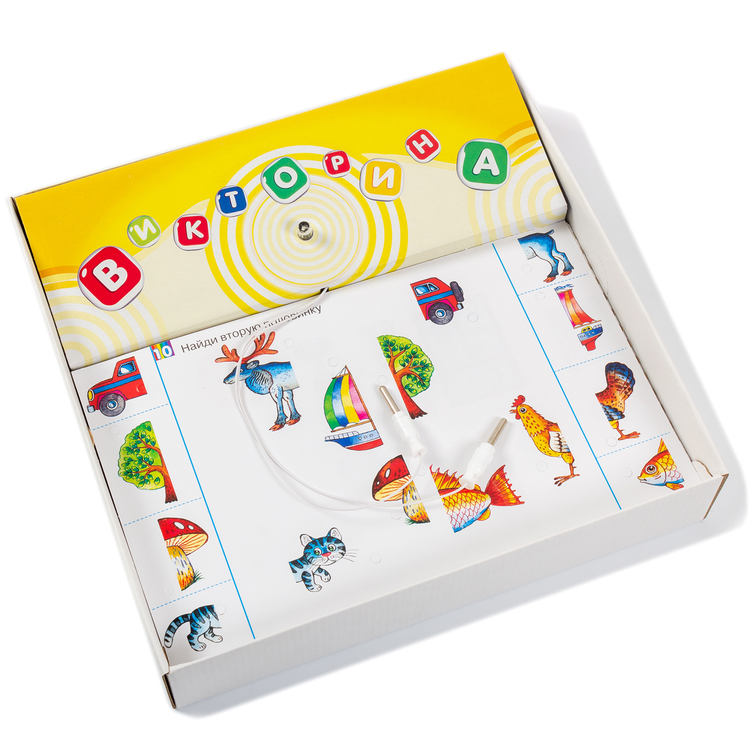 В комплекте: 10 двусторонних карточек, плата, светозвуковой модуль, батарейки, правила.