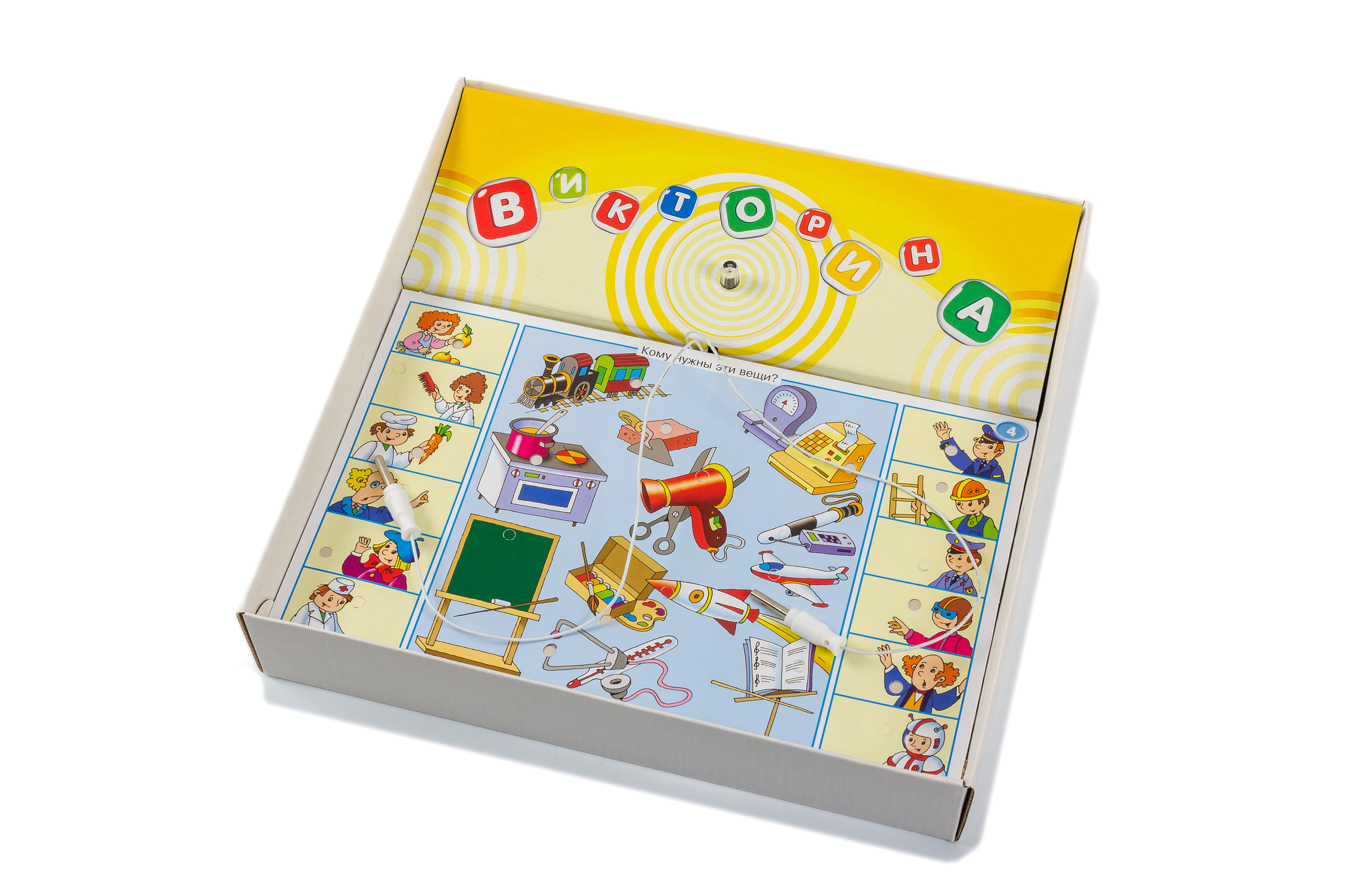 Электронная плата, используемая в наших играх, — универсальна. Поэтому, если у вас есть одна электровикторина, то вам не нужно покупать другие игры в коробках, а достаточно приобрести наборы карточек на другие темы.