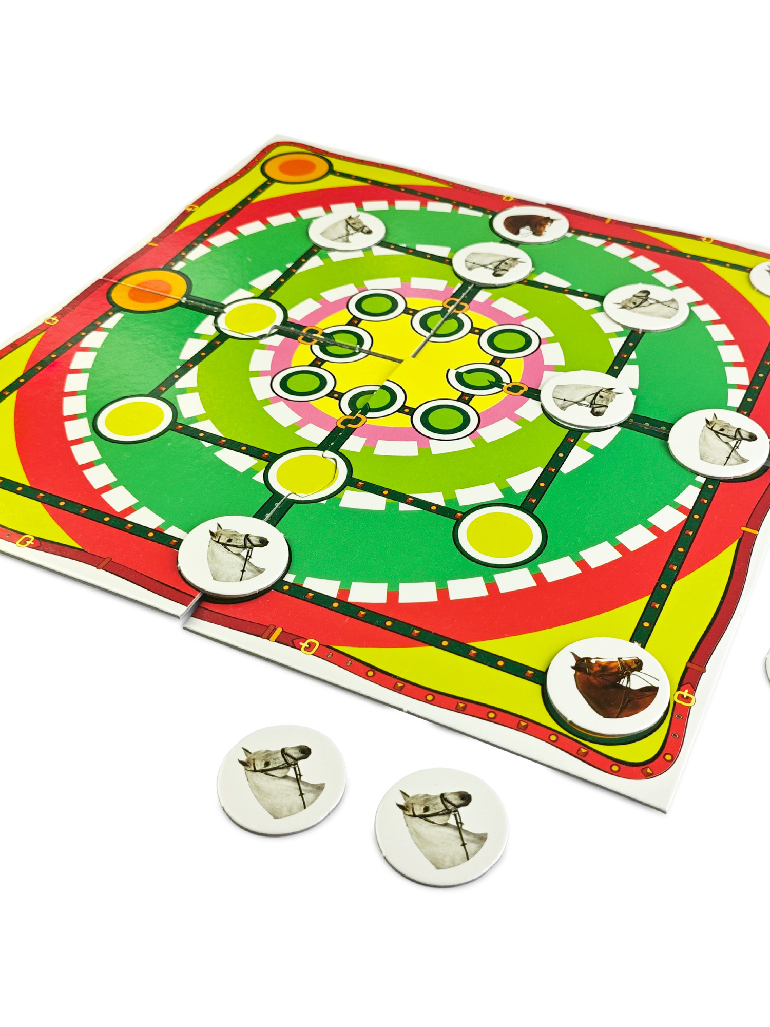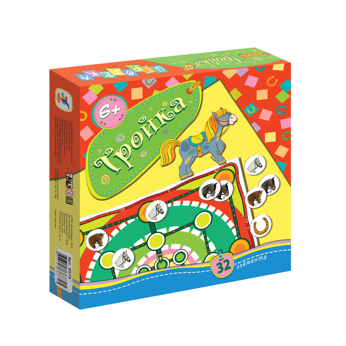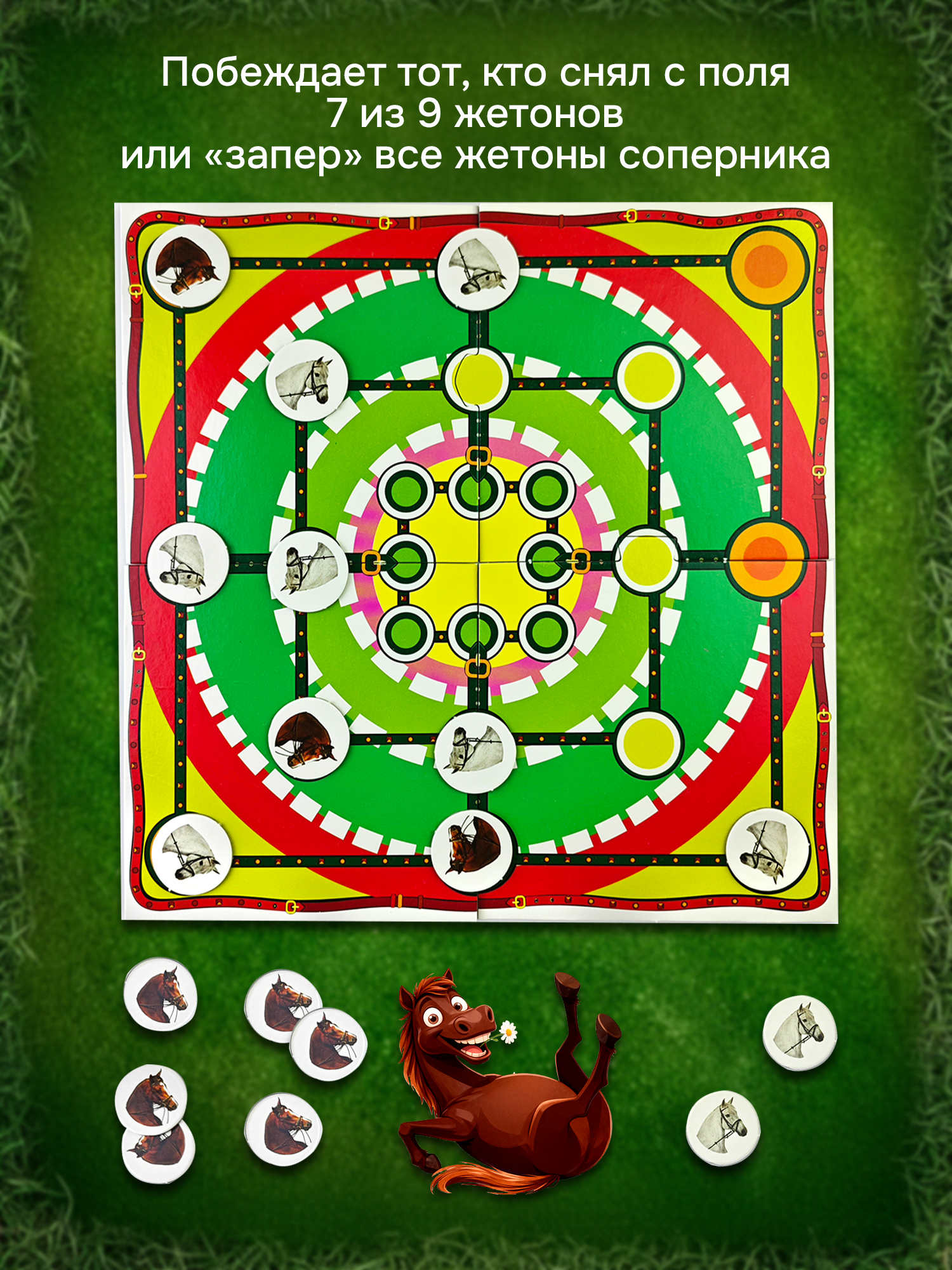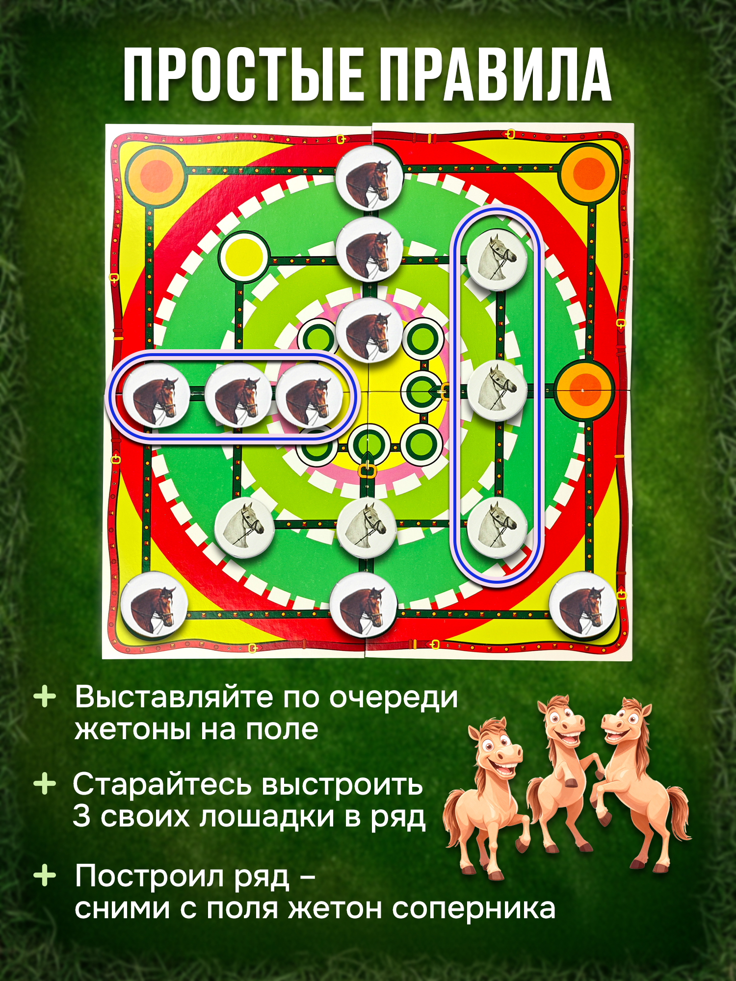 У меня ребенок очень любит эту игру, которая проходит у нас дома под названием "Про лошадок". В силу возраста, по правилам мы не играем, просто выставляем лошадок в линию; попадается "подкова" кричим "иго-го-го"))