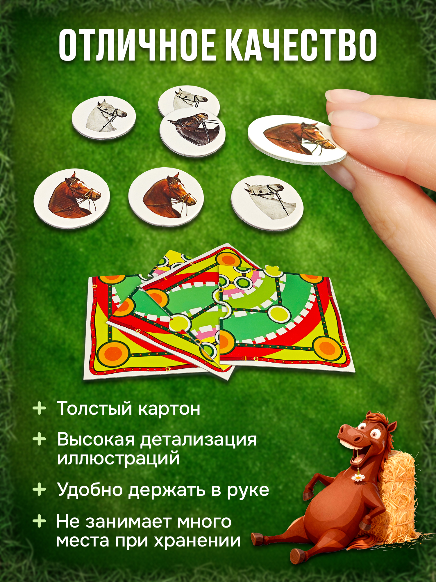 Сама игра сделана качественно, жетончики и игровое поле сделаны из плотного картона. |