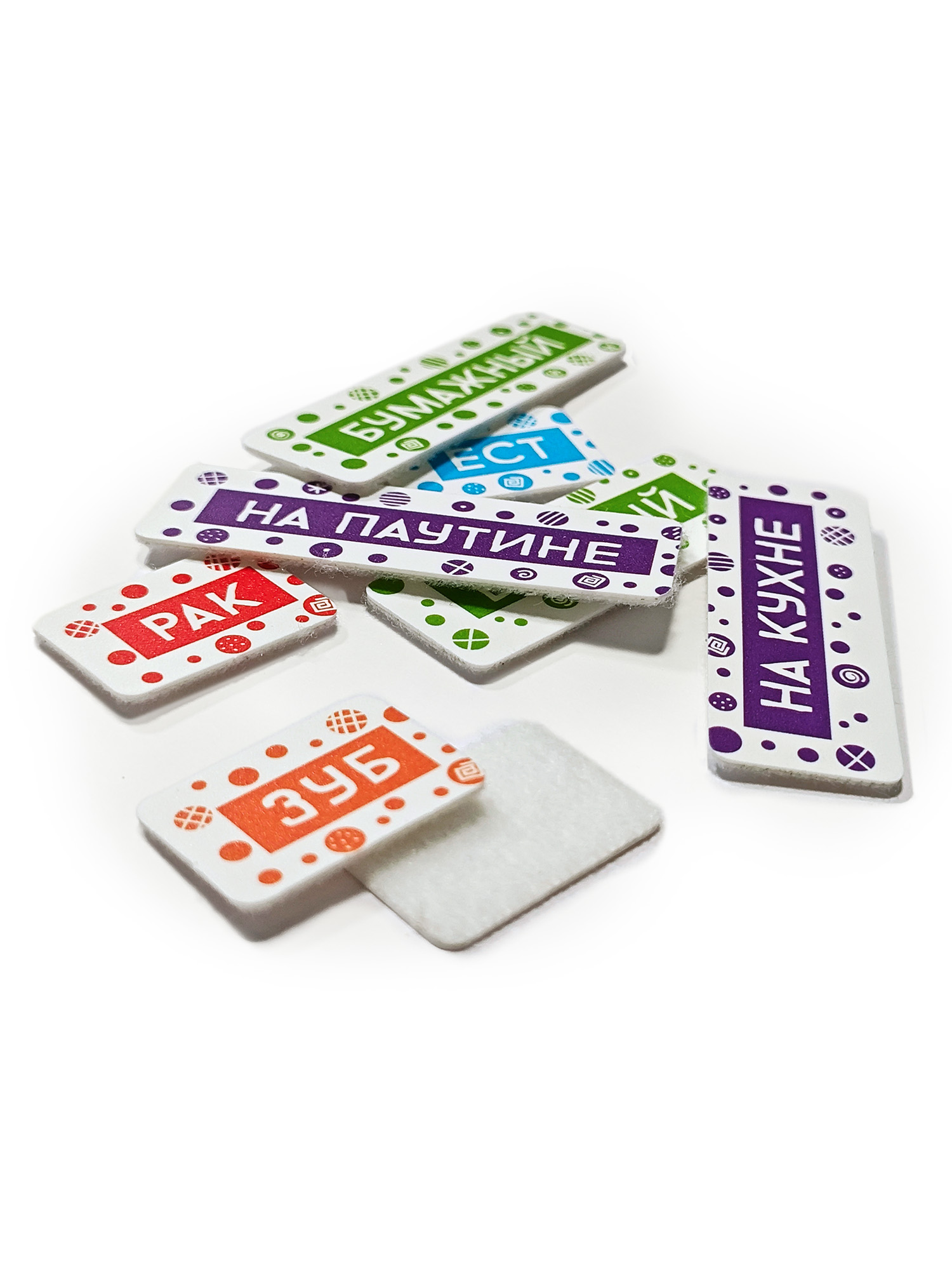 В комплекте: 3 игровых мини-поля с уже приклеенными липучками, 80 карточек со словами, правила. Поля и карточки из пластика — долговечные, не рвутся, не мнутся и не размокают.
