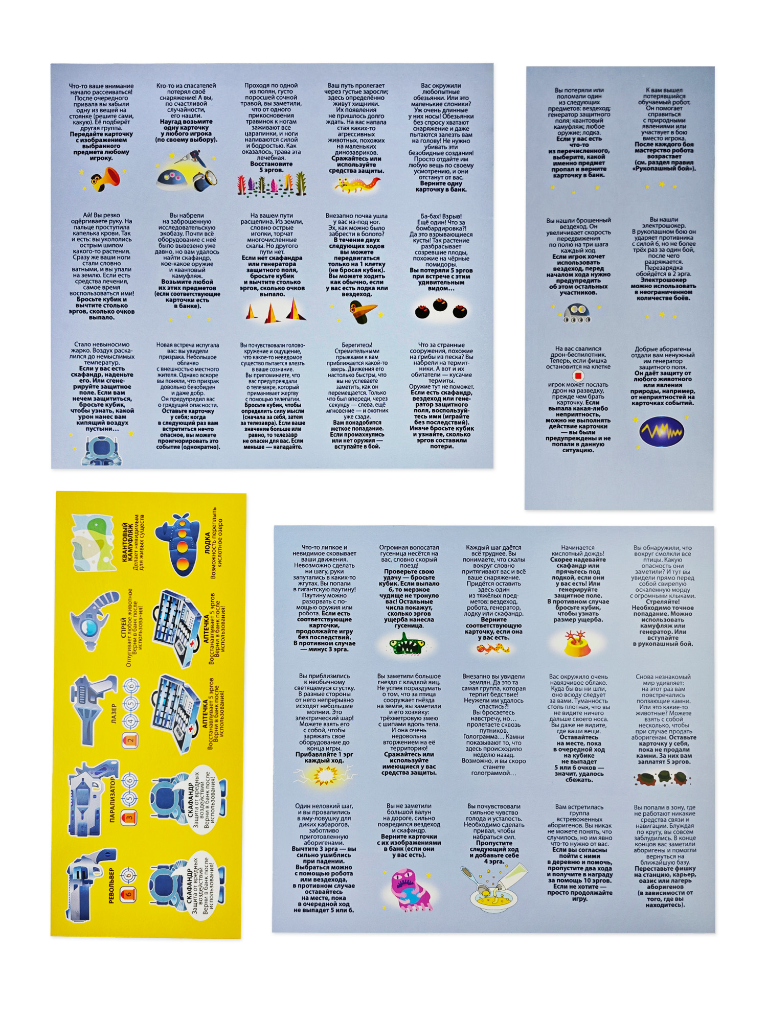 По пути игроков ждёт множество приключений: встречи с чудовищами, торговля с аборигенами, голограммы, ползающие камни, ловушки и удачные находки и много другого. А карточки событий сделают игру непредсказуемой и разнообразной.