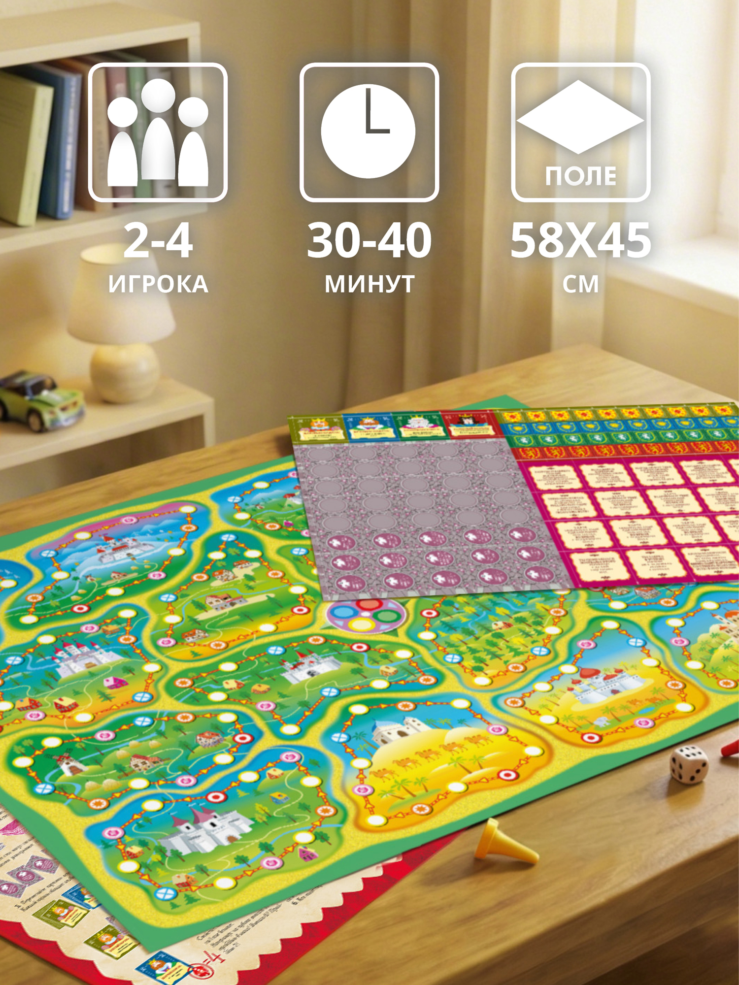 Настольная игра для детей «Короли и замки» – это увлекательная игра ходилка, во время которой игрокам нужно построить королевский замок быстрее, чем соперники. Для этого нужно будет присоединять к своему королевству разные регионы, искать ресурсы и выполнять указания озорных привидений. Привидения могут помочь, а могут и навредить, недаром они озорные. Кроме того, каждый король обладает своим особым свойством, которое здорово повышает шансы на выигрыш. А ещё, можно атаковать и разрушать замки соперников!
