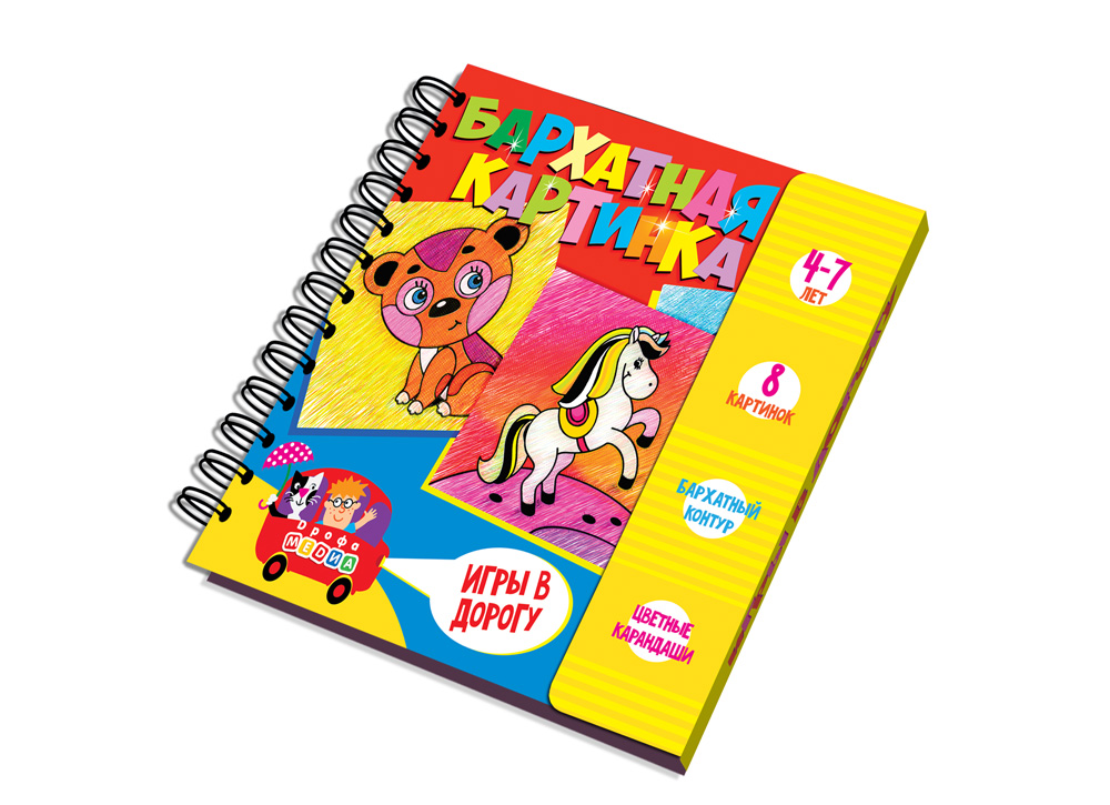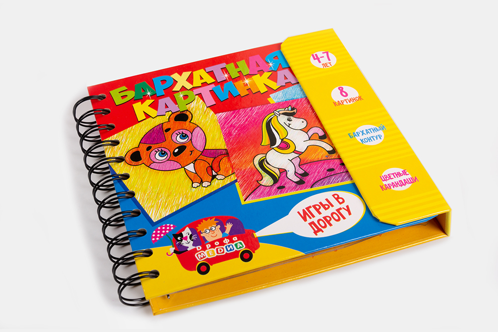 Так полюбившиеся малышам раскраски с бархатным контуром теперь в удобном исполнении как раз для дальней дороги. В наборе 8 картинок с объёмными контурами, которые позволяют раскрасить картинки, не выходя за пределы изображения, поэтому они получатся аккуратными и красивыми. Для раскрашивания можно использовать не только карандаши из комплекта набора, но и всё, что есть под рукой — ручки, фломастеры или краски. Несомненное достоинство набора – картинки не потеряются, потому что все скреплены надежной пружинкой.
