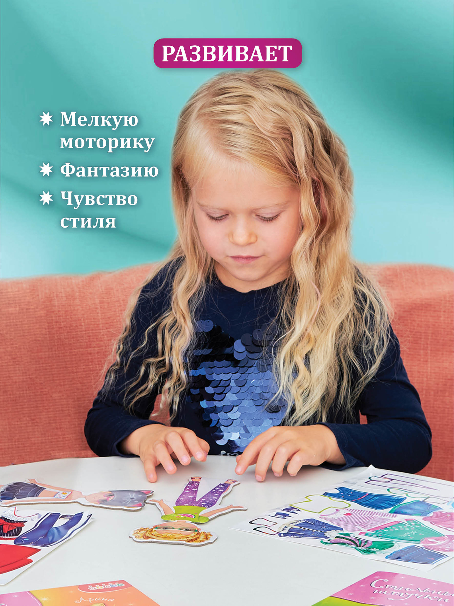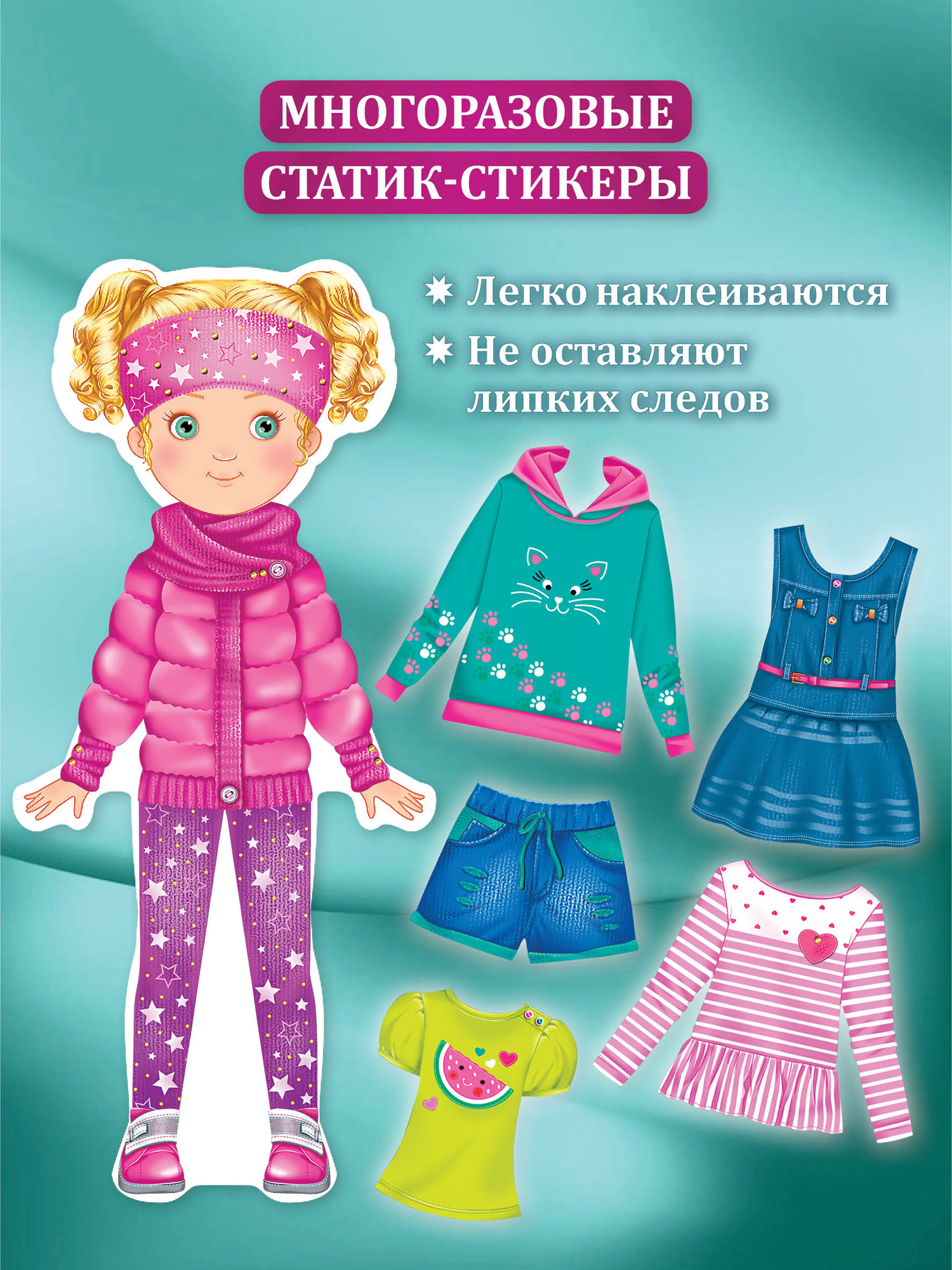 Статик-стикеры многоразовые. Девочка может менять кукле наряды много раз, на качество приклеивания стикеров это не повлияет.