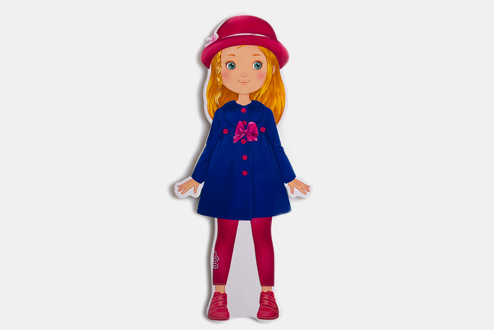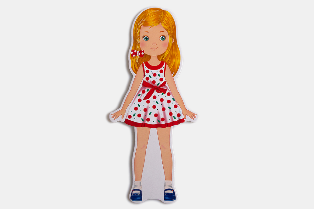 Сама кукла выполнена из плотного картона, её не так просто порвать или помять. Размеры куклы 10х21,5 см.