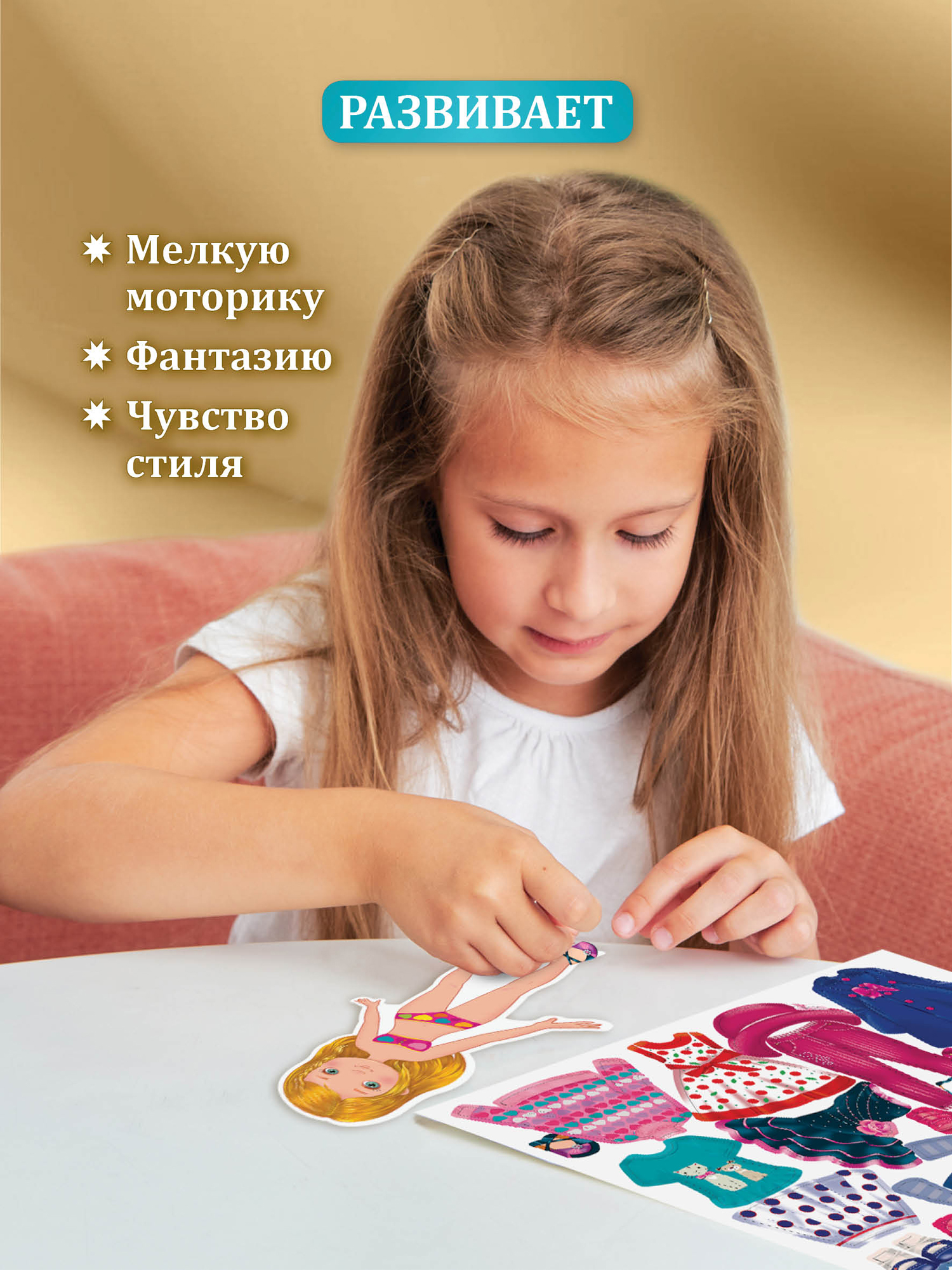 Статик-стикеры многоразовые. Девочка может менять кукле наряды много раз, на качество приклеивания стикеров это не повлияет.