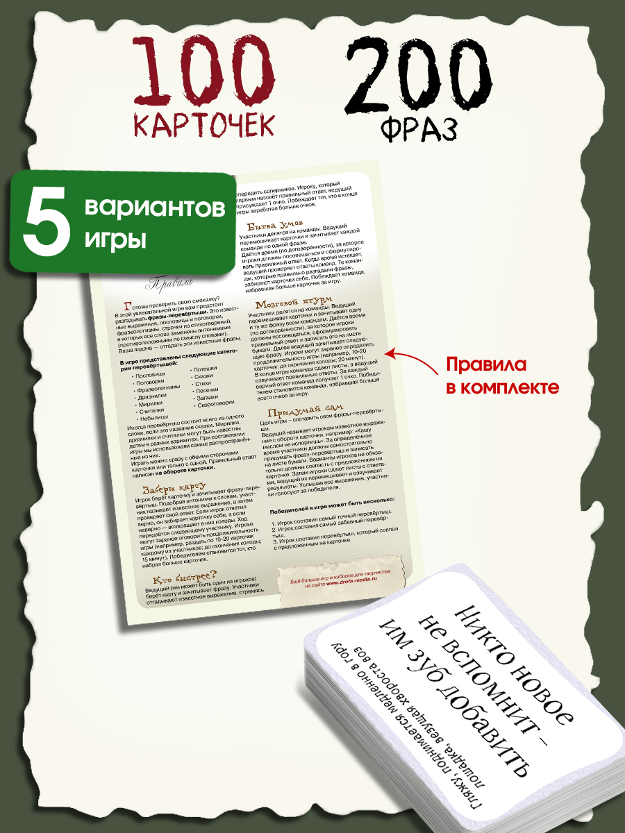 В комплекте: 100 карточек, правила.