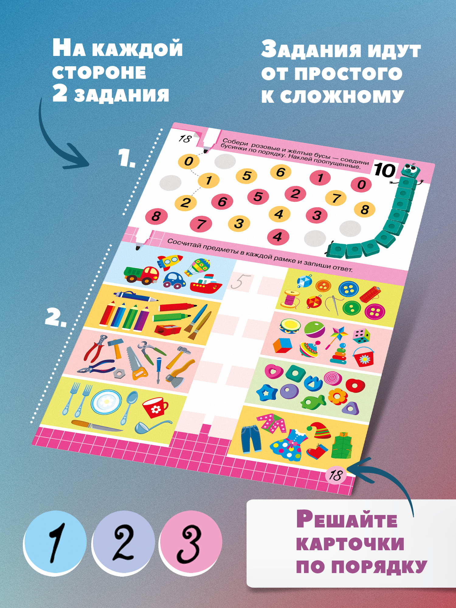 Занимательные карточки-тренажеры заинтересуют ребенка математикой и научат получать удовольствие от решения примеров. Задания выстроены от простого к сложному и подходят как дошкольникам, не знакомым с цифрами, так и школьникам 1-2 классов для отработки навыков счета.