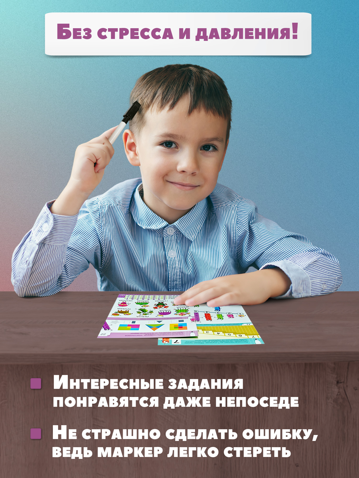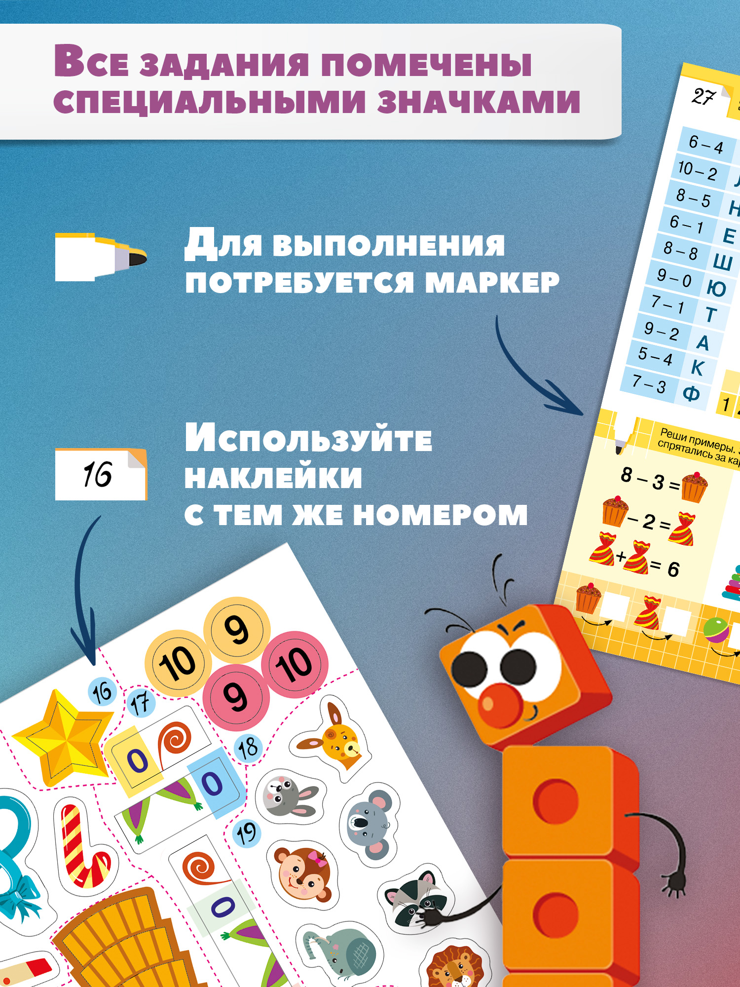 Для записей используется стирающийся маркер. На каждой странице есть задание с наклейками, которые так нравятся детям.