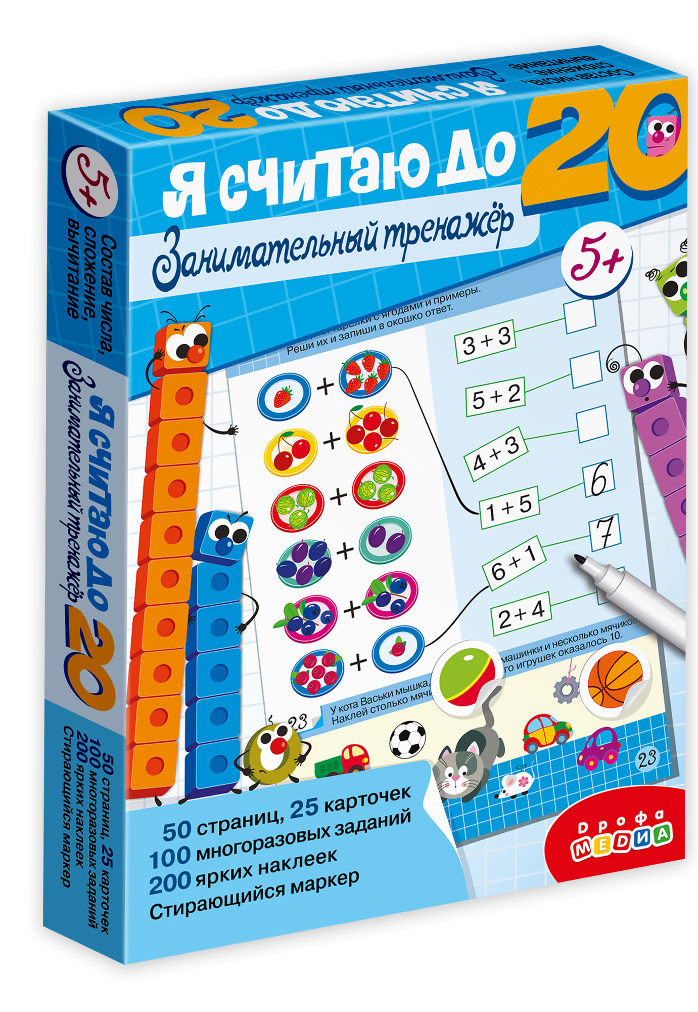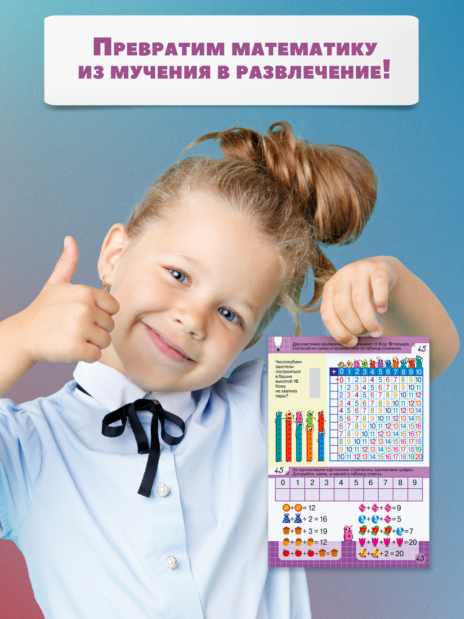 В игровой форме ребенок познакомится с цифрами и числами, научится складывать и вычитать в пределах 20, а математика из мучения превратится в развлечение.