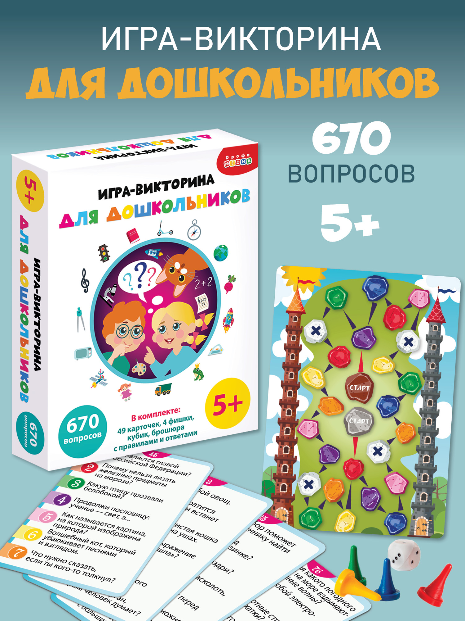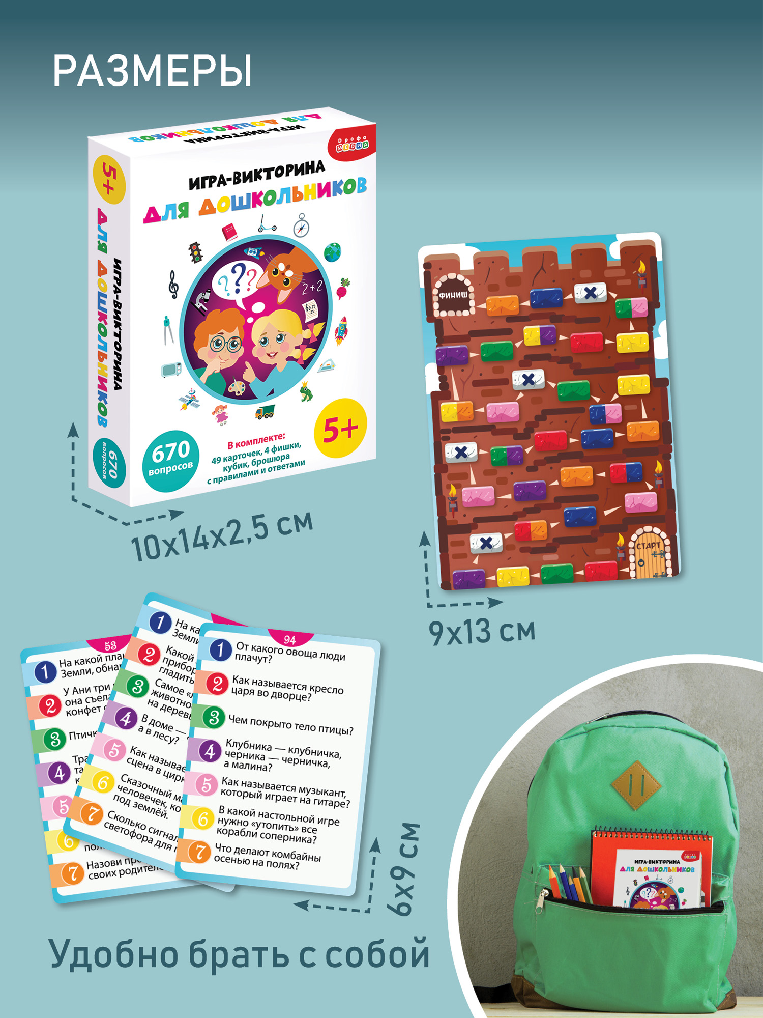 Благодаря компактному размеру коробки, викторину удобно хранить и легко можно взять с собой в дорогу.