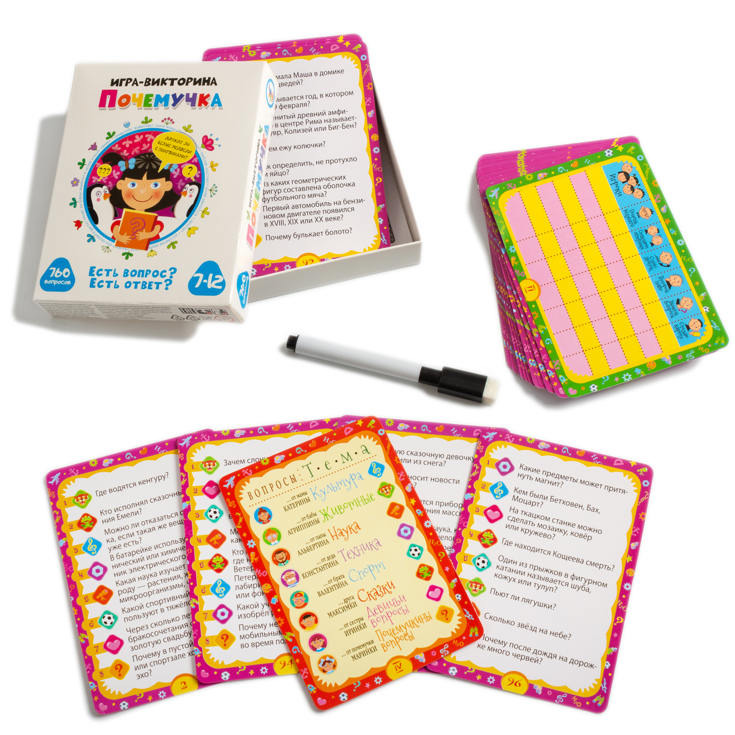 Занимательная игра-викторина поможет проверить знания в разных областях: спорт, техника, культура, наука, животные, сказки, «девичьи» вопросы, ну и конечно, «почемучкины» вопросы для самых любознательных! Всего более 700 вопросов. В комплекте — мини игровые поля и маркер для записи очков и использованных подсказок.
