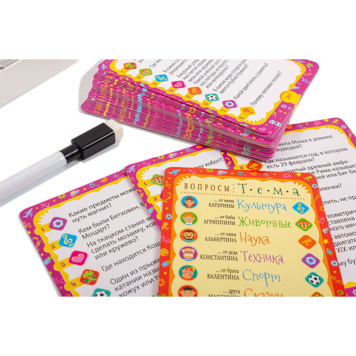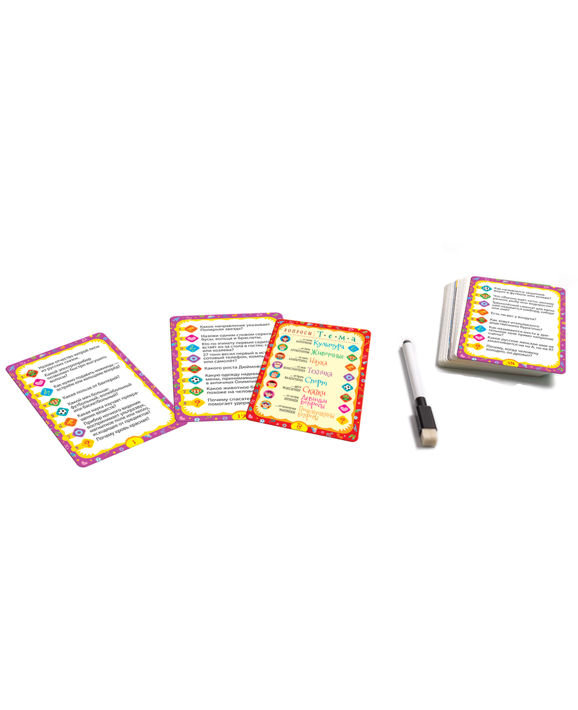 В комплекте: 50 карточек, маркер, брошюра с правилами и ответами на вопросы.