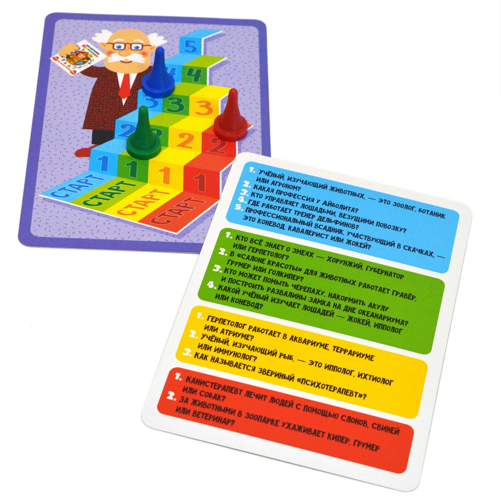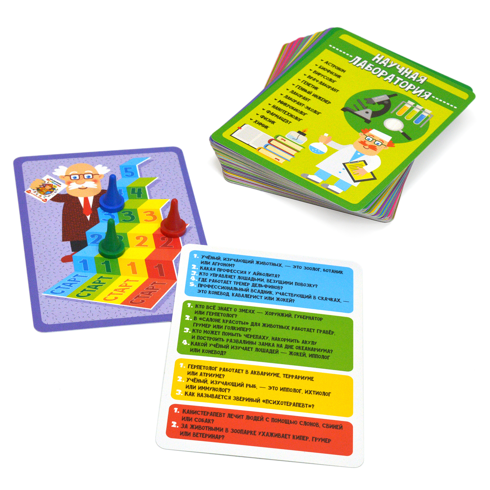 В комплекте: 50 карточек, 4 фишки, правила.
