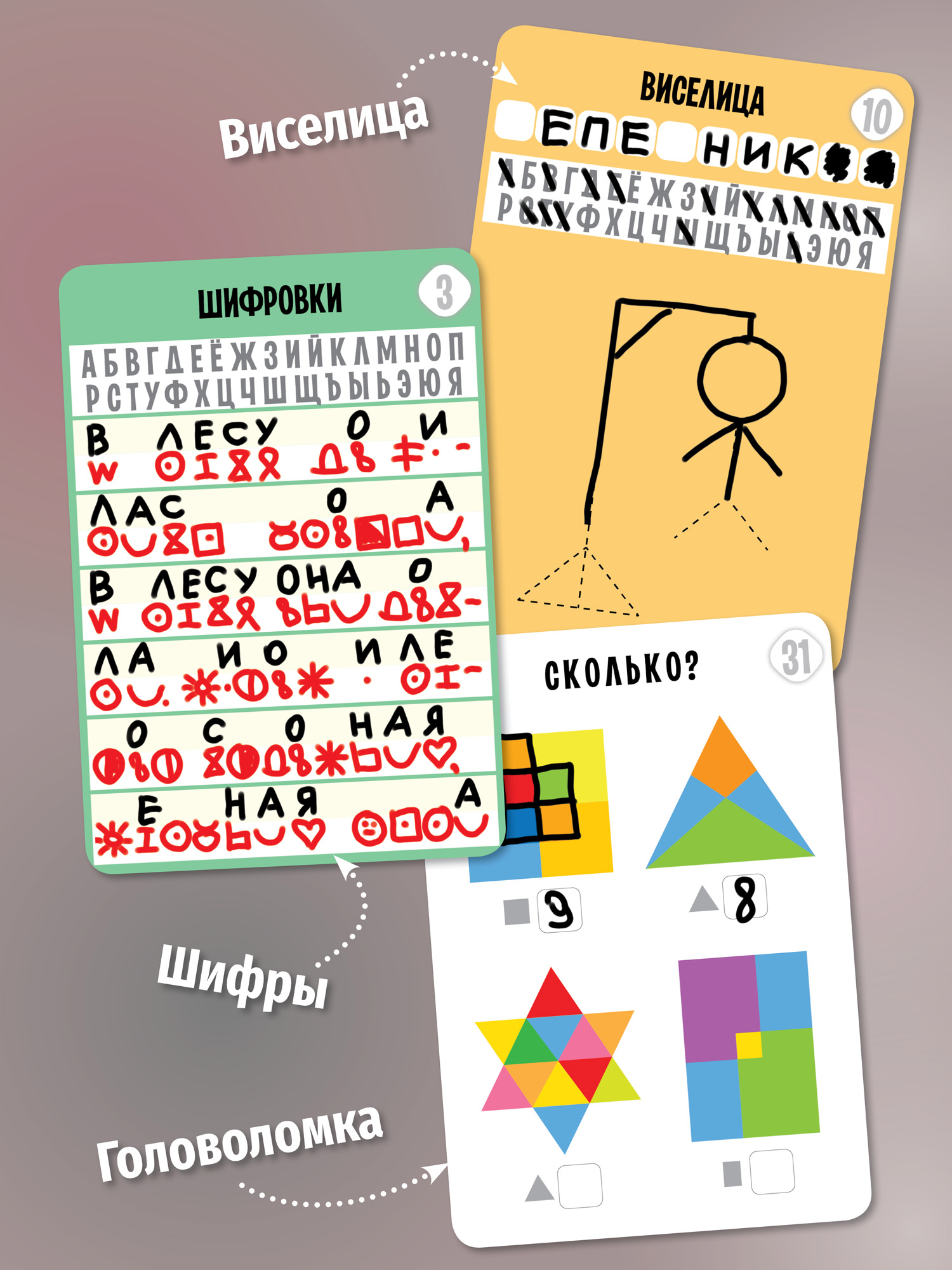 Настольные игры в сборнике направлены на развитие логического и аналитического мышления, внимая, смекалки, усидчивости, умения мыслить тактически, развития речи, пополнения словарного запаса.