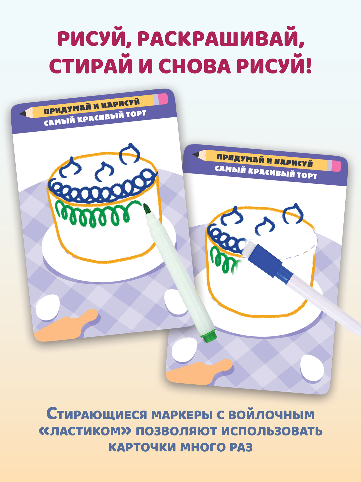 Благодаря многоразовым карточкам и маркерам на водной основе можно выполнять задания снова и снова.