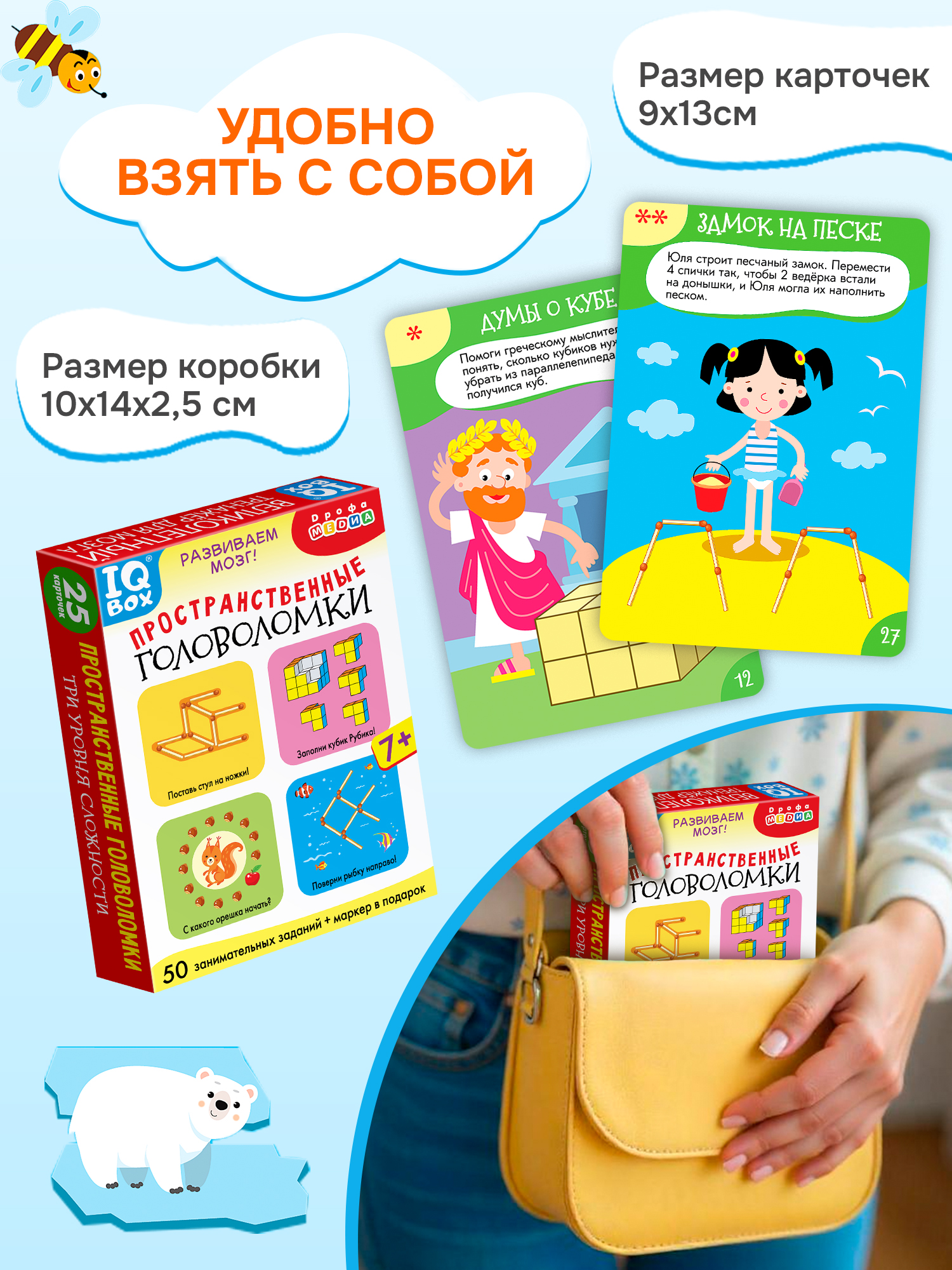 Перед вами набор из 25 развивающих карточек с пространственными головоломками для обучения и развлечения.