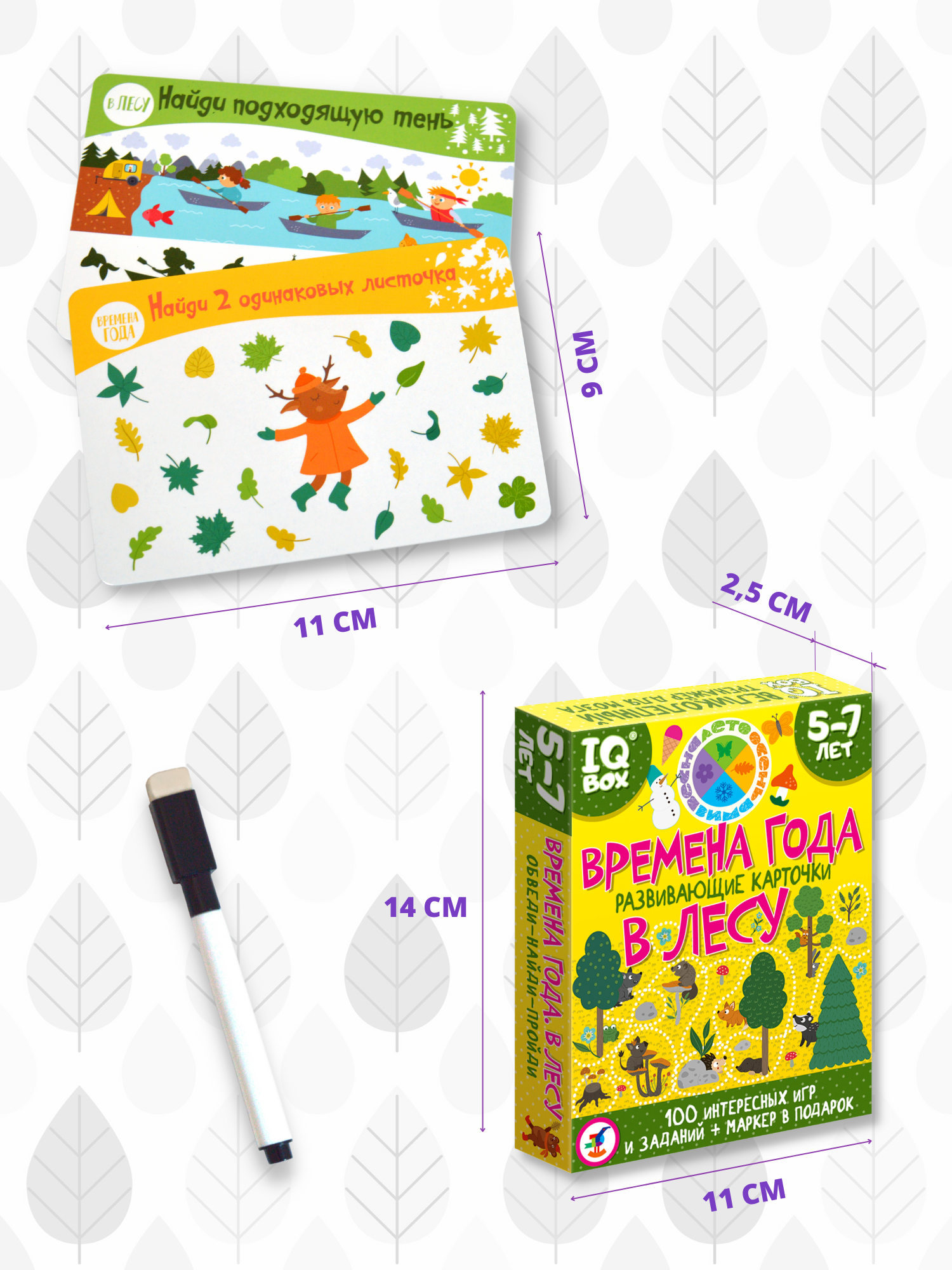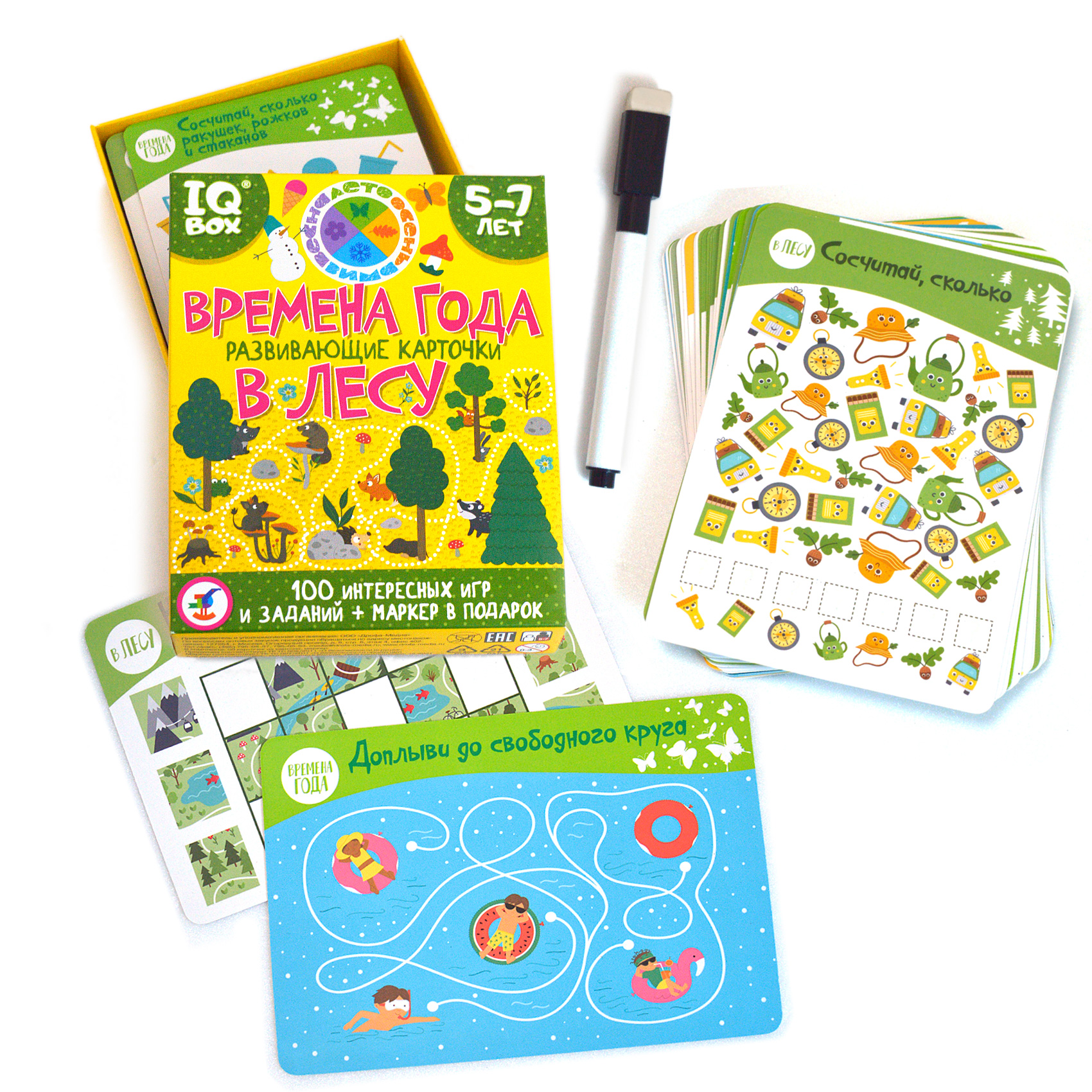 В комплекте: 50 двухсторонних карточек, маркер на водной основе